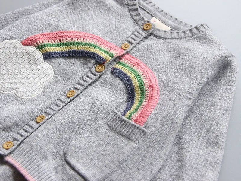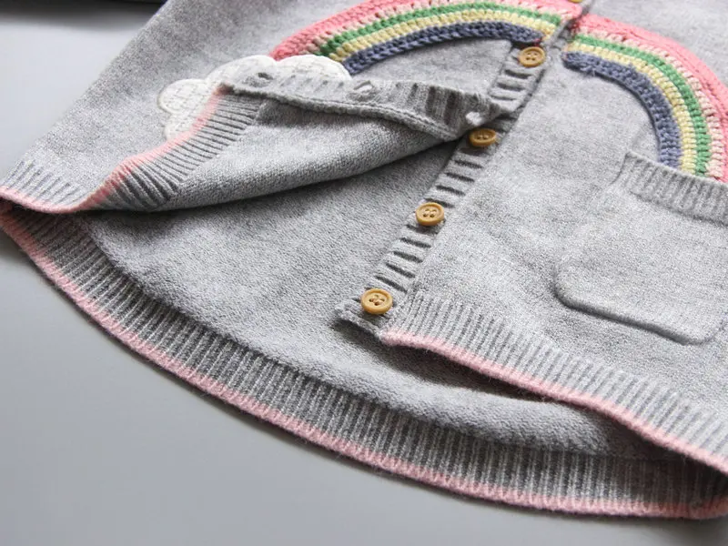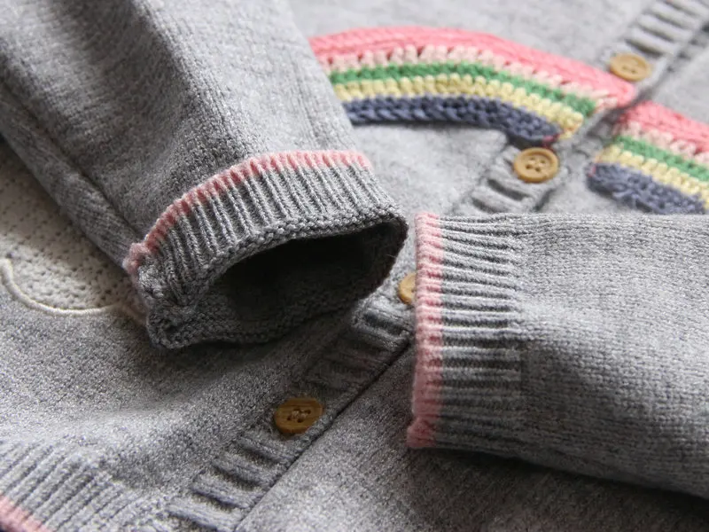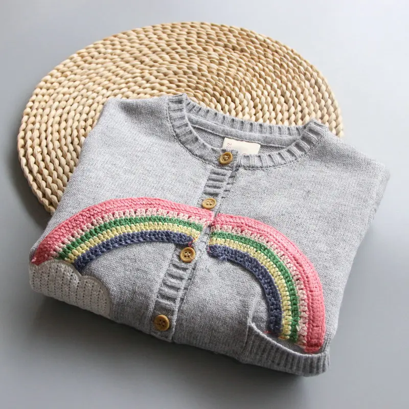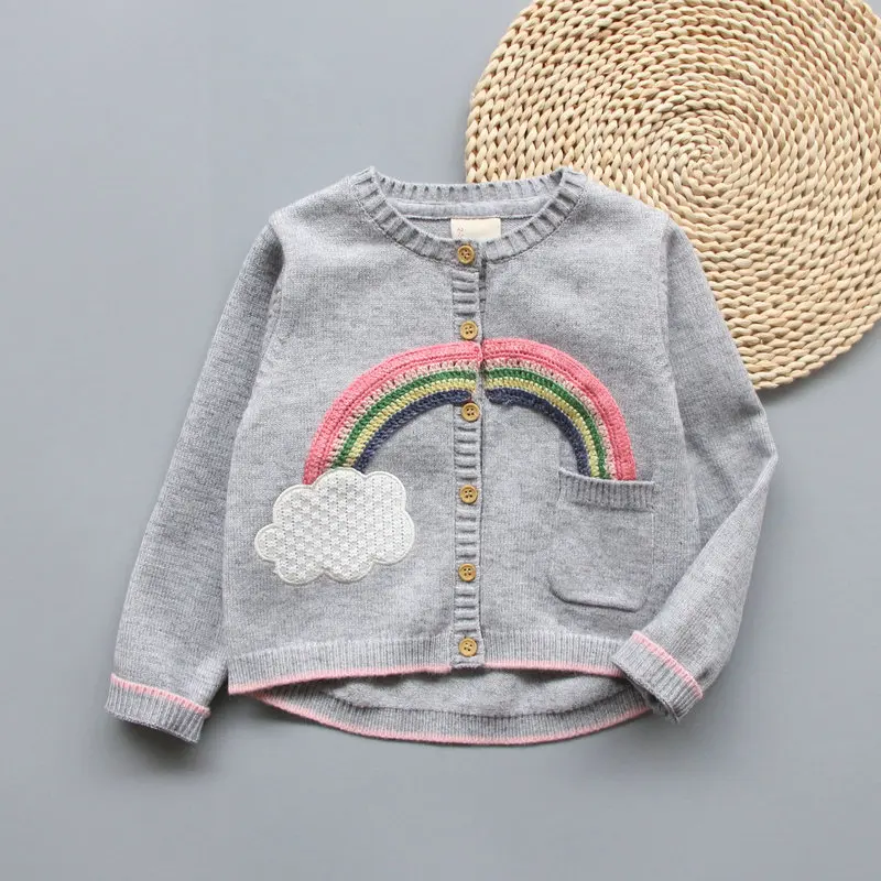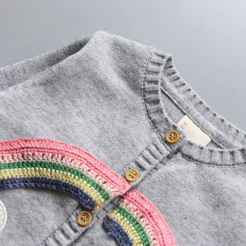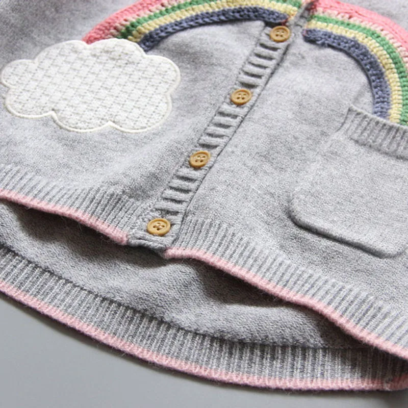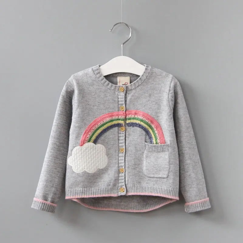 VORO BEVE 2017 New Spring Autumn Sweet Long Sleeve Girls Sweaters Coat rainbow Girl Cardigan Kids clothing