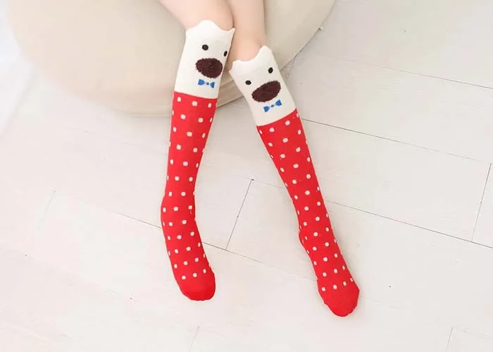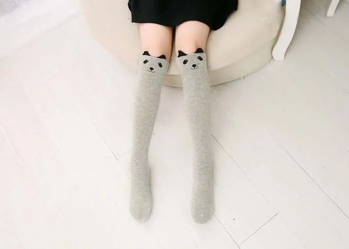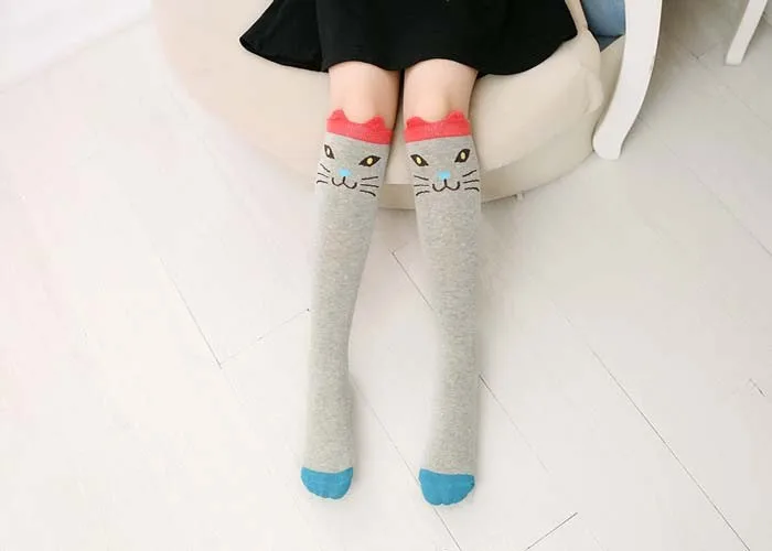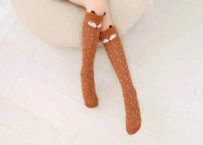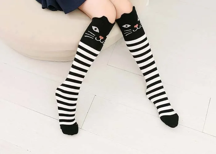 Kids Long Socks Knee High Girls Boot Sock Leg Warmer Cute Cat/fox Black baby Cotton Sock for school girls
