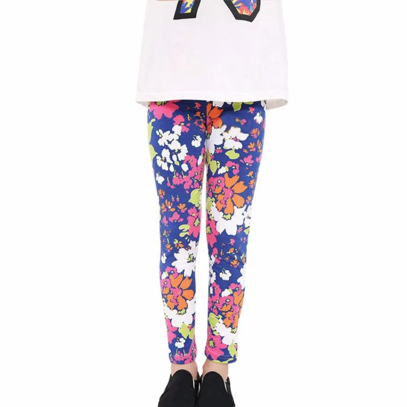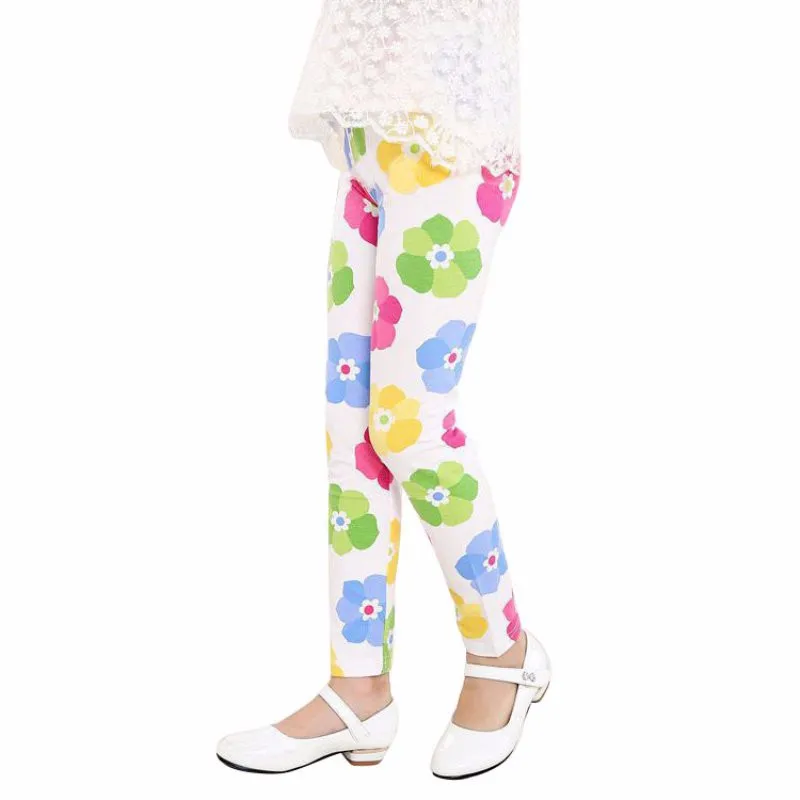 New Spring Summer Girls Leggings Casual Fashion Vintage Flower Kids Legging Elastic Waist Children’s Girl’s Pants 8-14 Year