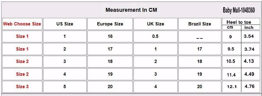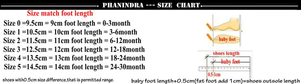 Note(1): Our bellow size is the best CORRECT SIZE.please match your baby feet to the INCH or CM,then choose the size !