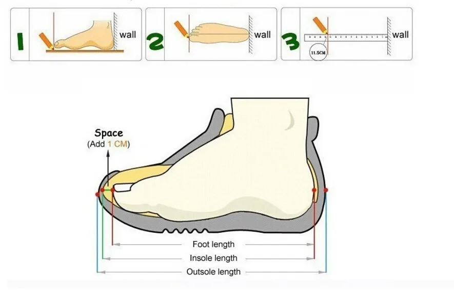 1:Before you buy it pls carefully choose the size you want,there is a deviation of 1-3cm as the reason of laying relax. 2:Pls measure your baby feet before you buy the shoes.pls add 1-1.5cm more than the feet. Please leave a message remark your color, size and quantity, if you don’t remark, we will random shipment