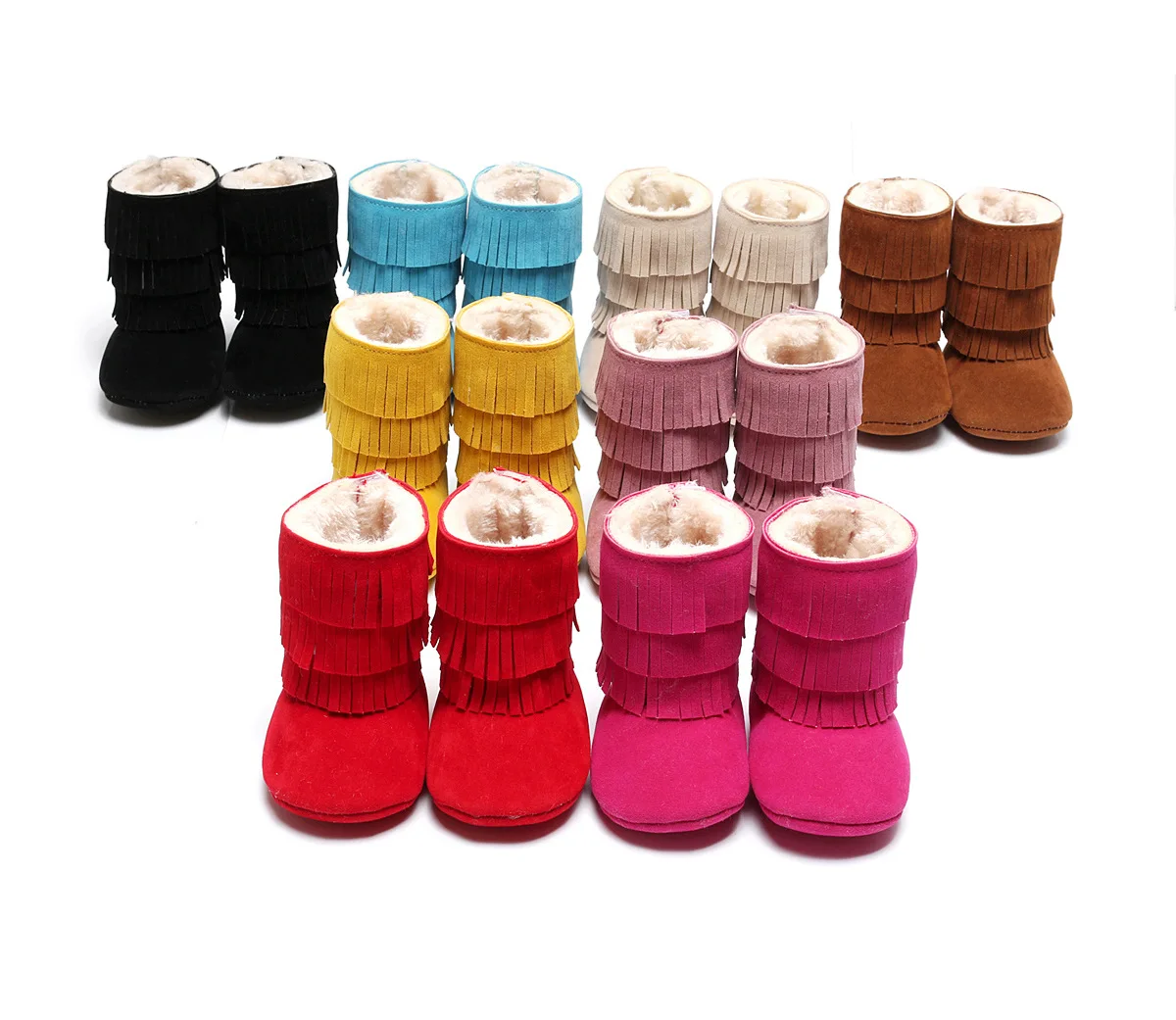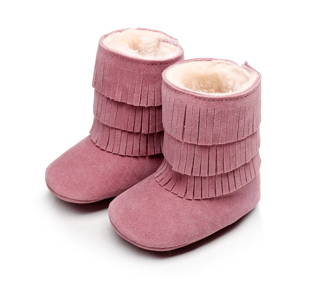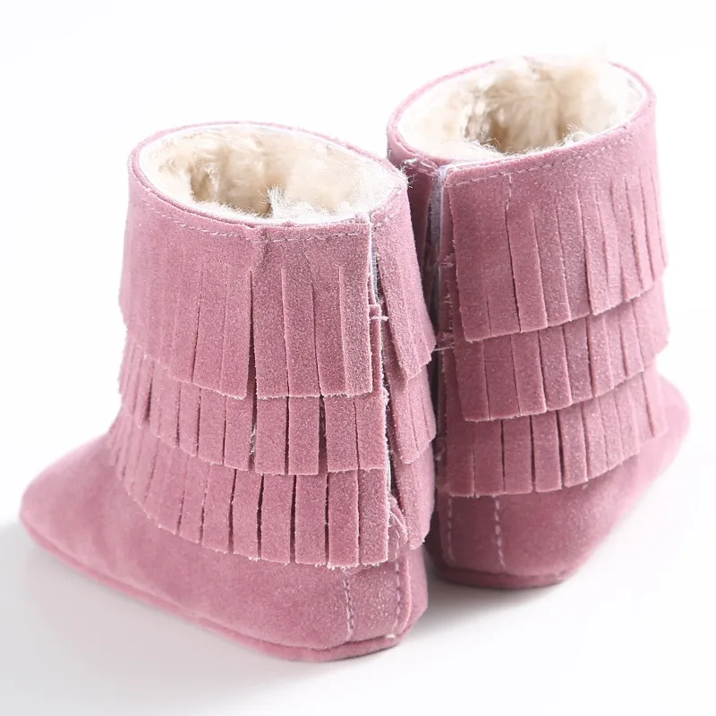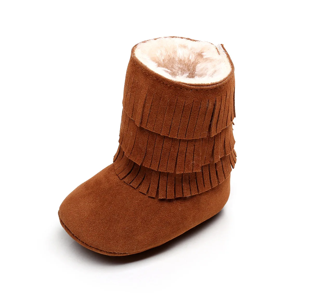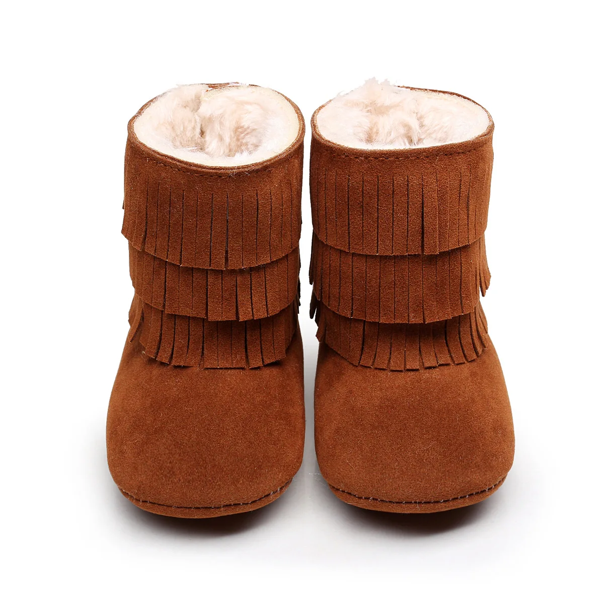 2017 Winter Latest Fashion 3 Layer Tassel Moccasins Latest Pu Suede Leather Baby Shoes Fleece Winter Boots