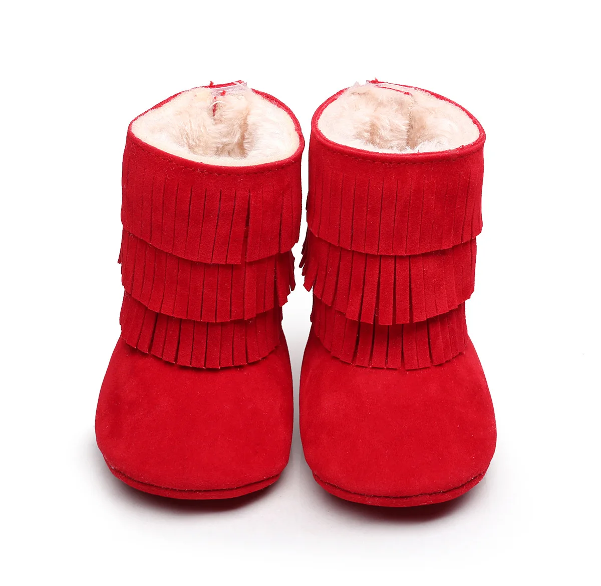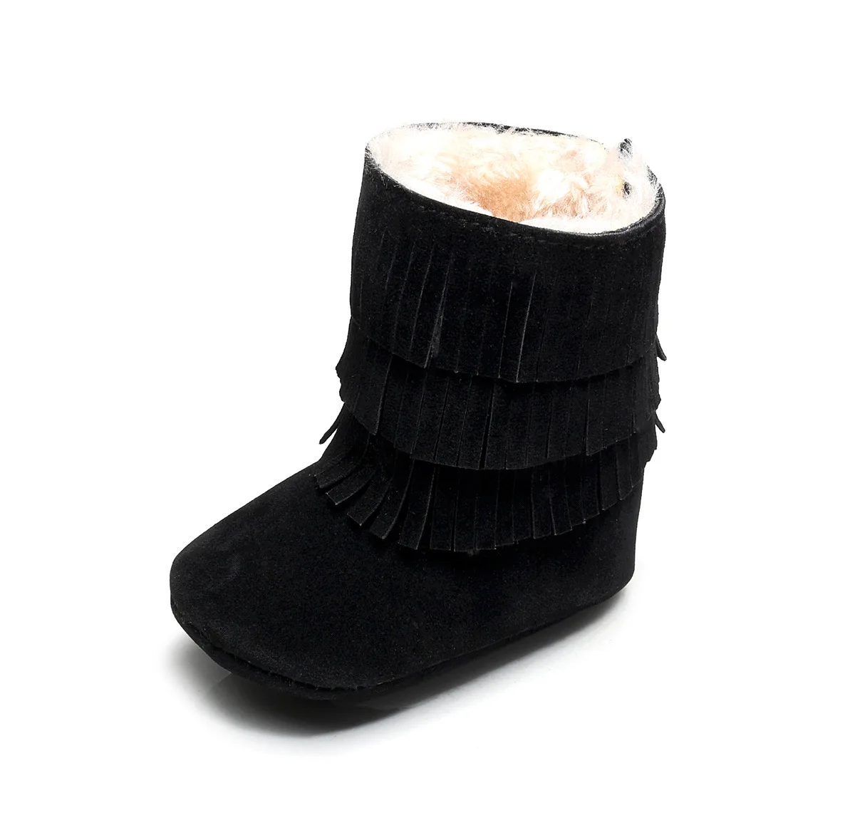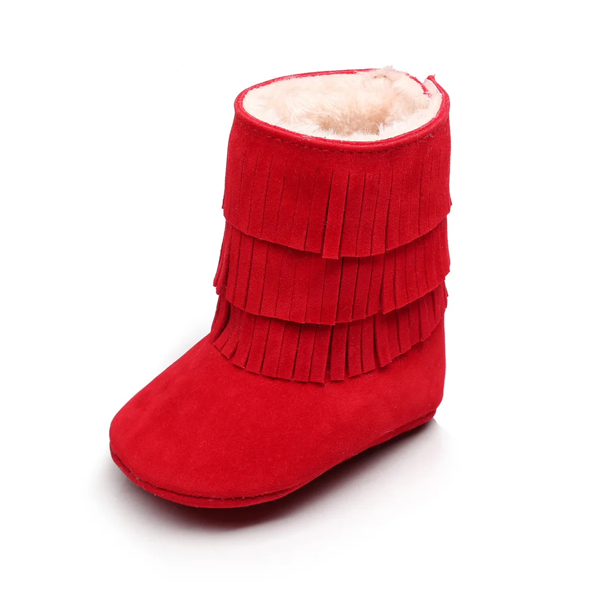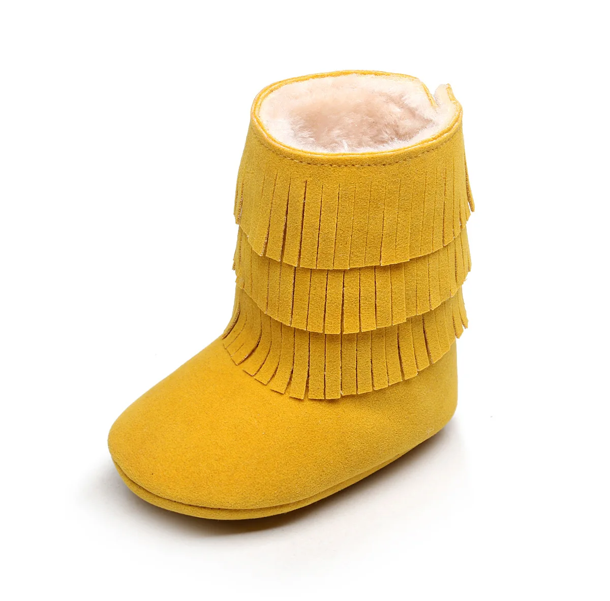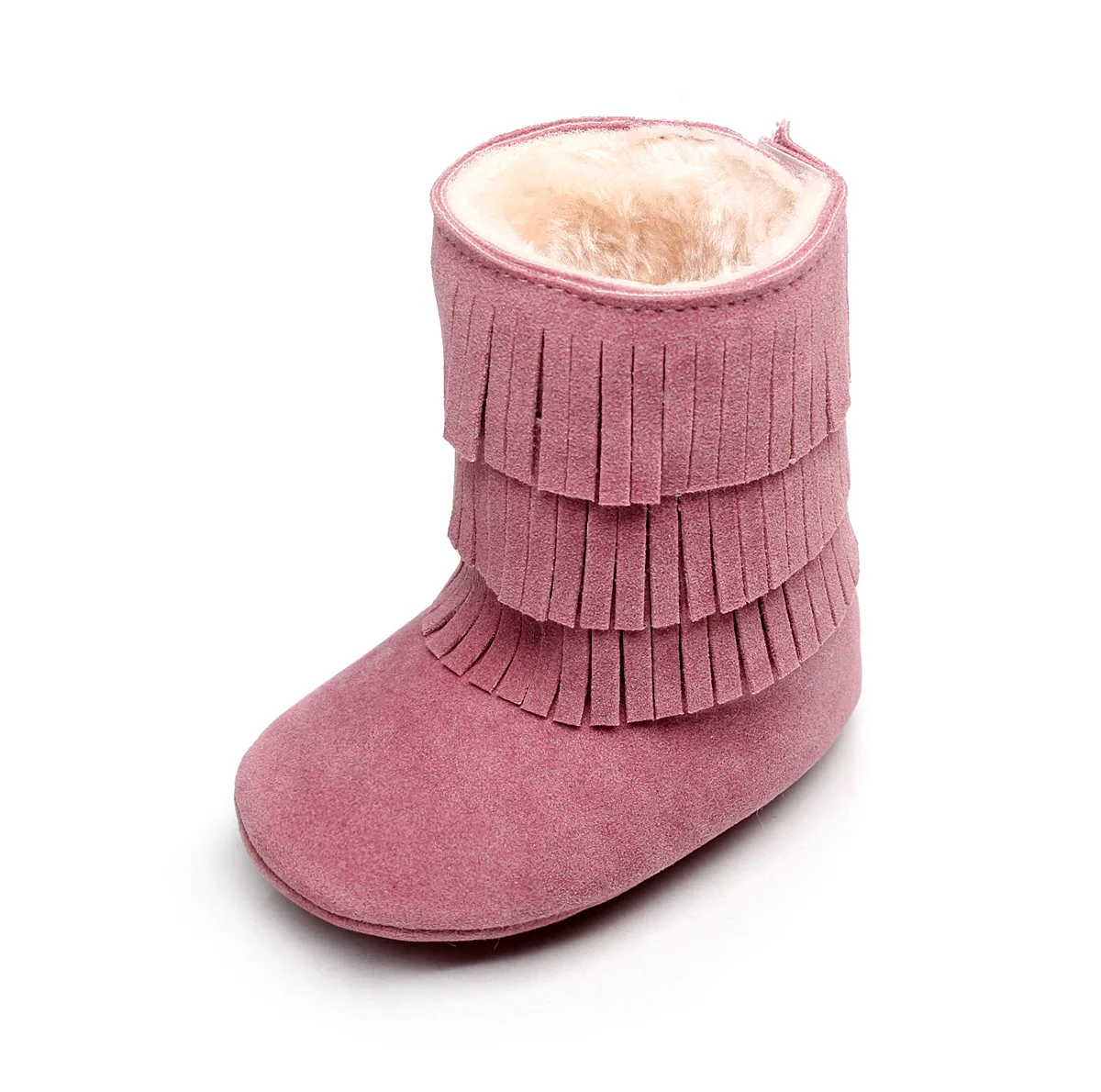 2017 Winter Latest Fashion 3 Layer Tassel Moccasins Latest Pu Suede Leather Baby Shoes Fleece Winter Boots