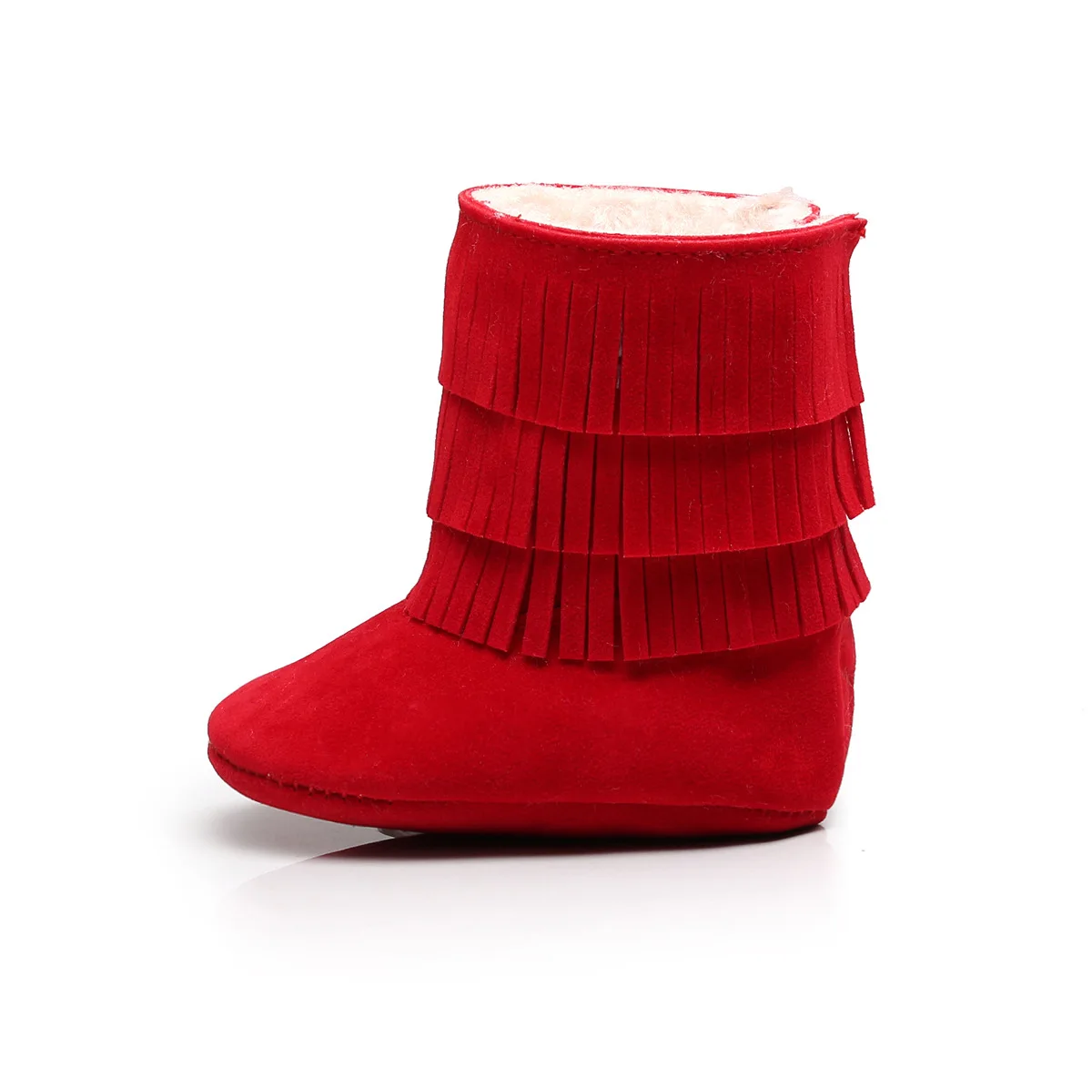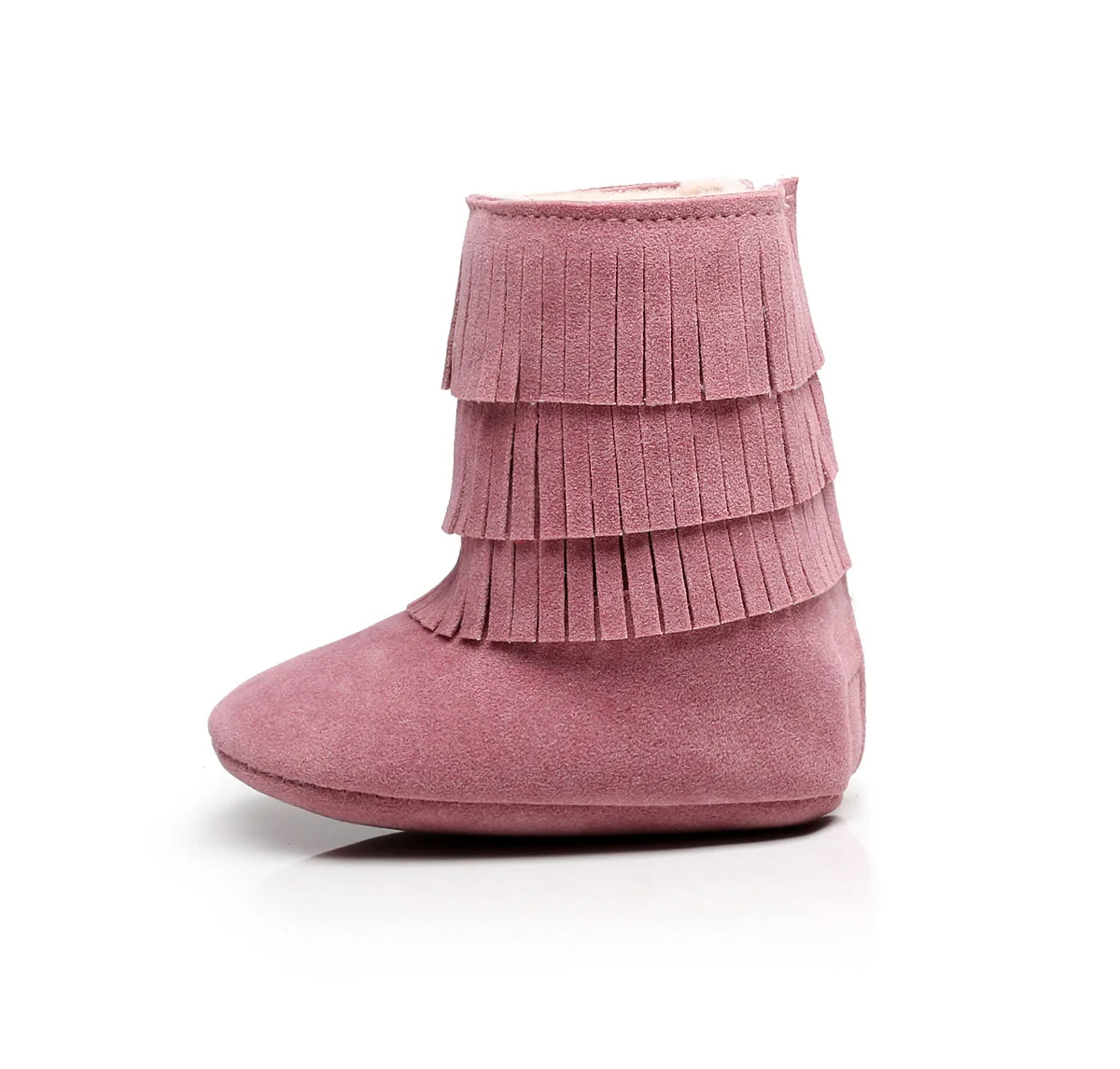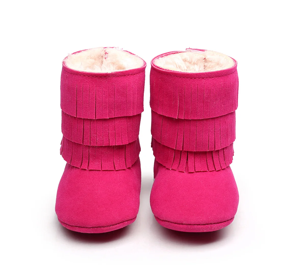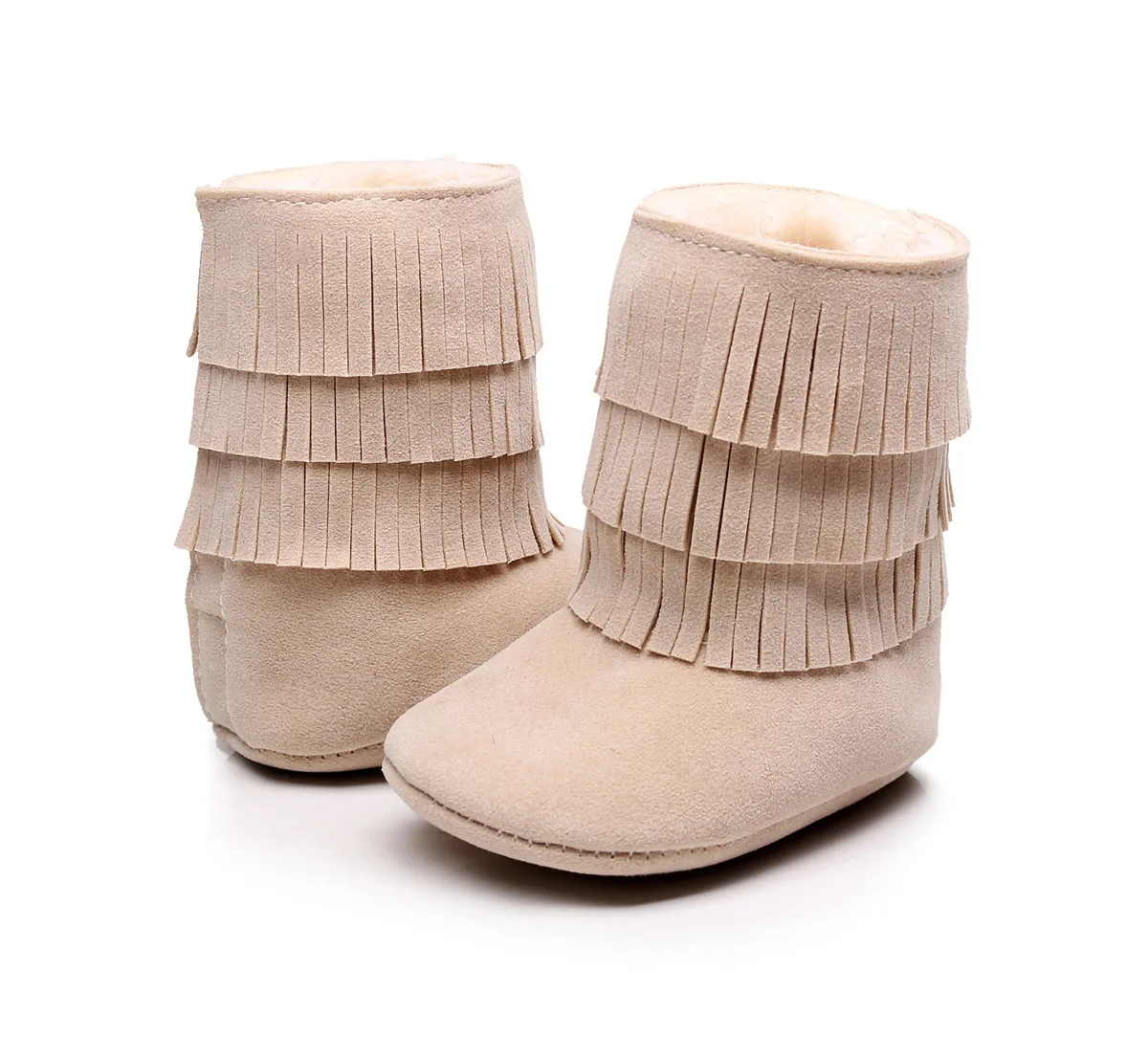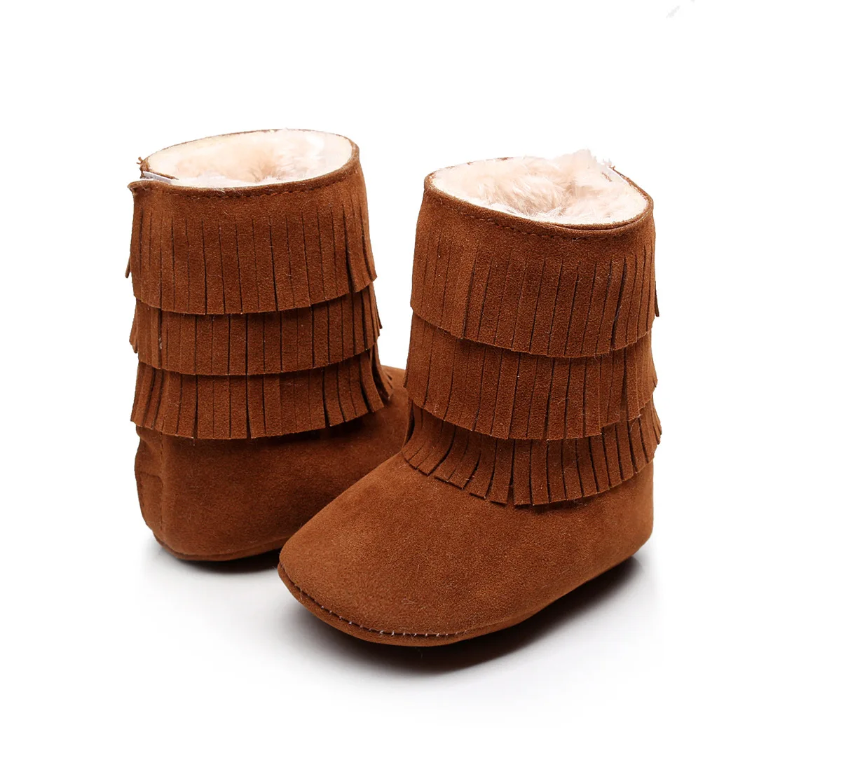 2017 Winter Latest Fashion 3 Layer Tassel Moccasins Latest Pu Suede Leather Baby Shoes Fleece Winter Boots