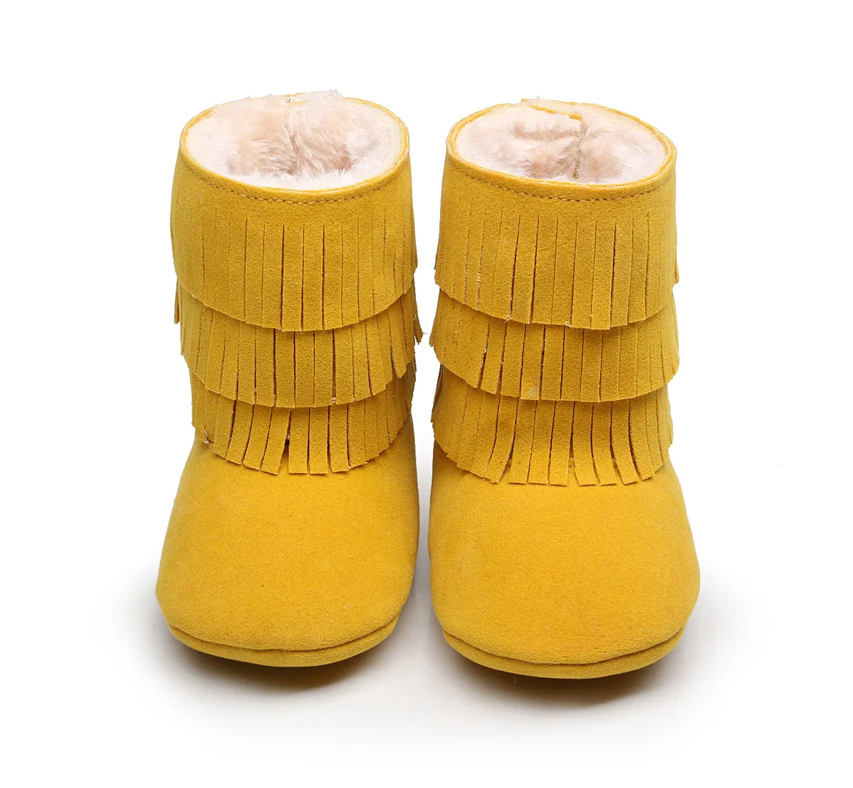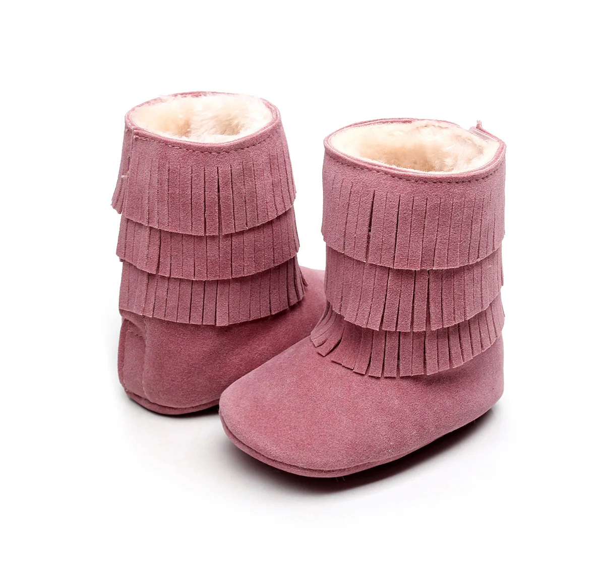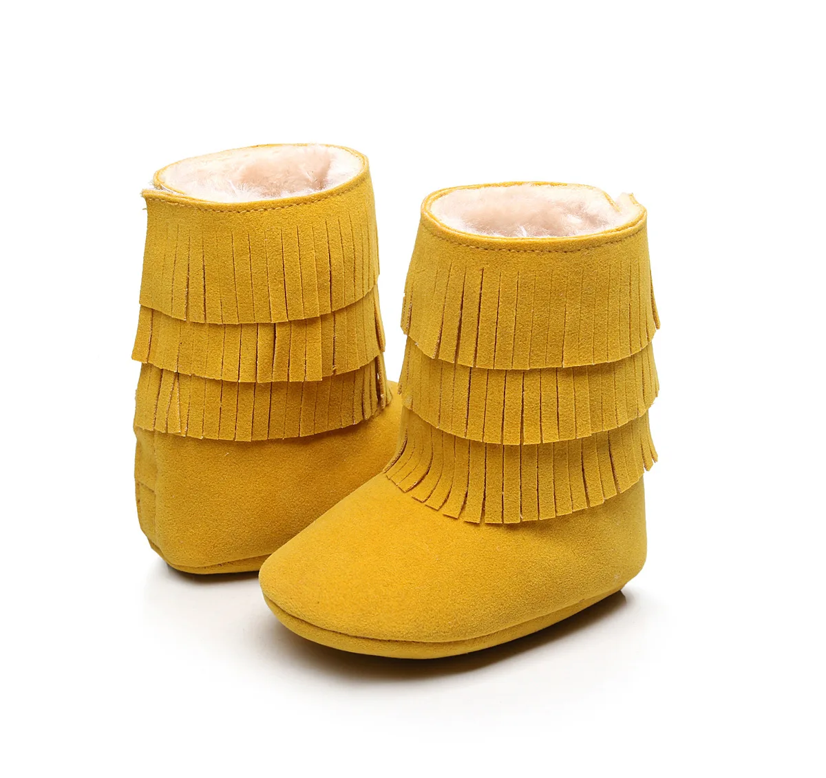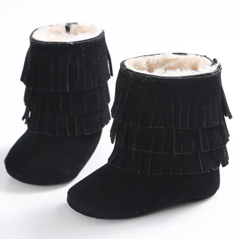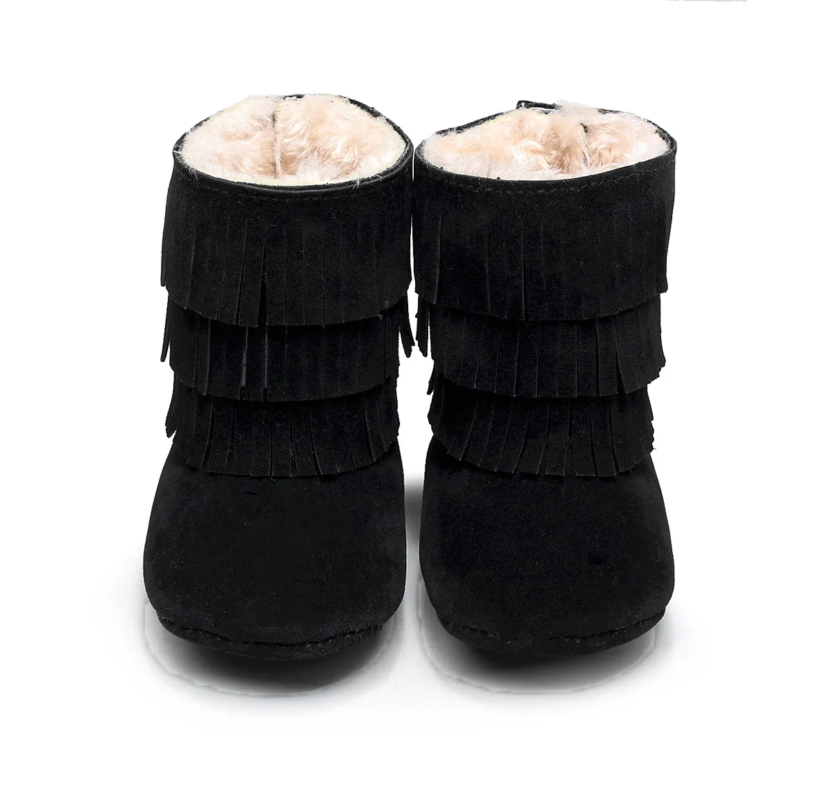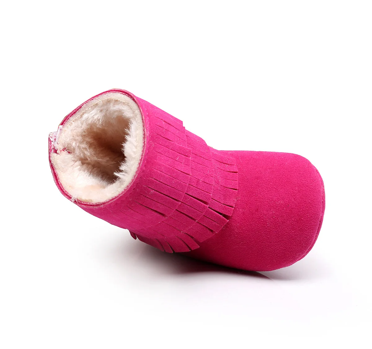 2017 Winter Latest Fashion 3 Layer Tassel Moccasins Latest Pu Suede Leather Baby Shoes Fleece Winter Boots