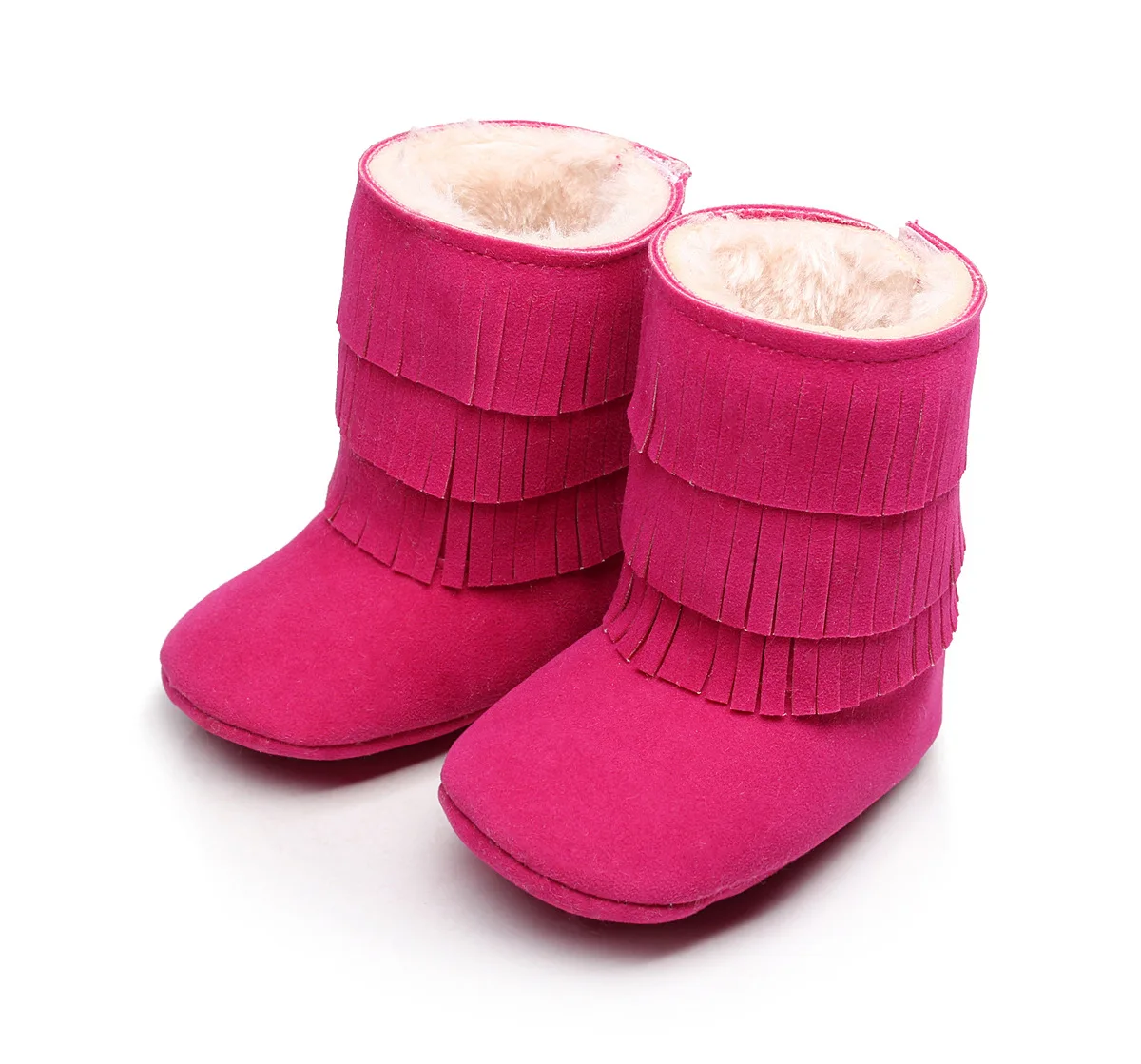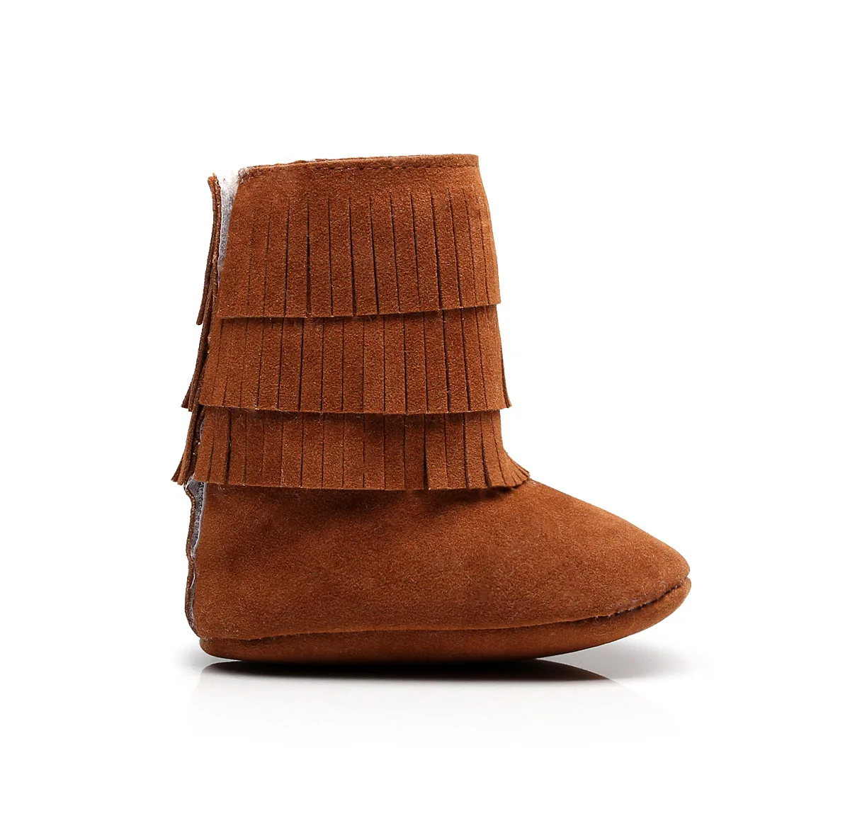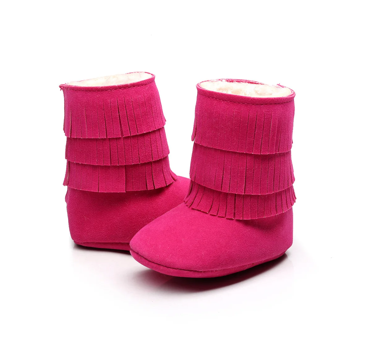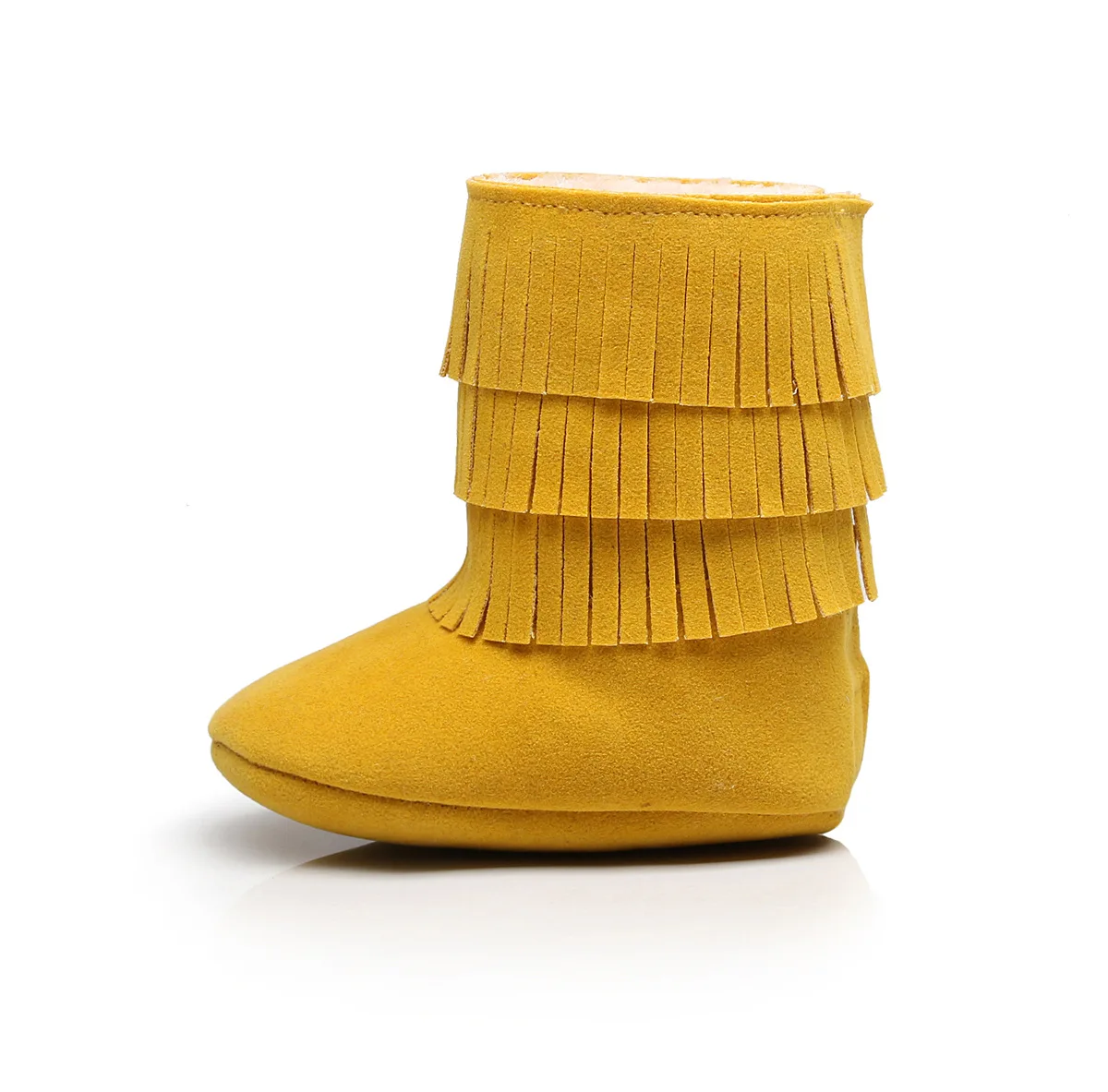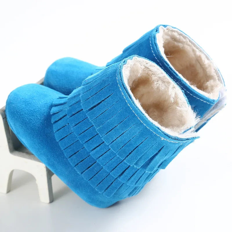 2017 Winter Latest Fashion 3 Layer Tassel Moccasins Latest Pu Suede Leather Baby Shoes Fleece Winter Boots