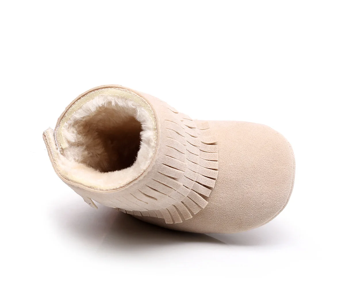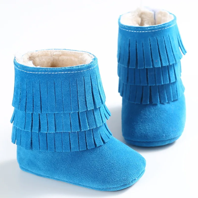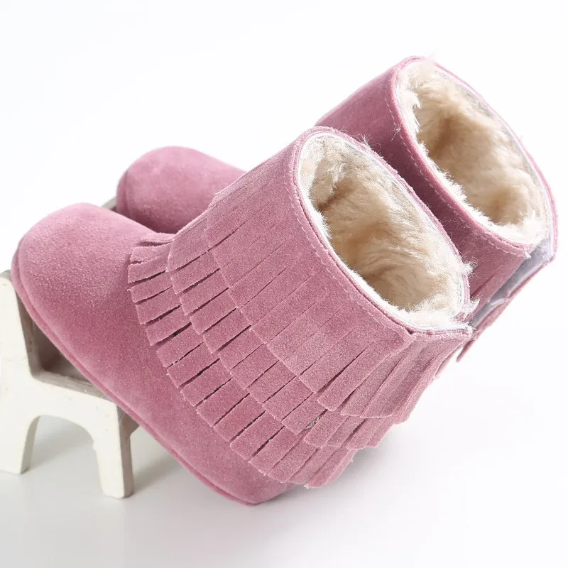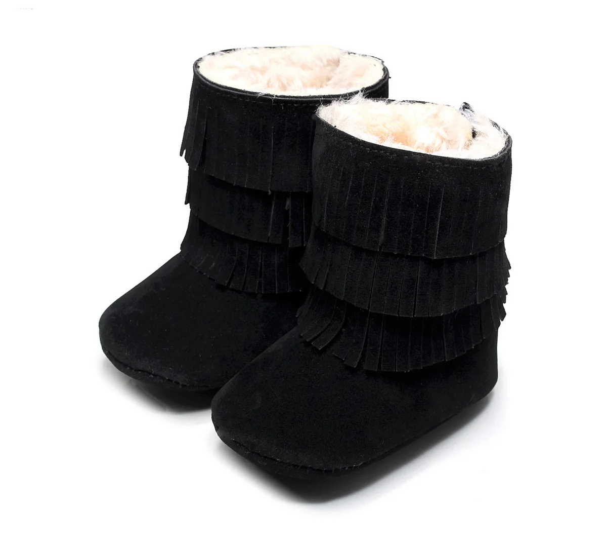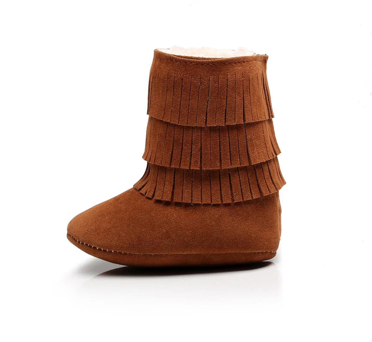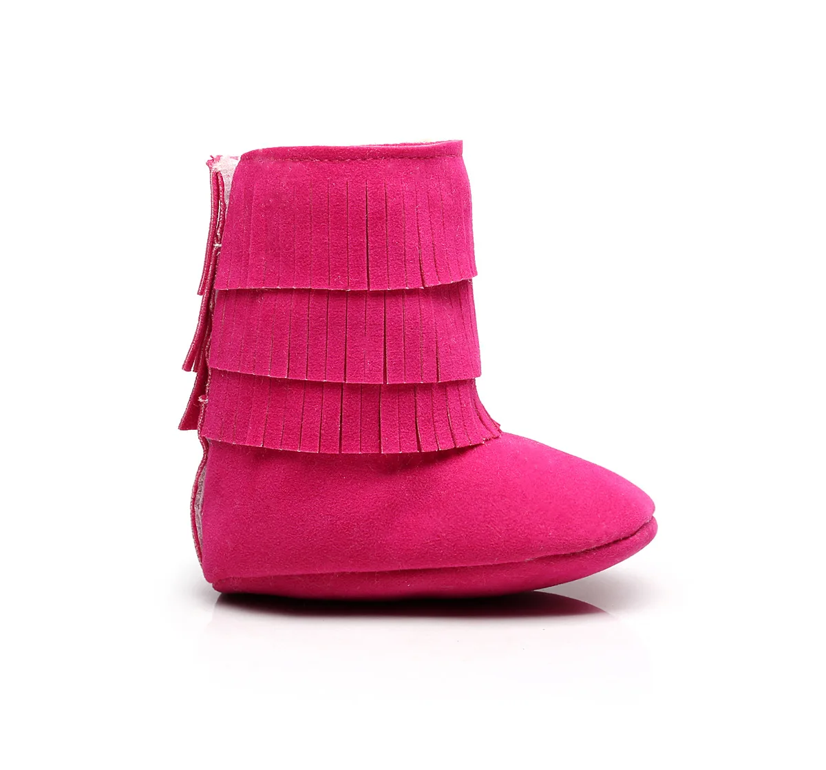 2017 Winter Latest Fashion 3 Layer Tassel Moccasins Latest Pu Suede Leather Baby Shoes Fleece Winter Boots