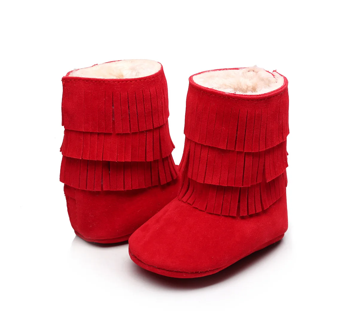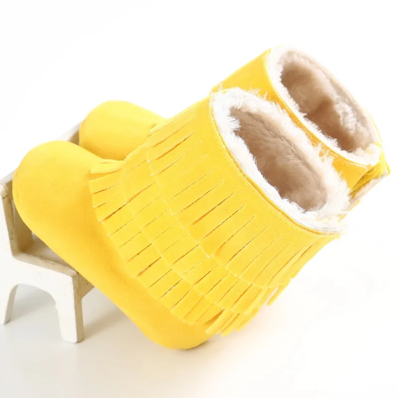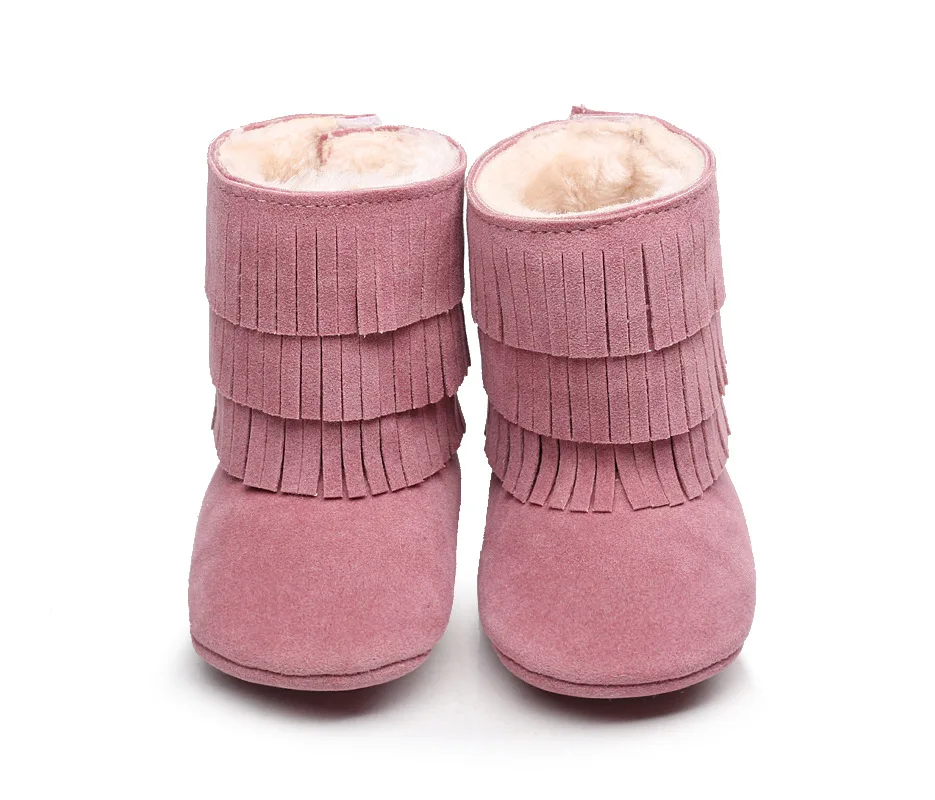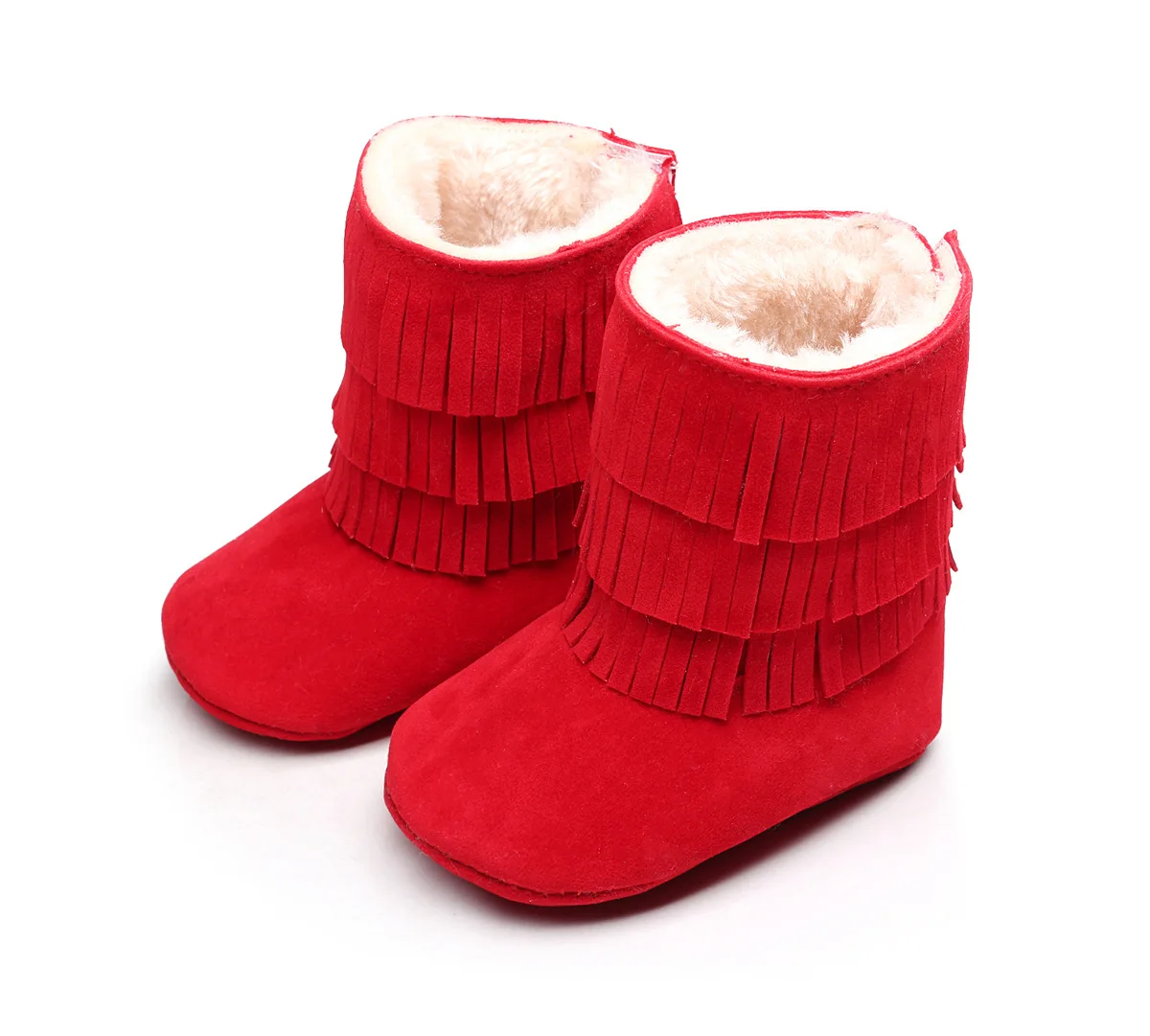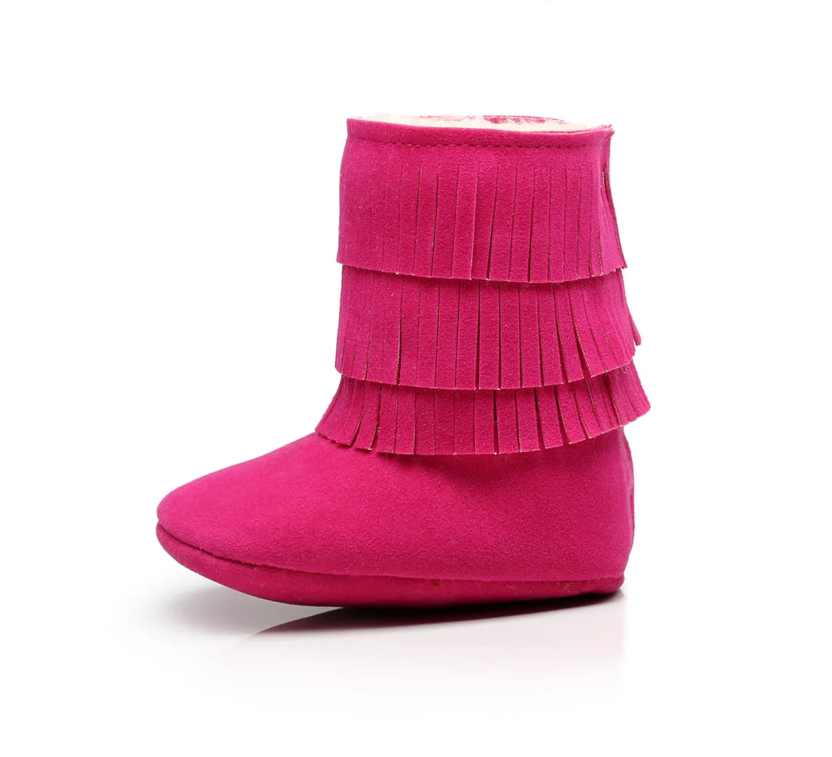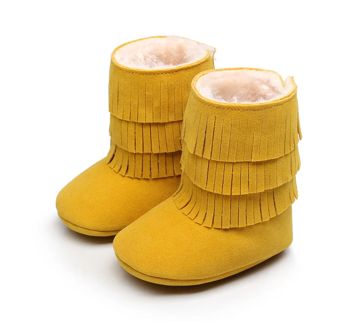 2017 Winter Latest Fashion 3 Layer Tassel Moccasins Latest Pu Suede Leather Baby Shoes Fleece Winter Boots
