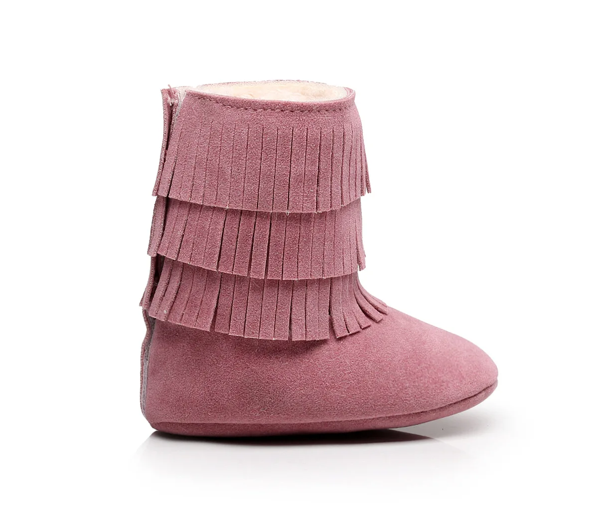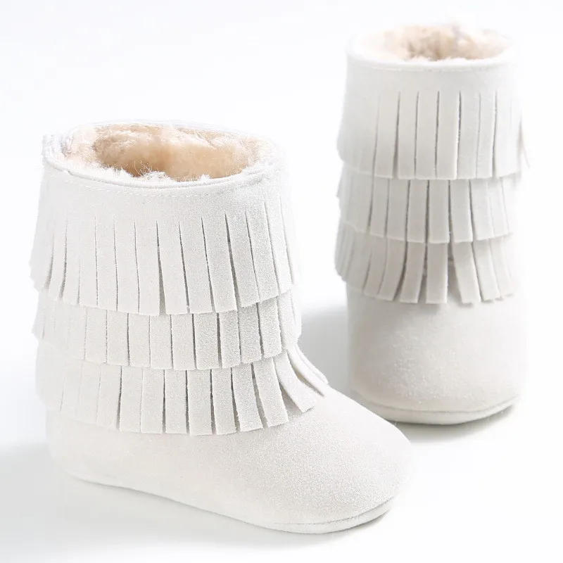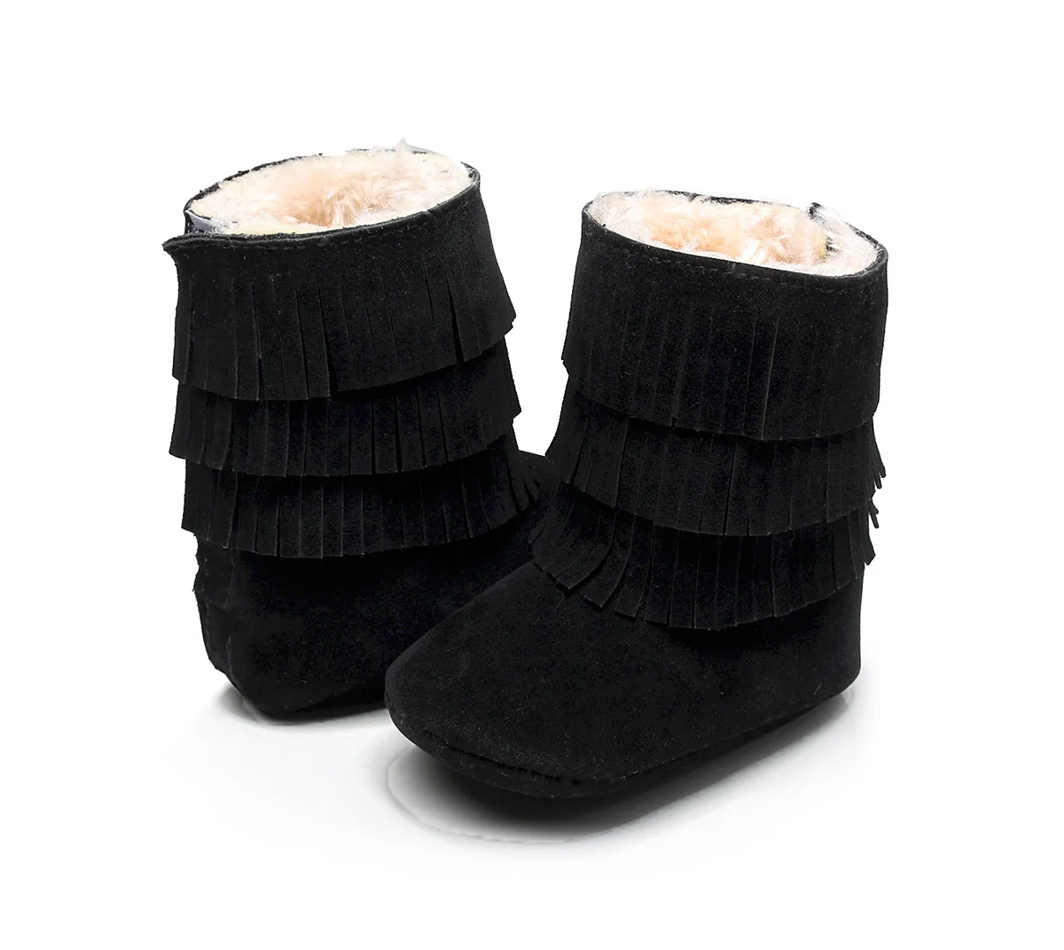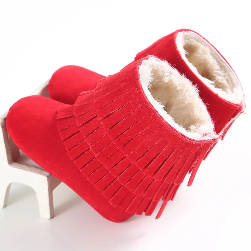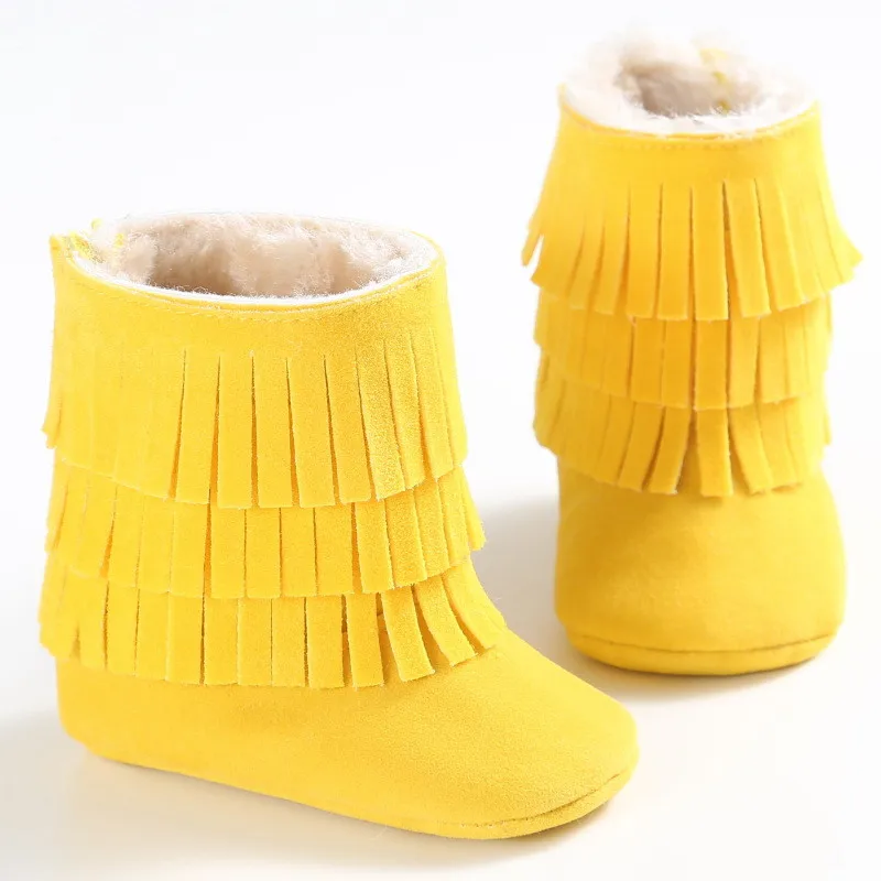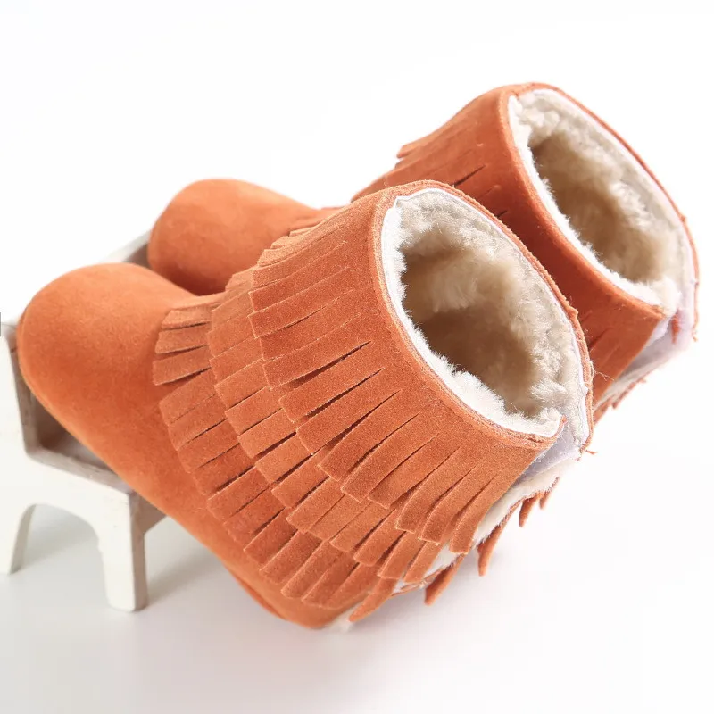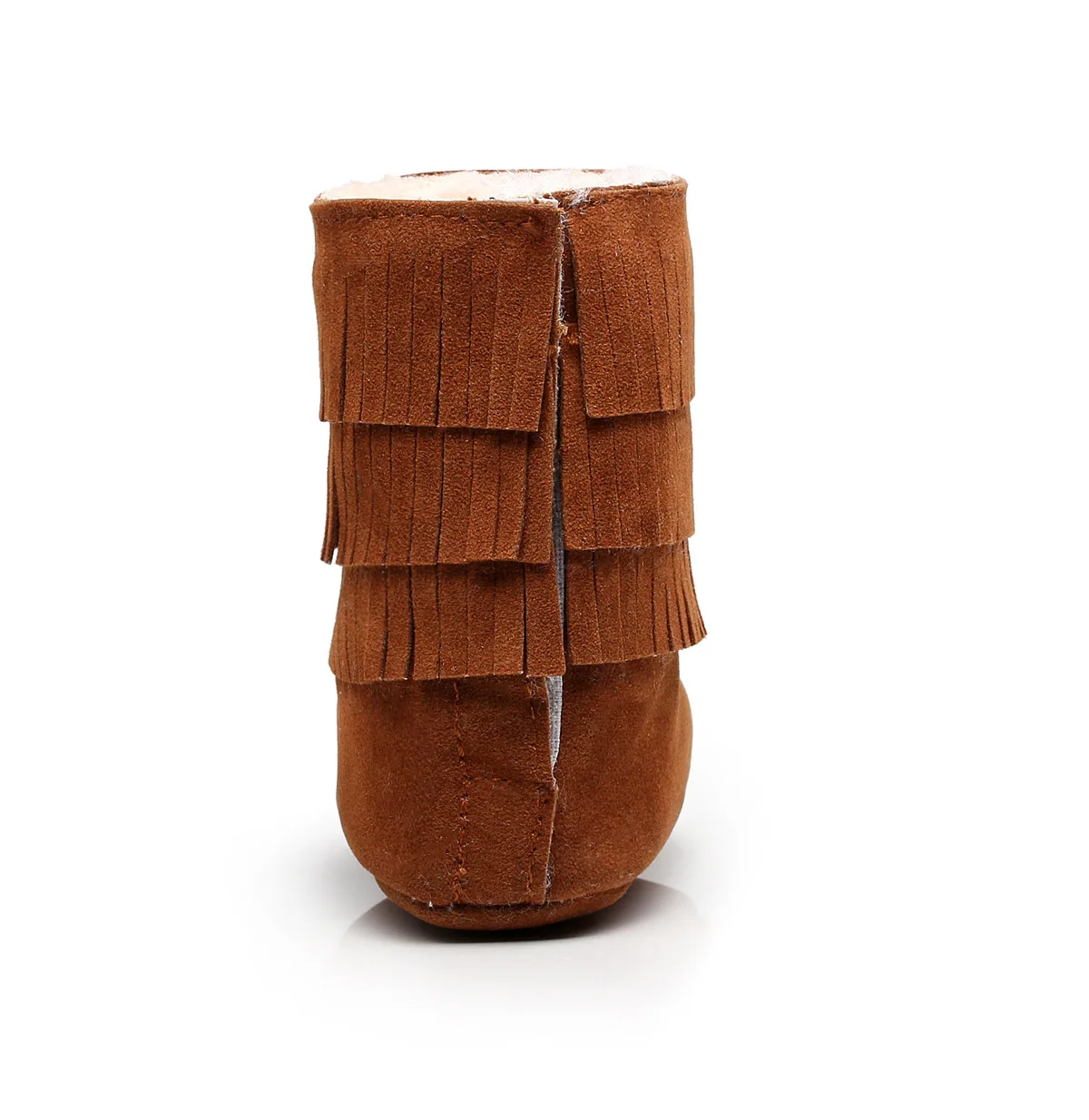 2017 Winter Latest Fashion 3 Layer Tassel Moccasins Latest Pu Suede Leather Baby Shoes Fleece Winter Boots