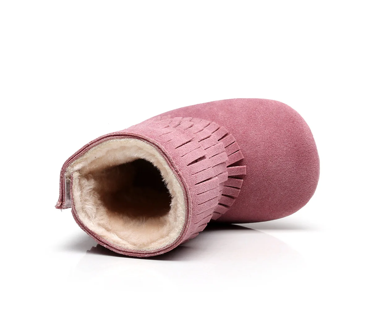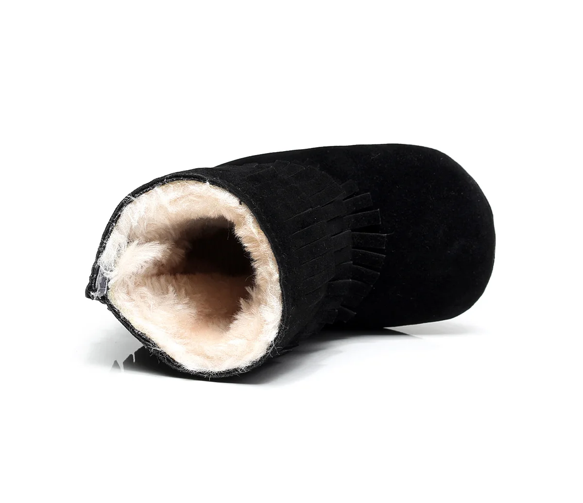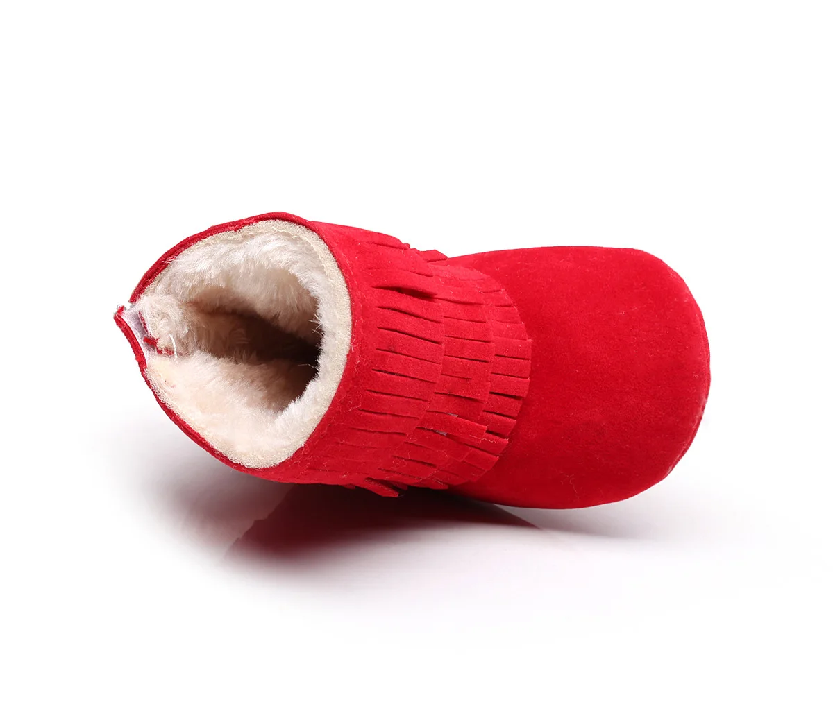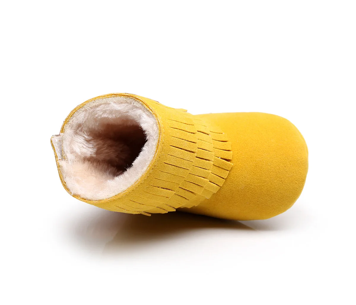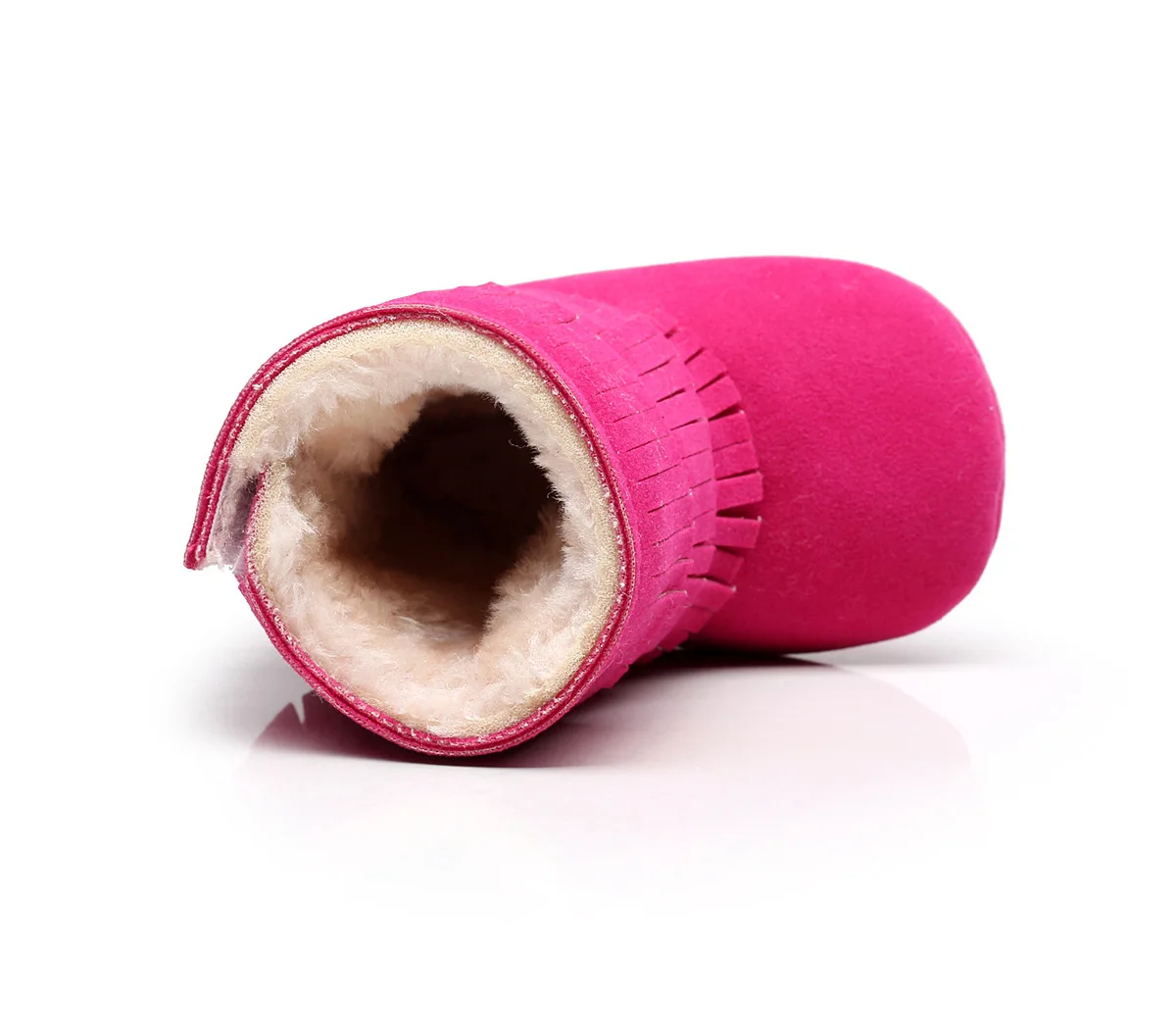 2017 Winter Latest Fashion 3 Layer Tassel Moccasins Latest Pu Suede Leather Baby Shoes Fleece Winter Boots