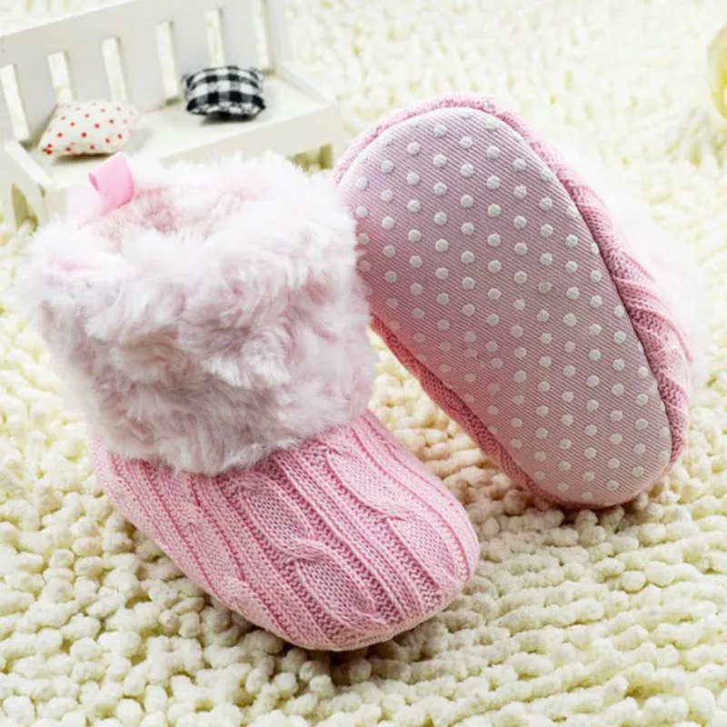 Baby Kid Knitted Fur Snow Boots 5 Color Toddlers Soft Sole Short Boots Shoes 0-18 Months