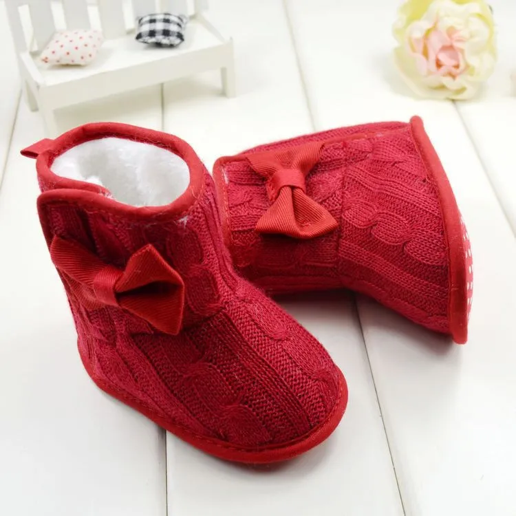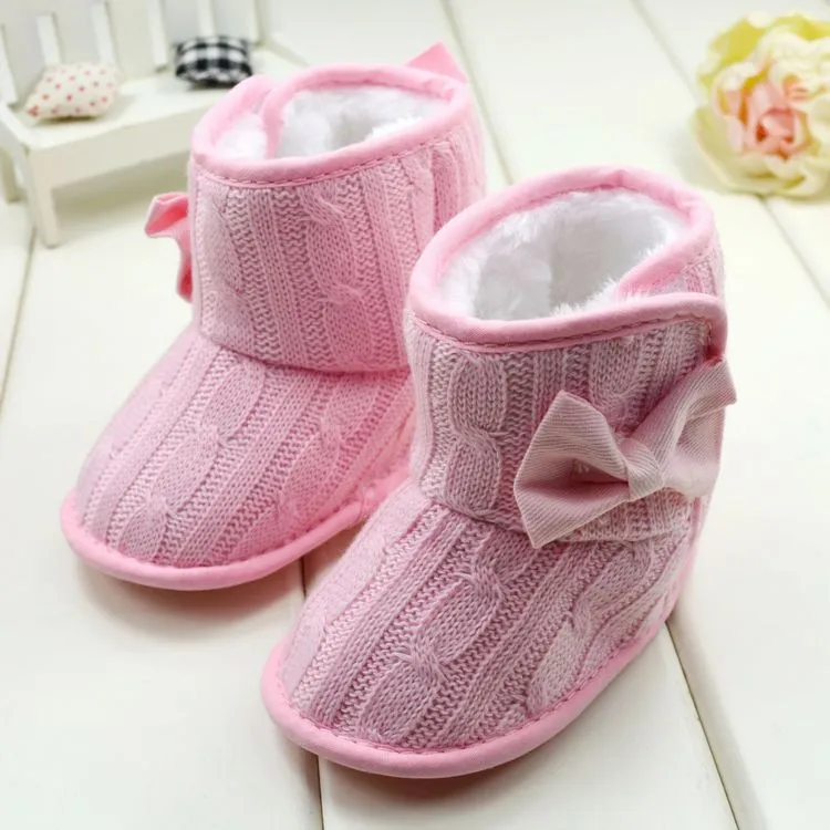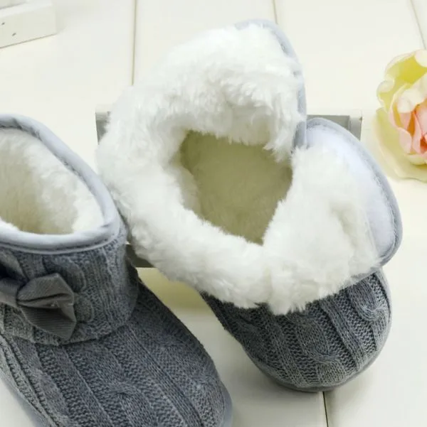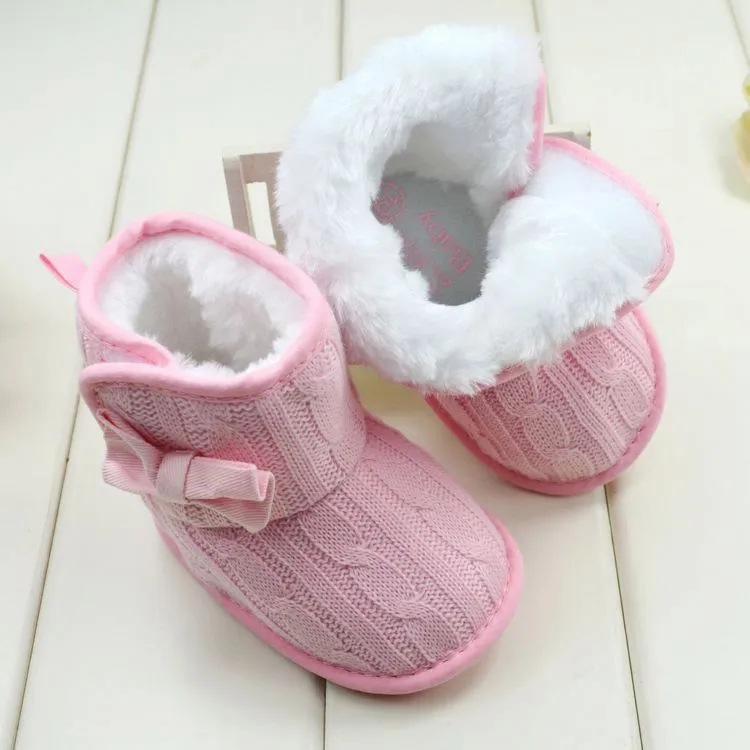 Home » » Shoes » Baby Shoes » Boots » Baby Girl Knitted Boots Bowknot Faux Fleece Soft Sole Shoes Kids Woolen Yam Knitted Fur Winter Snow Boots