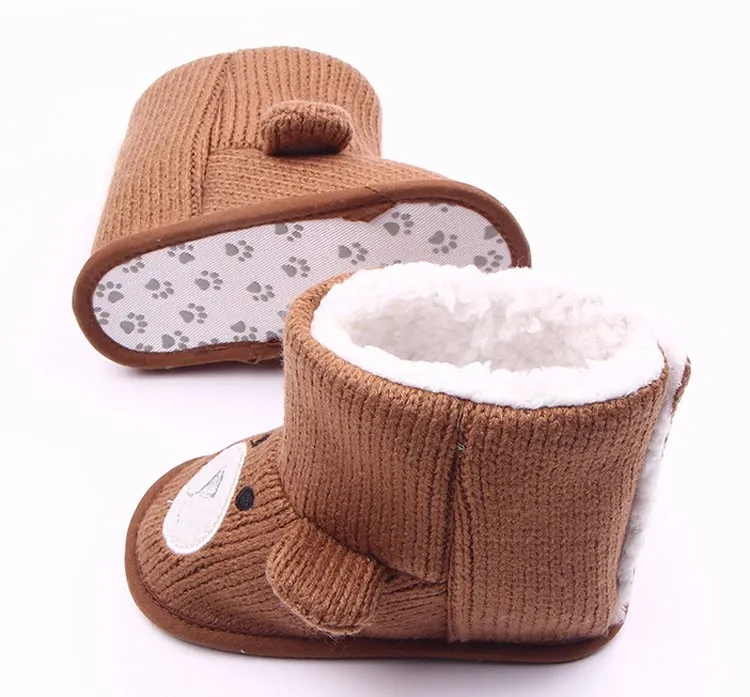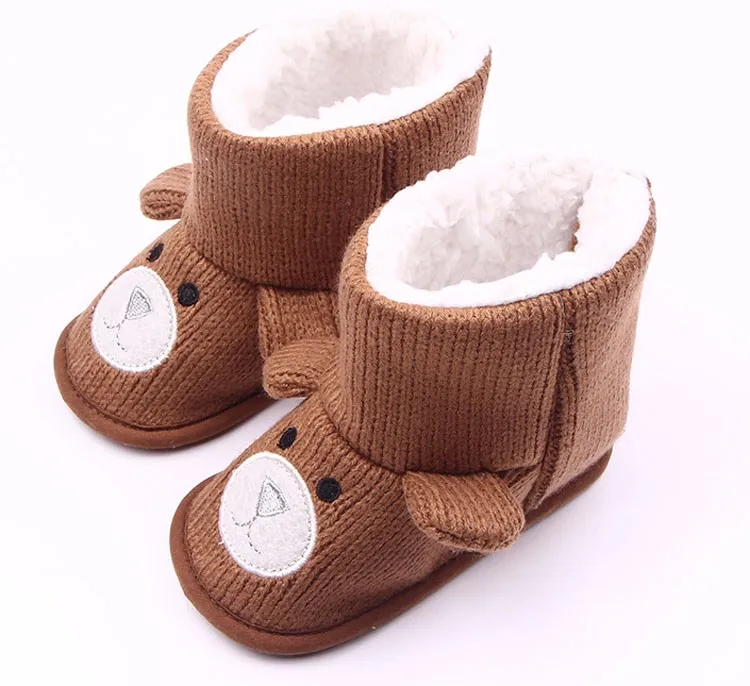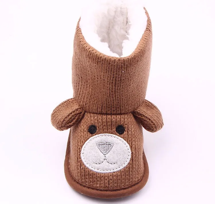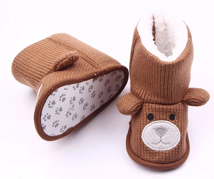 Cartoon Bear Baby Boots Knit Soft Sole Kids Snow Boots Baby Crochet Shoes