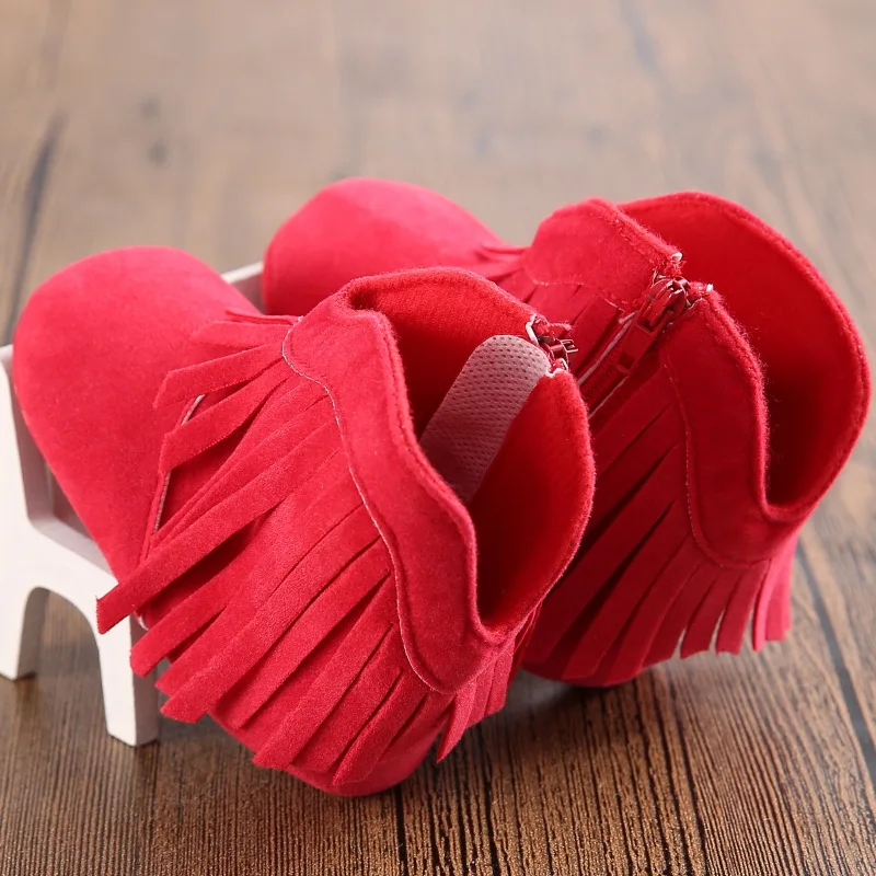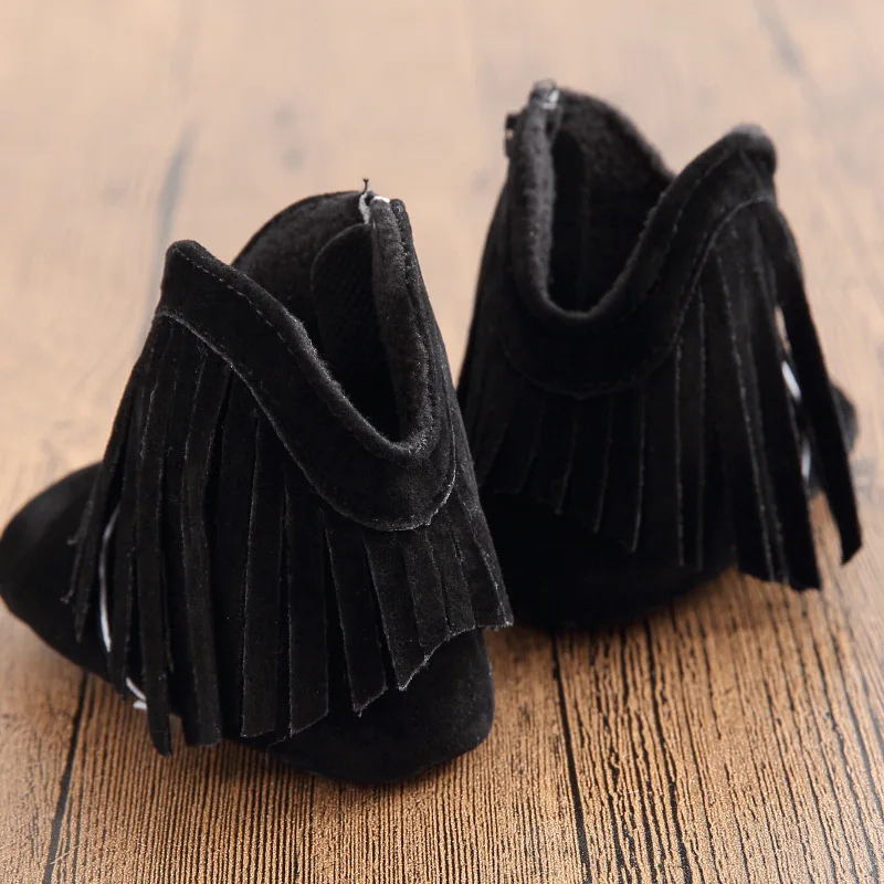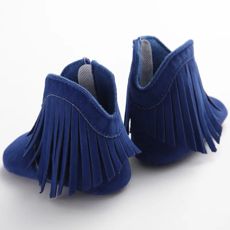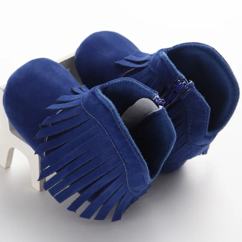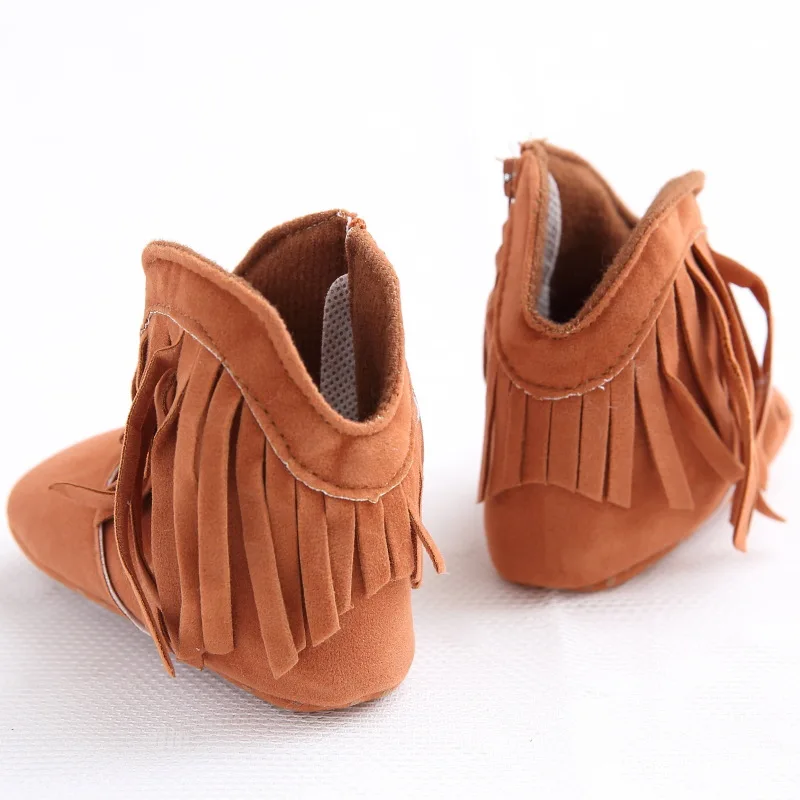 Material: Suede Leather Style: Baby Moccasins Shoes Color: Creamy-white, Red, Black, Pink, Brown, Blue Size: Fit for 0-18 months baby 1 inch= 2.54 cm please check the size reference: US 1.0= insole Length 11 CM/ 4.41” Suitable for 0-6 months baby US 2.0= insole Length 12 CM/ 4.92” Suitable for 6-12 months baby US 3.0= insole Length 13 CM/ 5.23” Suitable for 12-18 months baby We suggest that the shoes’ length should longer than your baby’s foot 0.5 to 1cm. Because of the different measurement methods, there may be 1-2cm of the allowable range error.