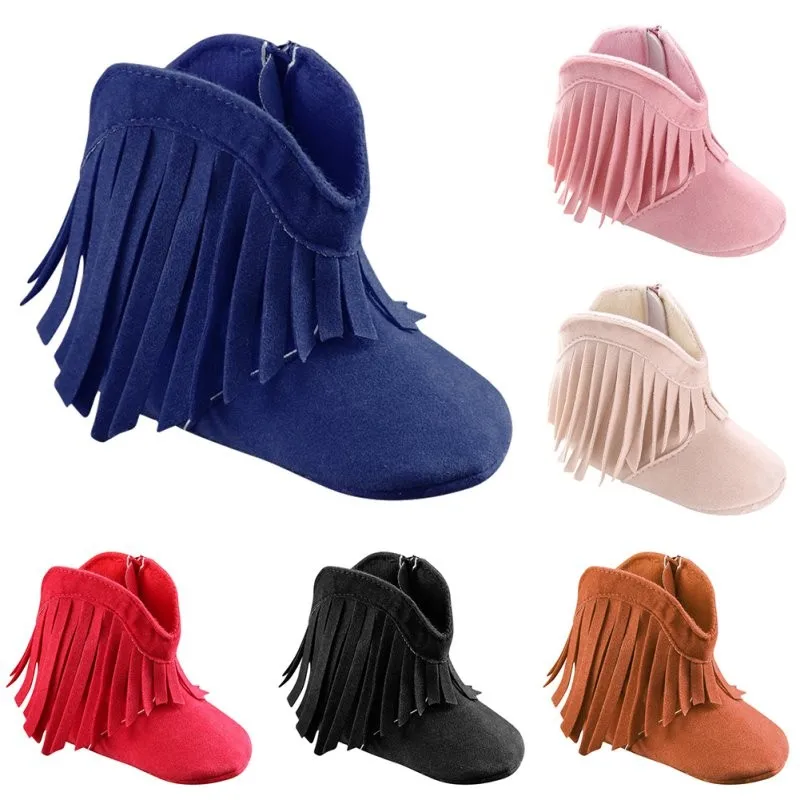 Newborn Baby Girl Kids Moccasin Moccs Solid Fringe Shoes Infant Toddler Soft Soled Anti-slip Boots Hot 0-18M