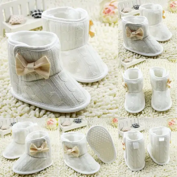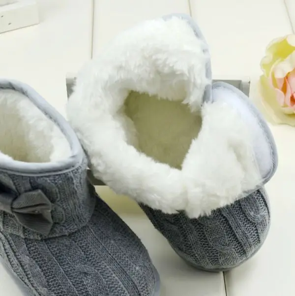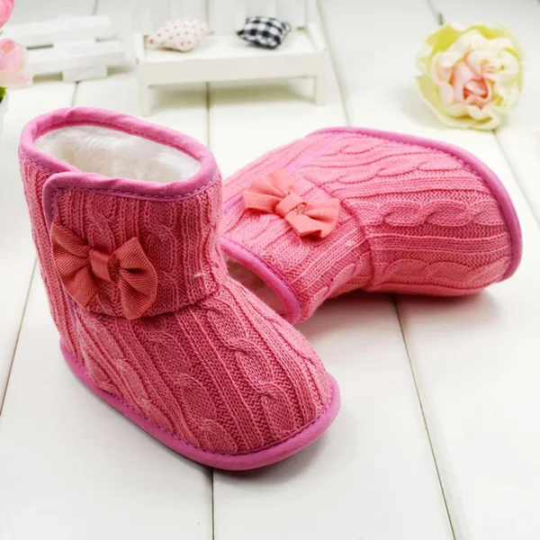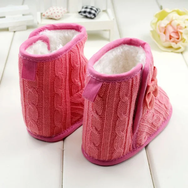 Toddler Girls Knitted Woolen Snow Boots Bowknot Infant Fleece Booties Baby Shoes
