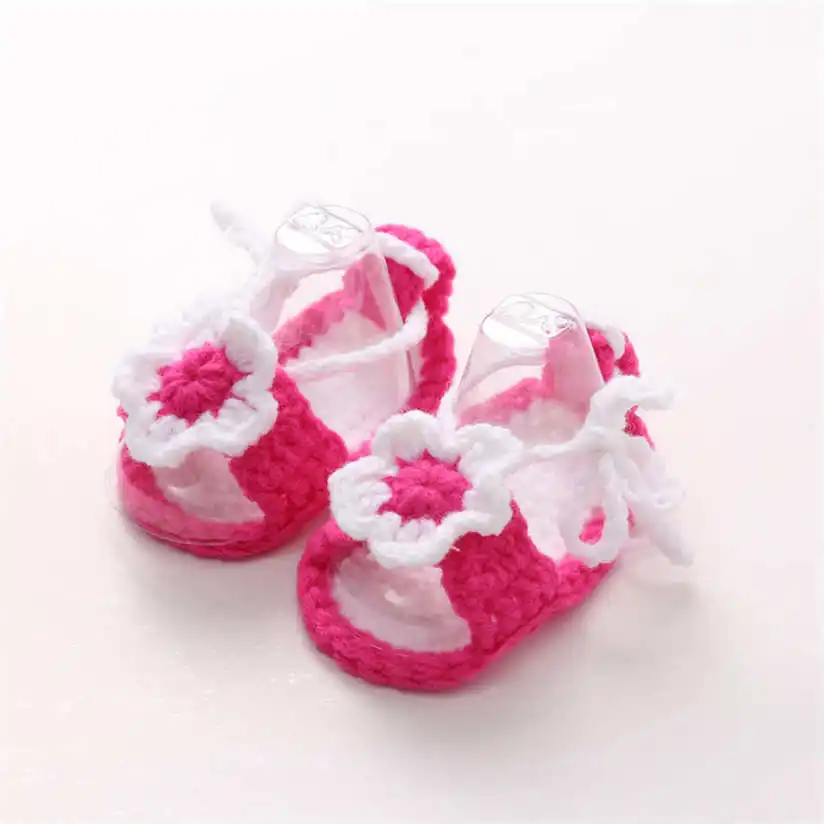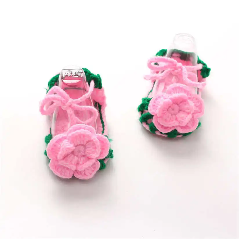 Crib Crochet Casual Baby Girls Handmade Knit Sock Roses Infant Shoes