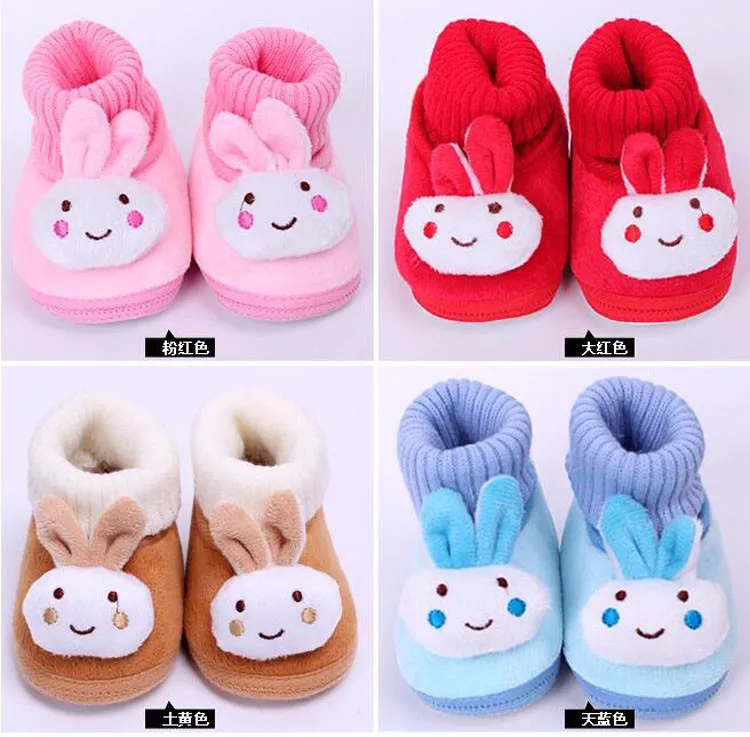 Cartoon Rabbit Baby Girl Shoes Soft Fleece Baby Moccasins Anti Slip Newborn Winter Slipper Socks