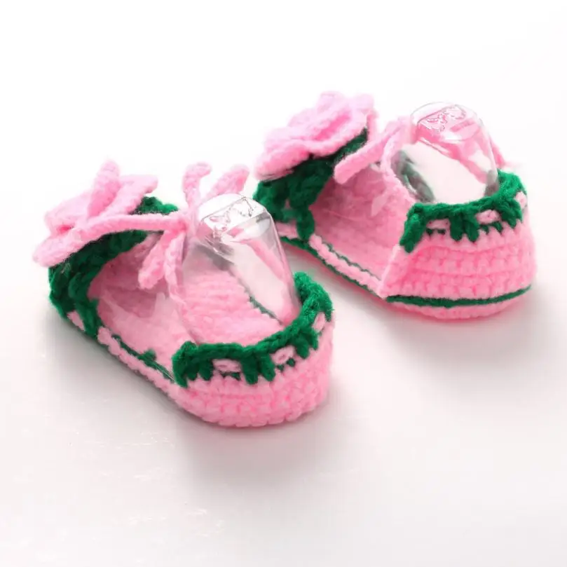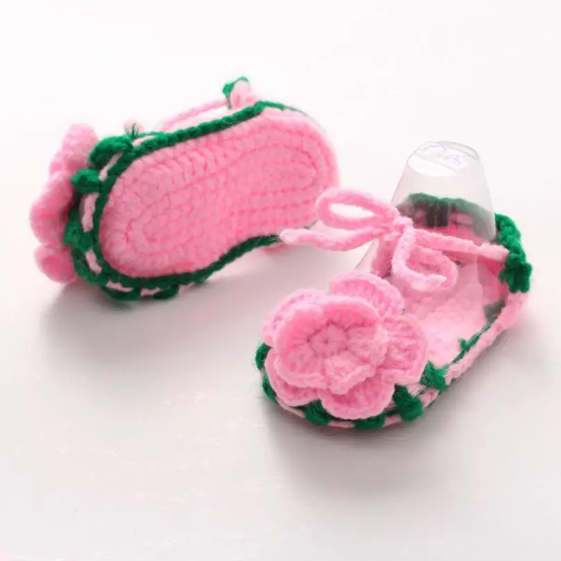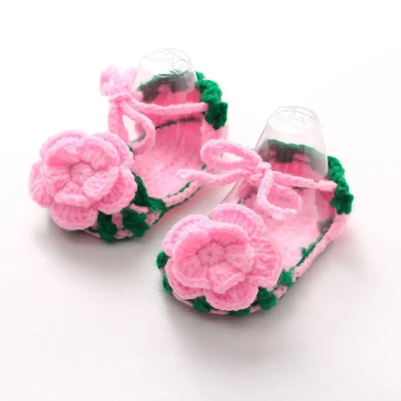 Crib Crochet Casual Baby Girls Handmade Knit Sock Roses Infant Shoes