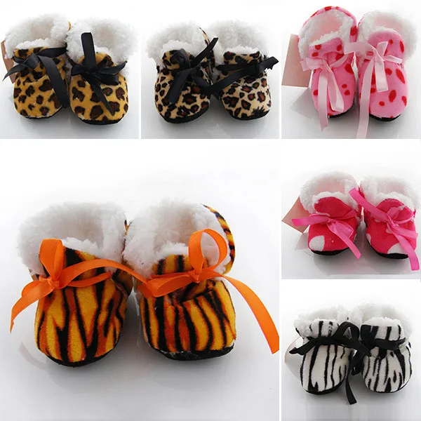 Home » » Shoes » Baby Shoes » Crib Shoes » Leopard Zebra Toddler Kids Fleece Fur Boots Baby Shoes Winter Laced Ankle Socks