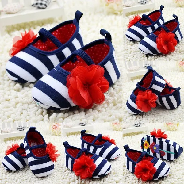 Infant Toddler Girls Flower Crib Shoes Soft Striped Elastic Casual Party Baby Prewalker for All Seasons