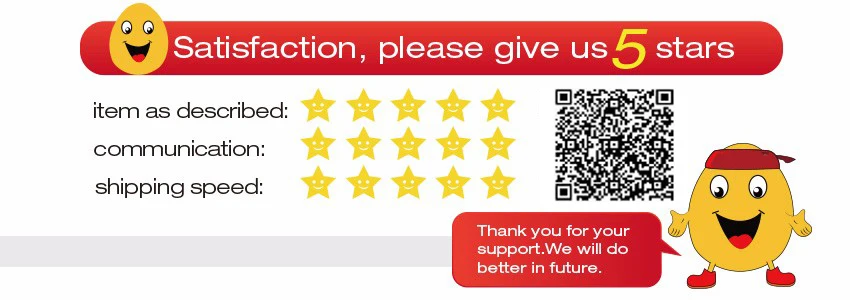 Shipping 1)Items will be shipped within 5 working days business days after we verify your payment. 2)Please tell me your current address after your payment within 1-2 days; otherwise, we will ship your item based on your Escrow address, so make sure it is correct. 3)Before ordering please contact us to confirm your preferred shipment method. Normally, most countries will be get goods in 30 -60 days , Russian buyers will get goods in 30-90 days ,Brazil buyer will get goods in 30-120 days. 4)Sometimes it would be longer because of the bad weather, a waste of time in customs clearance. Thus please wait patiently when you do not receive your item on time. If you don’t receive the item within thirty days, please contact us, and then I will help you track it. Return Policy Only defective product will be offered exchange. Defective products must be returned within 30 days from the date you placed your order. It may take up to 7 business days to process your return after we receive your product.The buyer is responsible for all further shipping fees. Feedback 1)Your Feedback is really important to us, please take a few seconds to leave a great feedback if you are satisfied with our product and service, thank you so much !! 2)We always offer the lowest price for best goods and service to you. 3) Please contact us before leaving neutral(3 stars) or negative(1-2 stars) feedback.We will try our best to solve the problem and leave you a happy shopping mood here. Thank you! Contact Us 1)If you have any questions or need any help, please feel free to contact us! Thank you ! 2)We do try respond as quickly as possible.but please allow delay response for non-business time. we will be glad to answer any question you may have so please feel free to contact me. Thank you for your support !