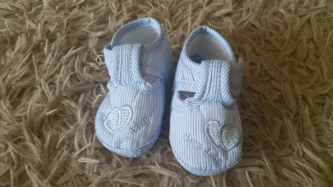 size M is inter length 11.5cm, About 4.49″. They may fit age 6-9 months baby