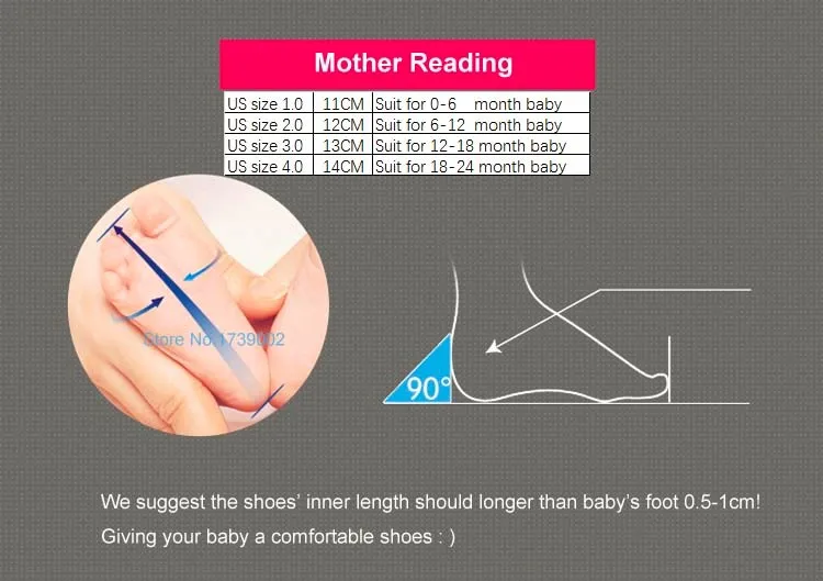 Please choose the size of which is longer than the length of your baby’s feet 0.5 to 1cm !