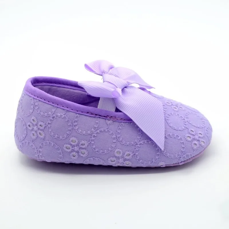Infant Girls Ribbon Bowknot Soft Bottom Shoes Kids Cotton White Flower Prewalker