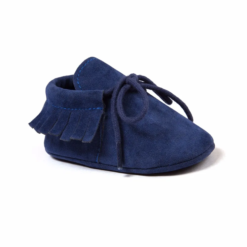 2016 new Spring/Autumn brand Romirus lace-up Pu leather Baby Moccasins shoes infant suede boots first walkers Newborn baby shoes 100%Brand new and high quality! Comfortable, Soft, easy cleaning. Convenient wear, not easy to fall off. Head wide design, more comfortable to baby wear. Your baby will looks more fashionable and attractive. Color:Dark Blue , Black,Pink, and so on Material:PU Fastening:Slip on Size:1/2/3(0-18M) Package Including: 1 Pair Shoes Size Sole Length Sole Wide Age 1 11cm/4.33″ 4.7cm/1.85″ 0-6 Months 2 12cm/4.72″ 4.9cm/1.93″ 6-12 Months 3 13cm/5.12″ 5.1cm/2.01″ 12-18 Months Note:Shoes size & age for guidance only,it is essential that you take careful measurements in order to ensure proper fit.