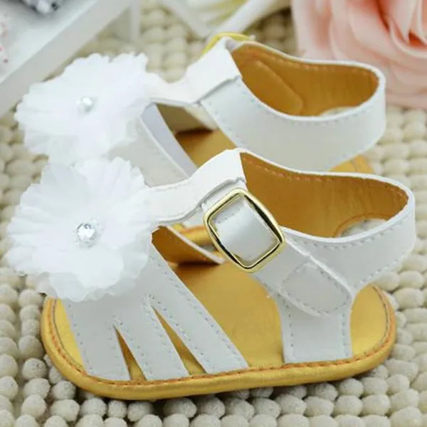 Newborn Baby Summer White Flower Sandals Toddler Girls Soft Sole Anti-Slip Princess Crib Shoes Prewalker