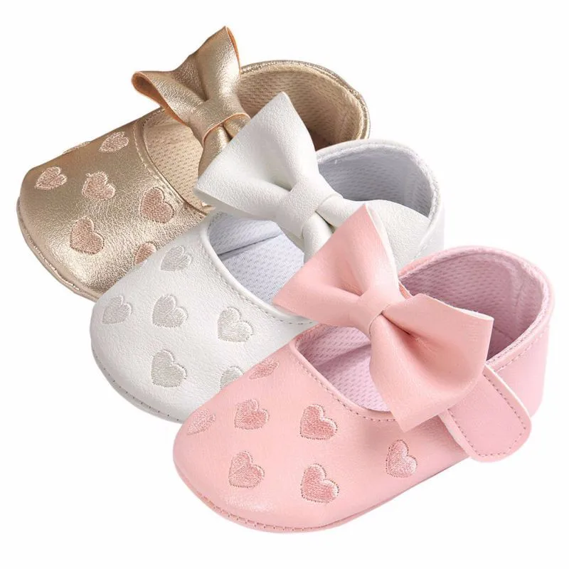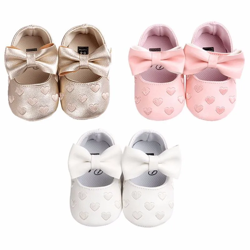 Big Bow Embroidery Love Soft Bottom Kids ShoesNon-slip Baby Shoes Prewalkers Boots Newborn Babies Shoes Soft Bottom PU Leather Shoes