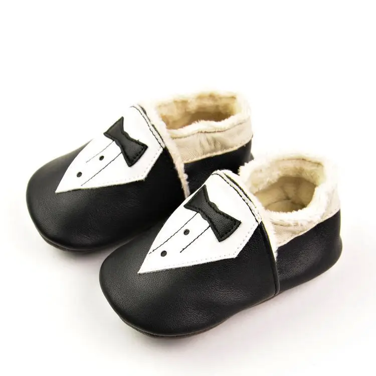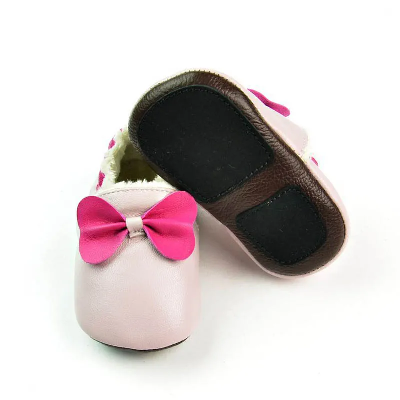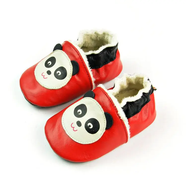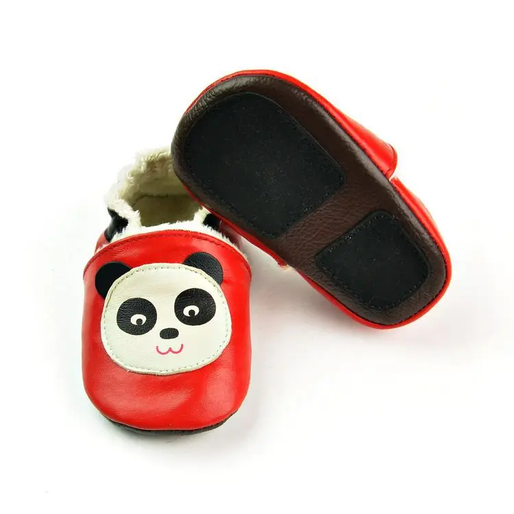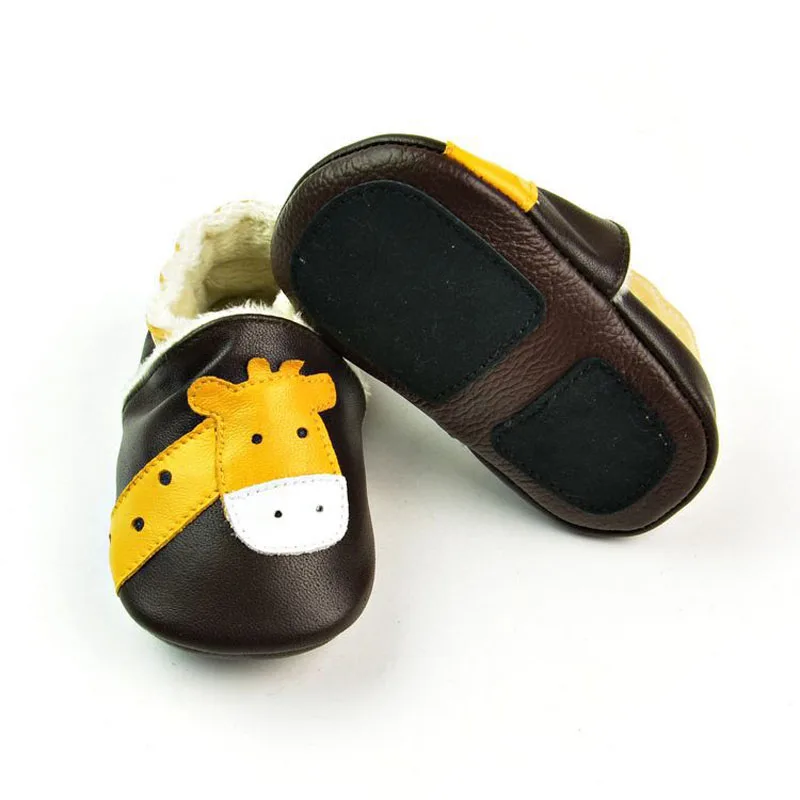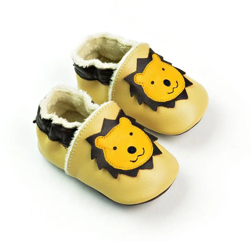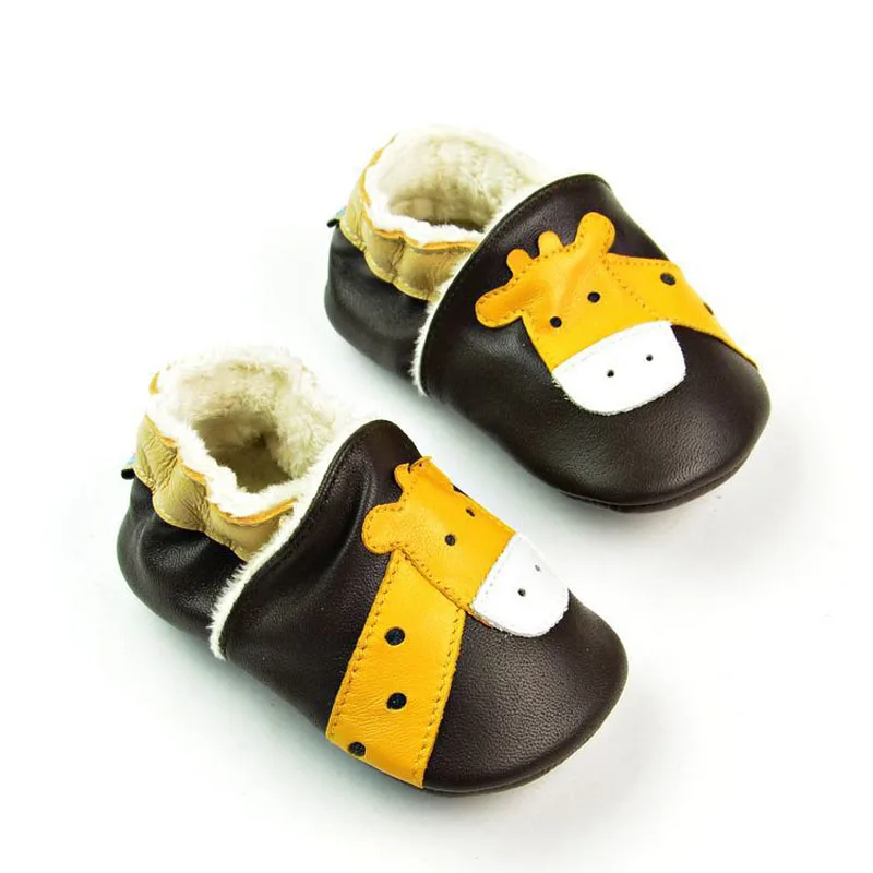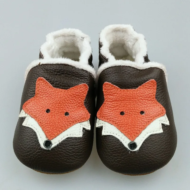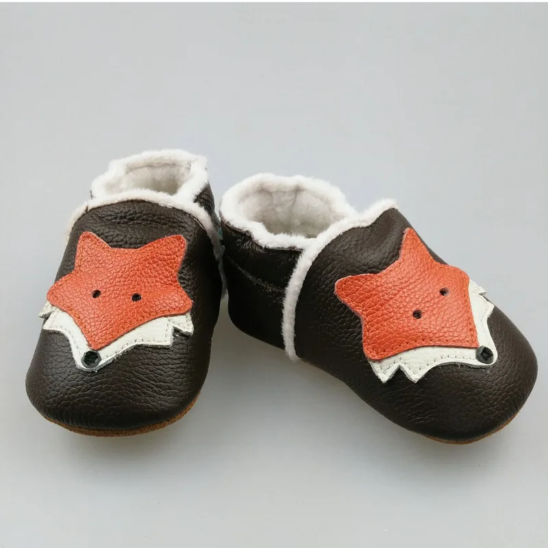 Cartoon Fox Baby Shoes Newborn Winter Plush Lining Genuine Leather Baby Moccasins Slip On Soft Sole Infant First Walkers