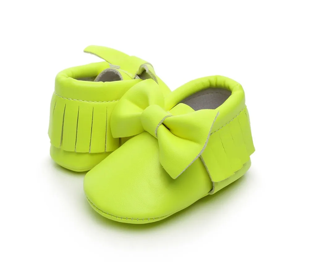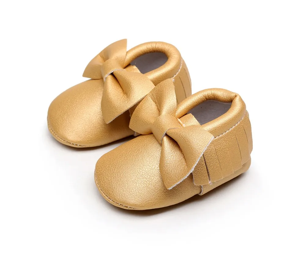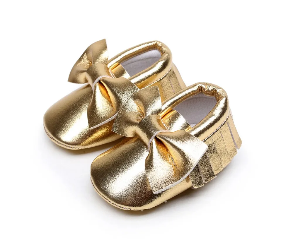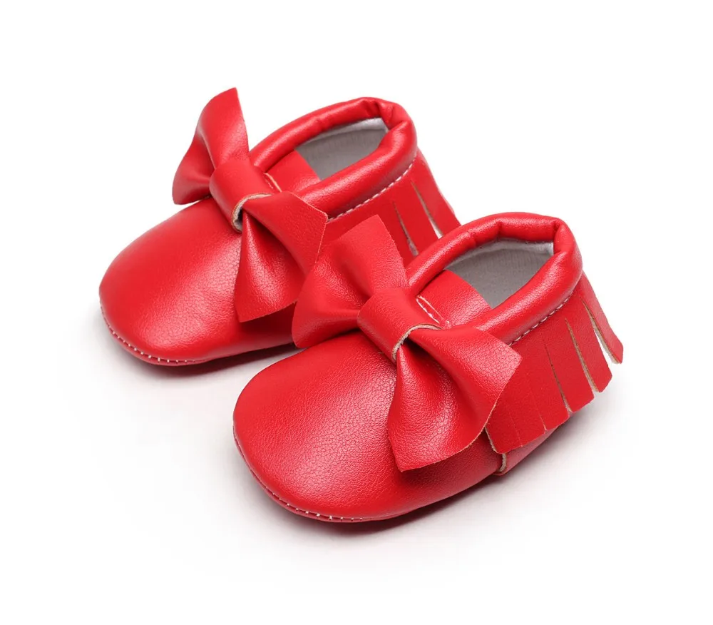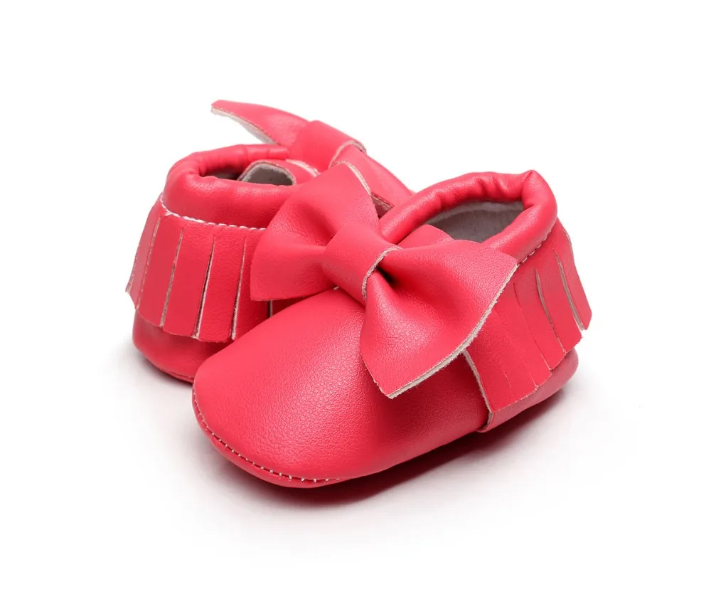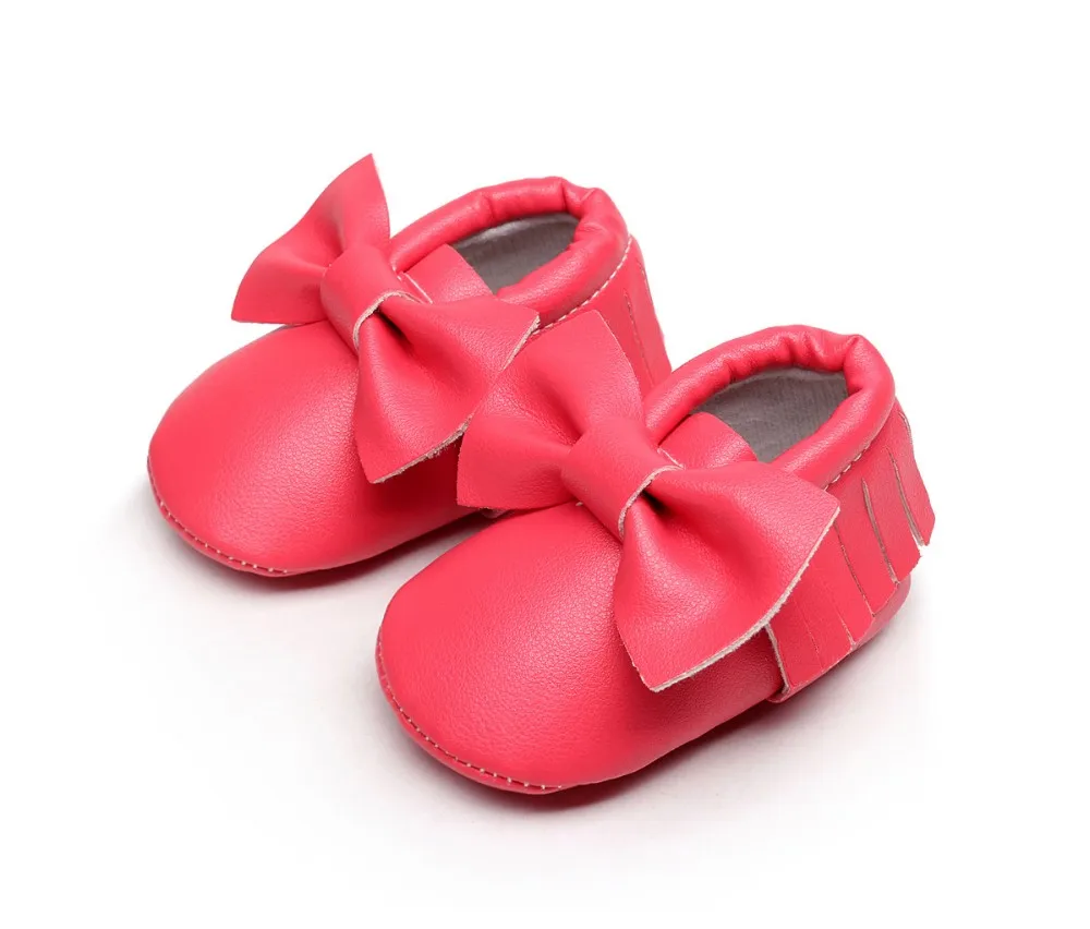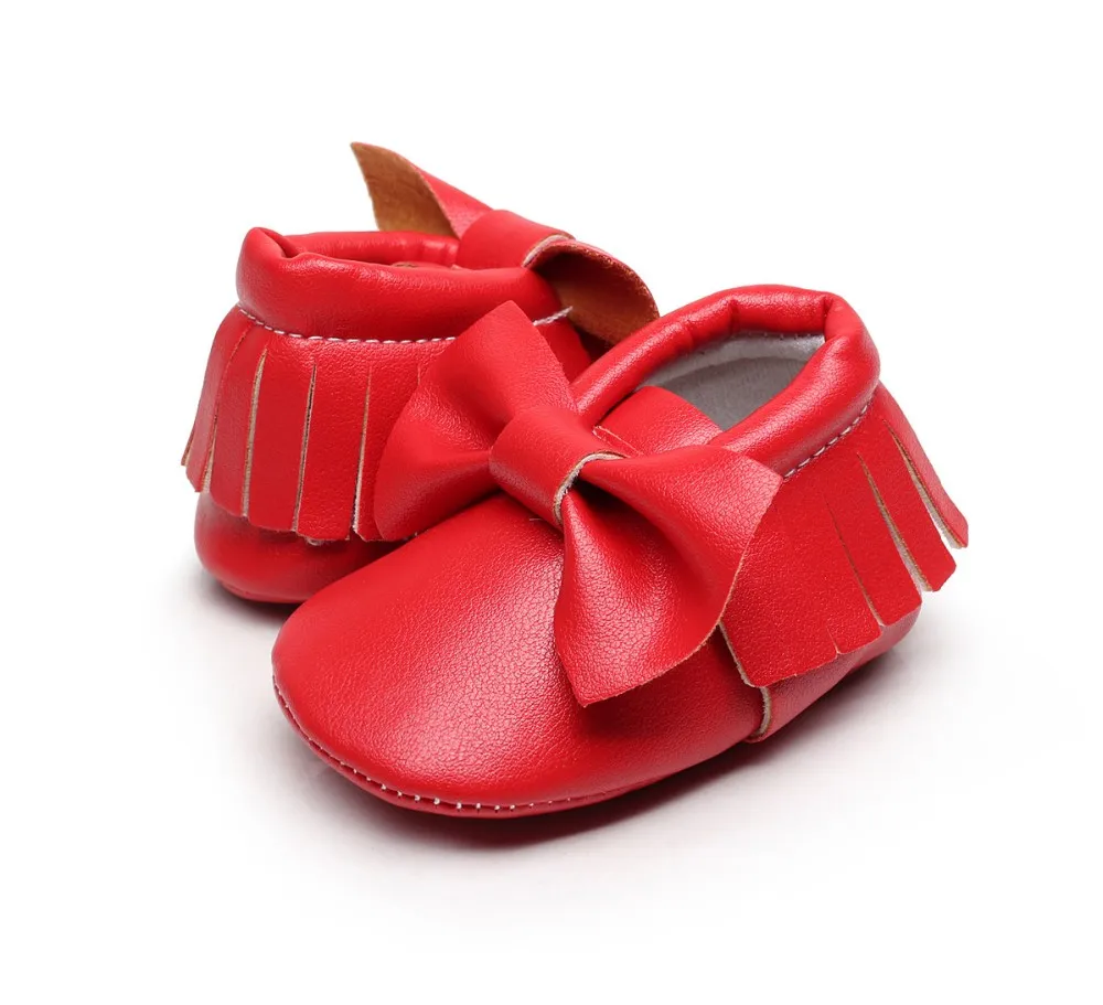 Process:100% handmade baby shoes Color: pink,red,black,white,golden,silver,etc. Fashion element :Tassels bow Size: size 1=10.5cm feet length=0-3month(estimate) size 2=11.5cm feet length=3-6month(estimate) size 3=12.5 cm feet length=6-12month (estimate) size 4=13.5cm feet length=12-18 month (estimate) size 5=14.5cm feet length=18-24 month (estimate) Warm Tips: Please according to your baby’s foot length cm buy, rather than age. Note: 1:Our shoes is 1.4mm thick cow leather,so price is higher than the usual 0.8mm thick baby moccasins. 2:Before you buy it pls carefully choose the size you want,there is a deviation of 1-3cm as the reason of laying relax. 3:Pls measure your baby feet before you buy the shoes.pls add 1-1.5cm more than the feet.