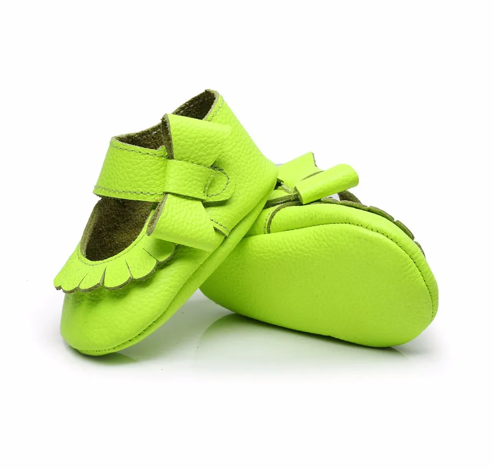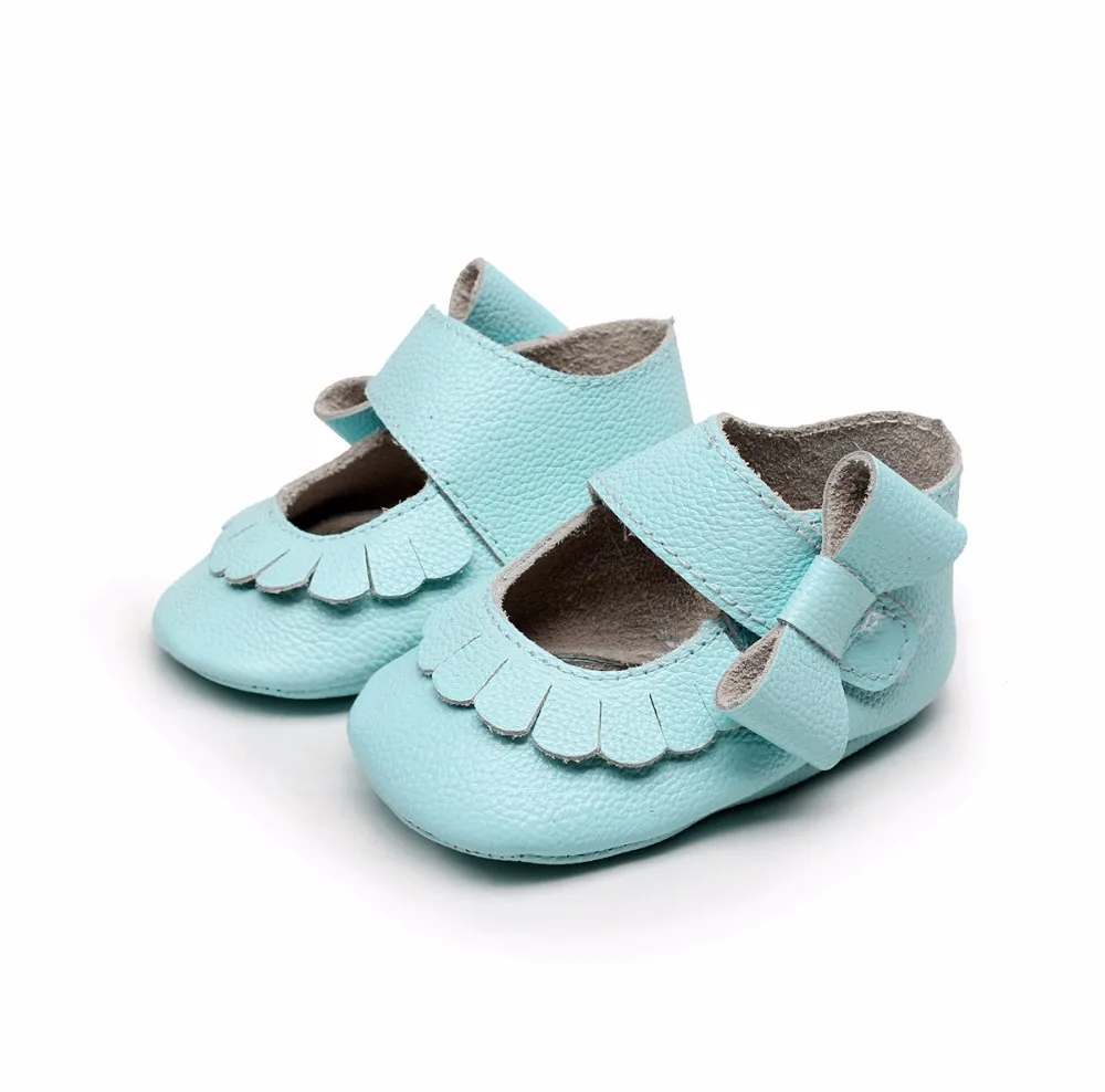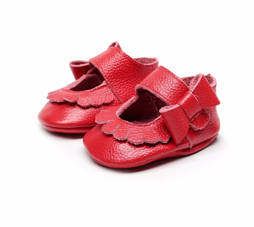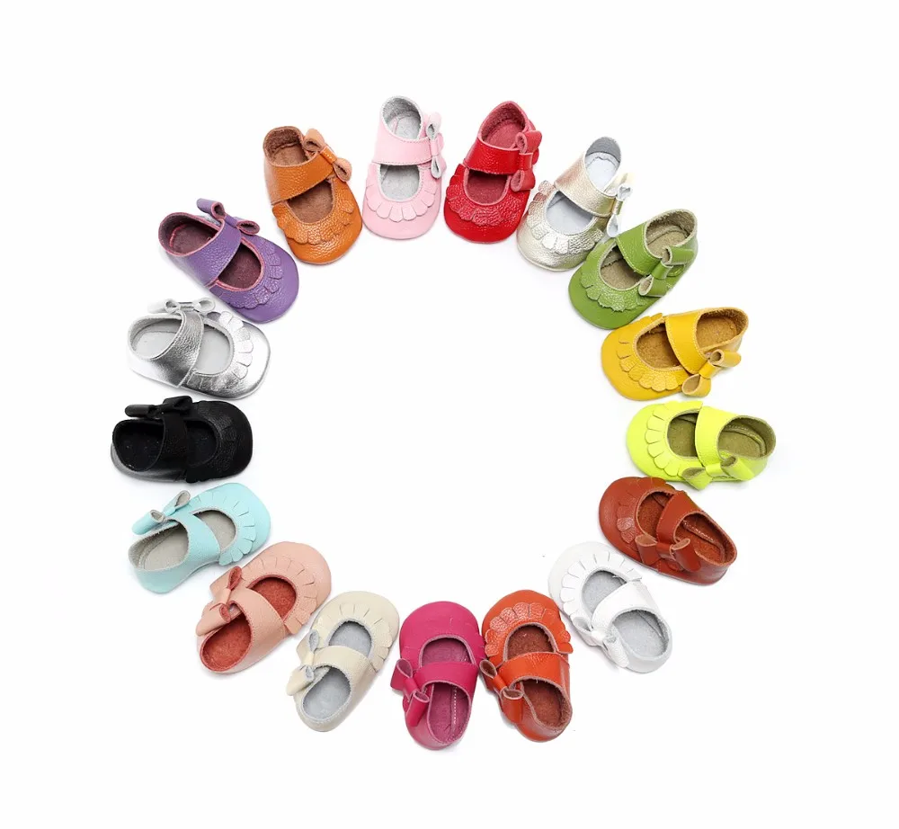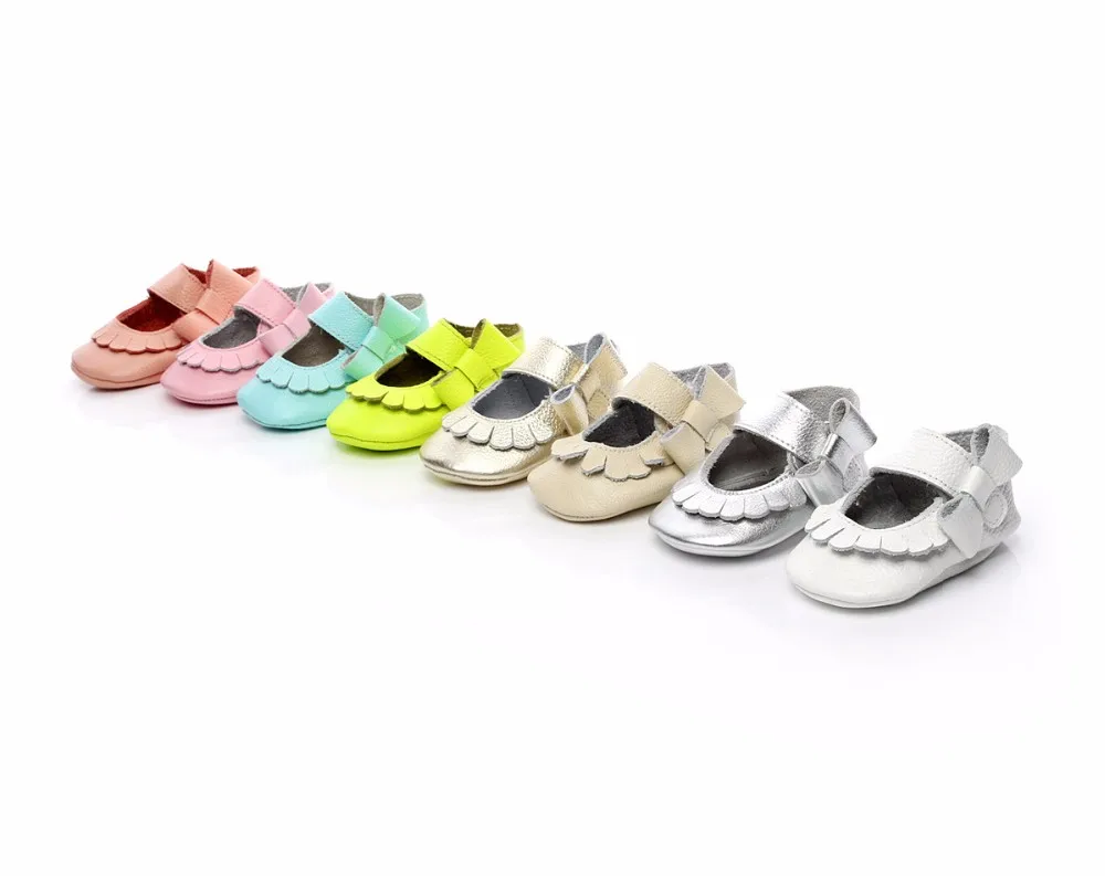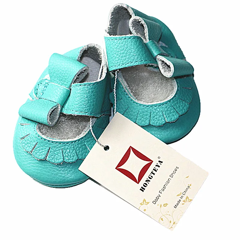 Hongteya Hot sale 17 colors New Genuine Leather Baby Infant Toddler Moccasins Non-slip side bow mary jane Soft Moccs Shoes