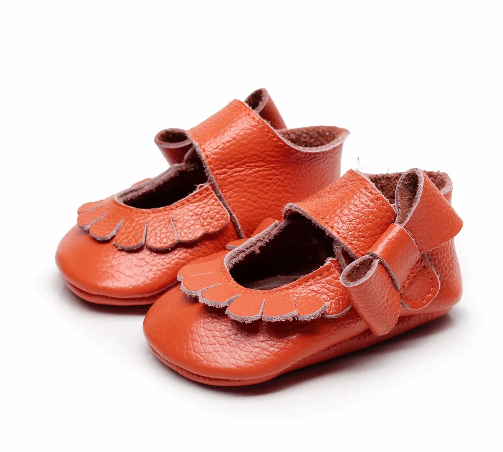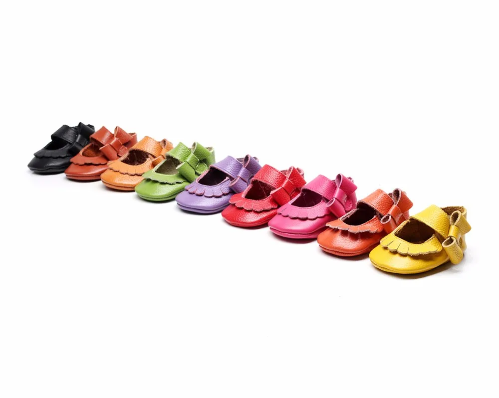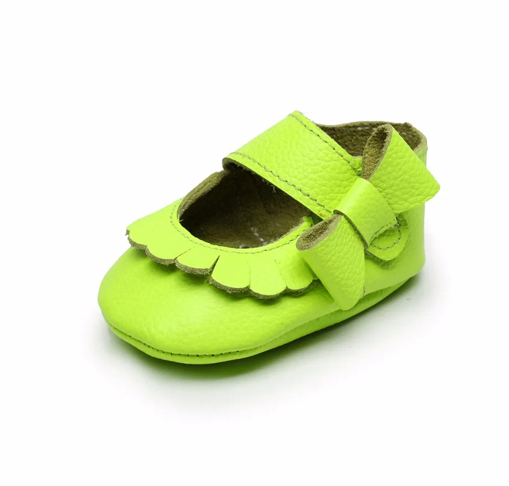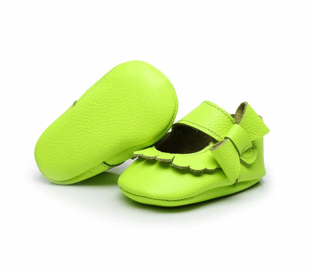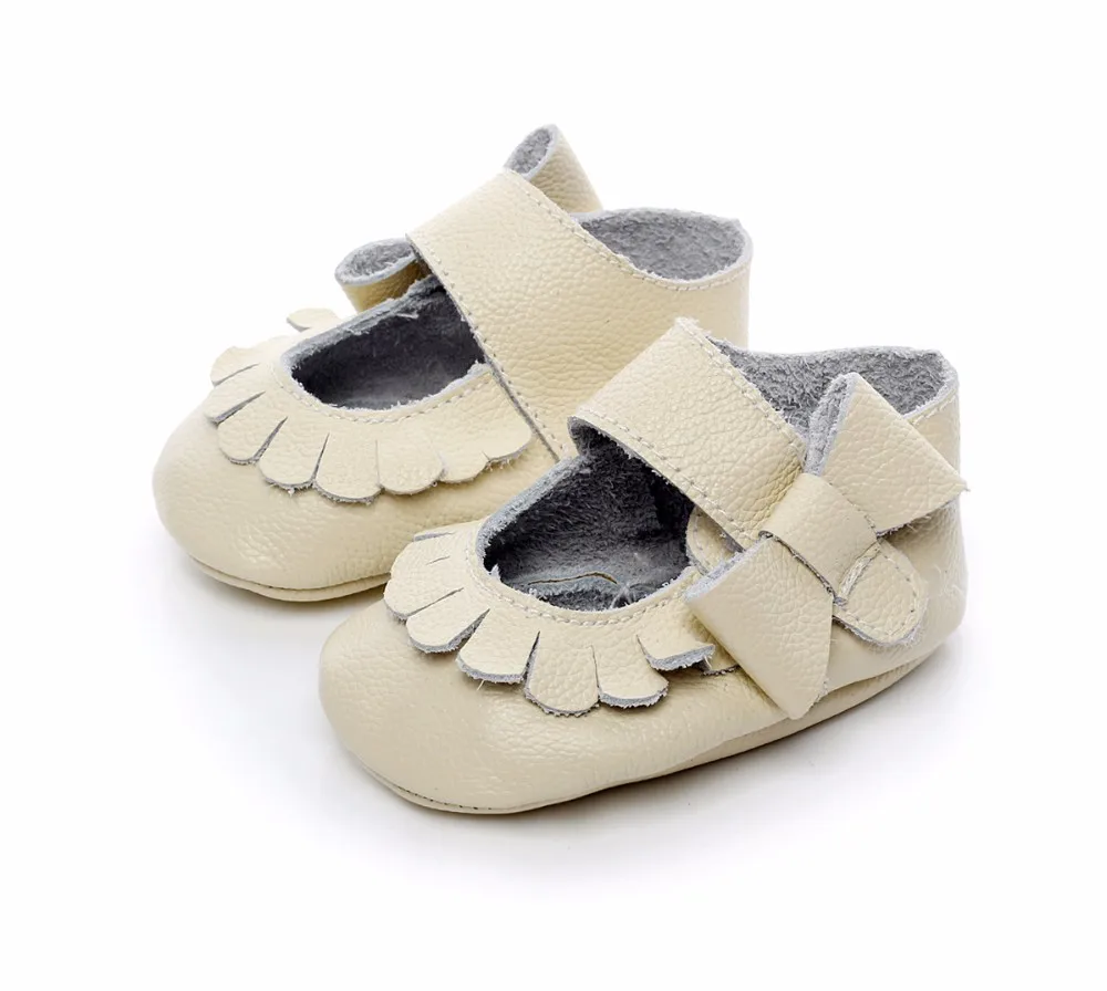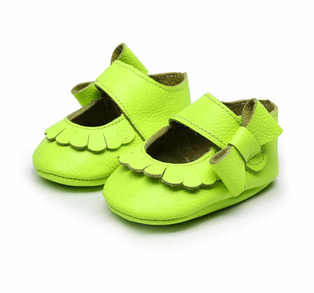 Hongteya Hot sale 17 colors New Genuine Leather Baby Infant Toddler Moccasins Non-slip side bow mary jane Soft Moccs Shoes