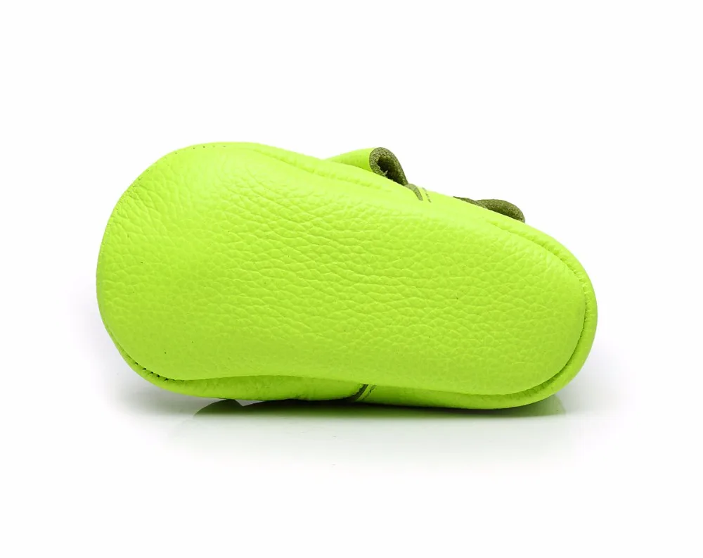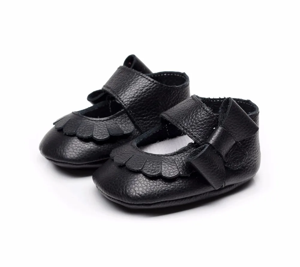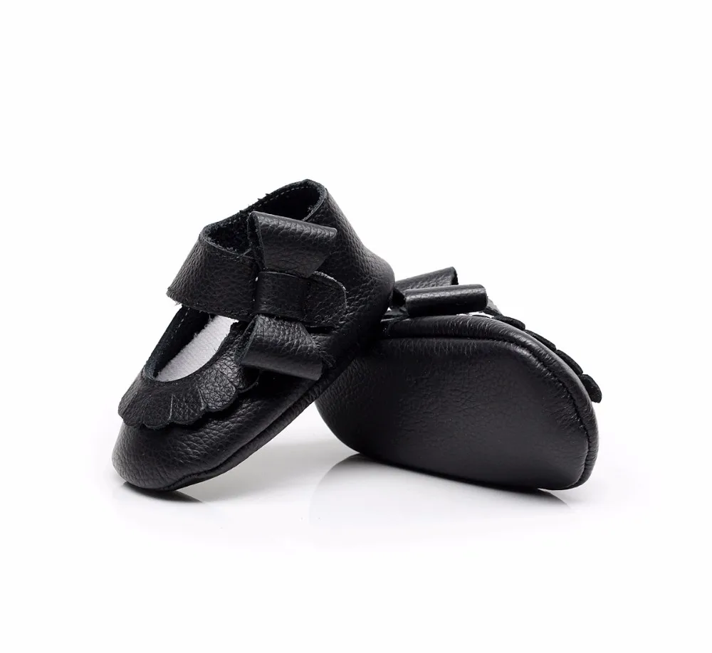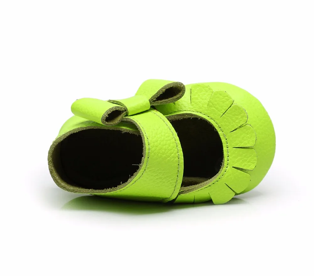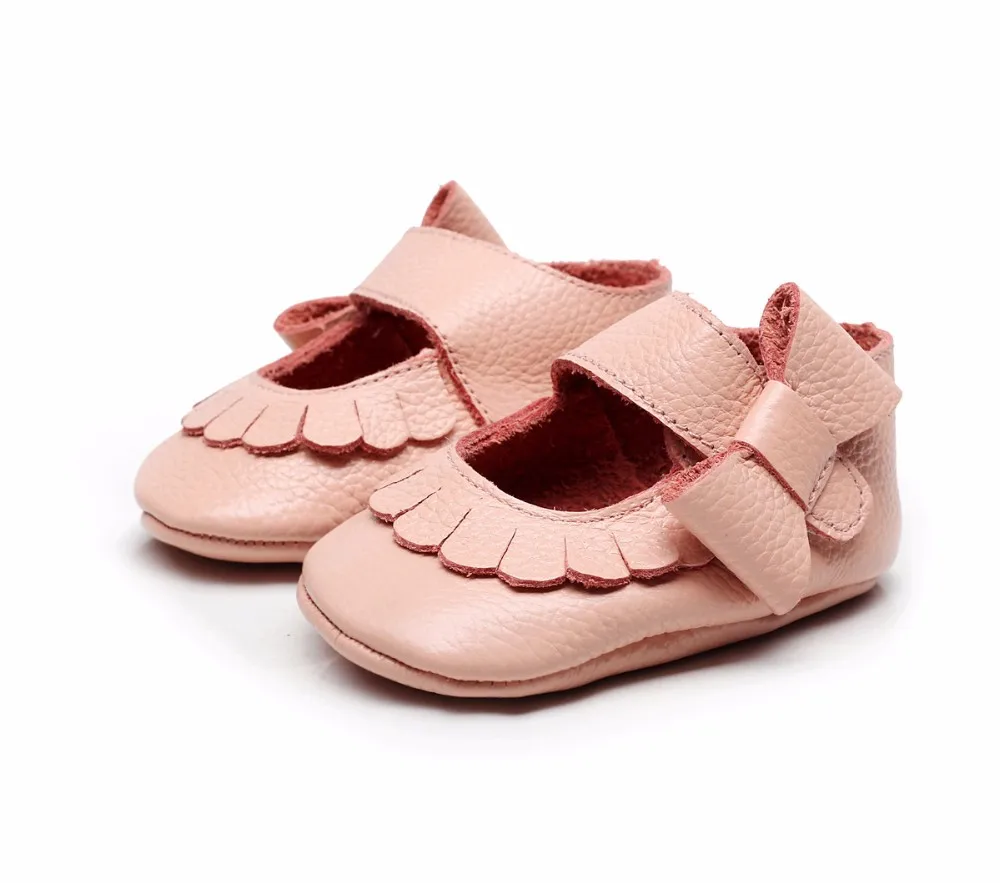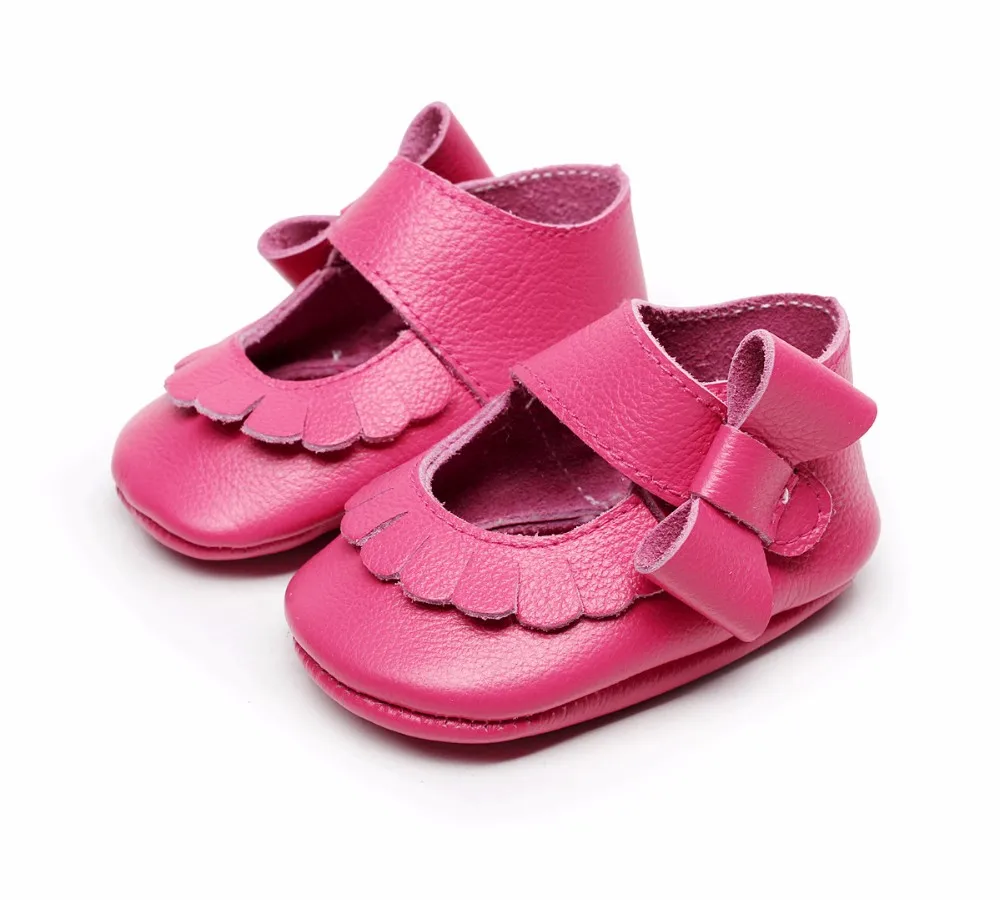 Hongteya Hot sale 17 colors New Genuine Leather Baby Infant Toddler Moccasins Non-slip side bow mary jane Soft Moccs Shoes