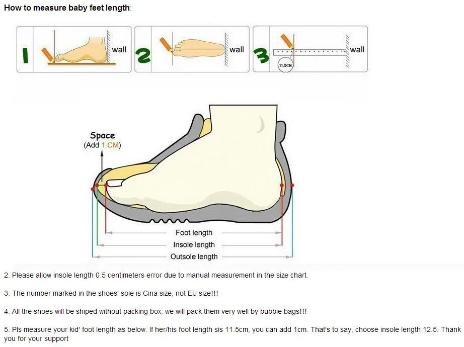 US5 = 18-24M = 14cm outsole length of the shoe =5.51 inch