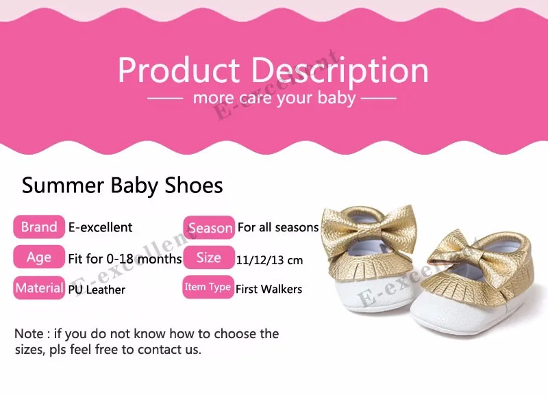 1.Condition: 100% brand new . 2.Material: PU leather 3.Size: see size chart. 4.Colour:Pink , Blue 5.Package includes: one pair of shoes. Size Chart Size recommended age sole length S (1) 3-6 Months 11cm (4.33 inches) M (2) 6-9 Months 12cm … Read More