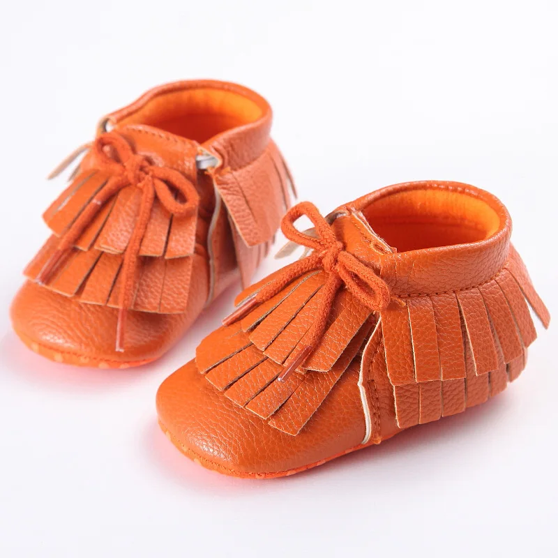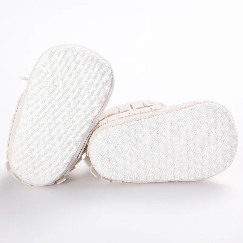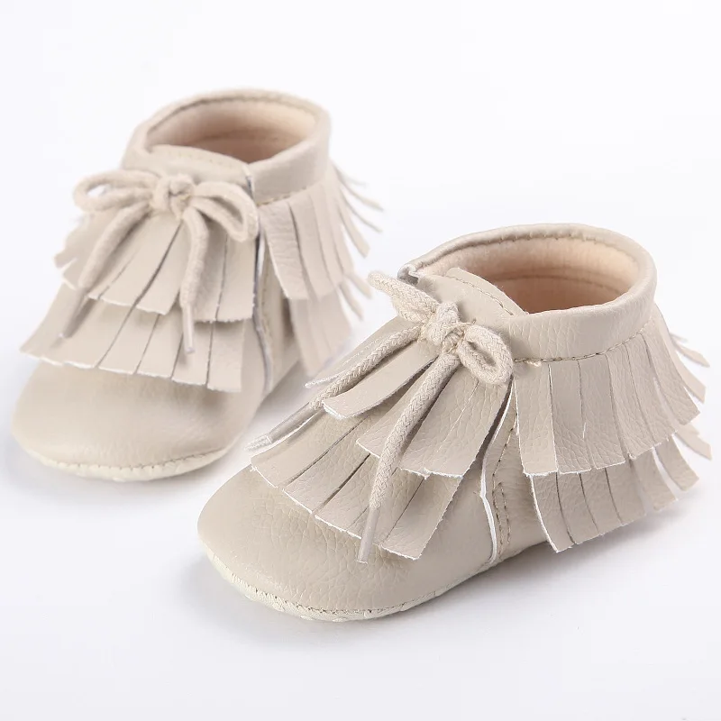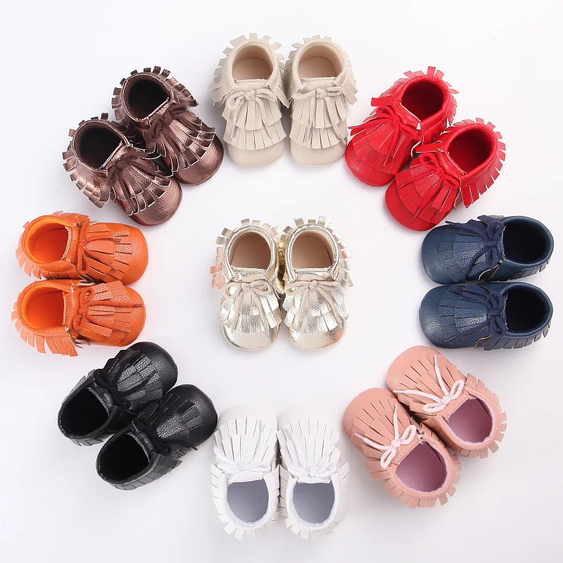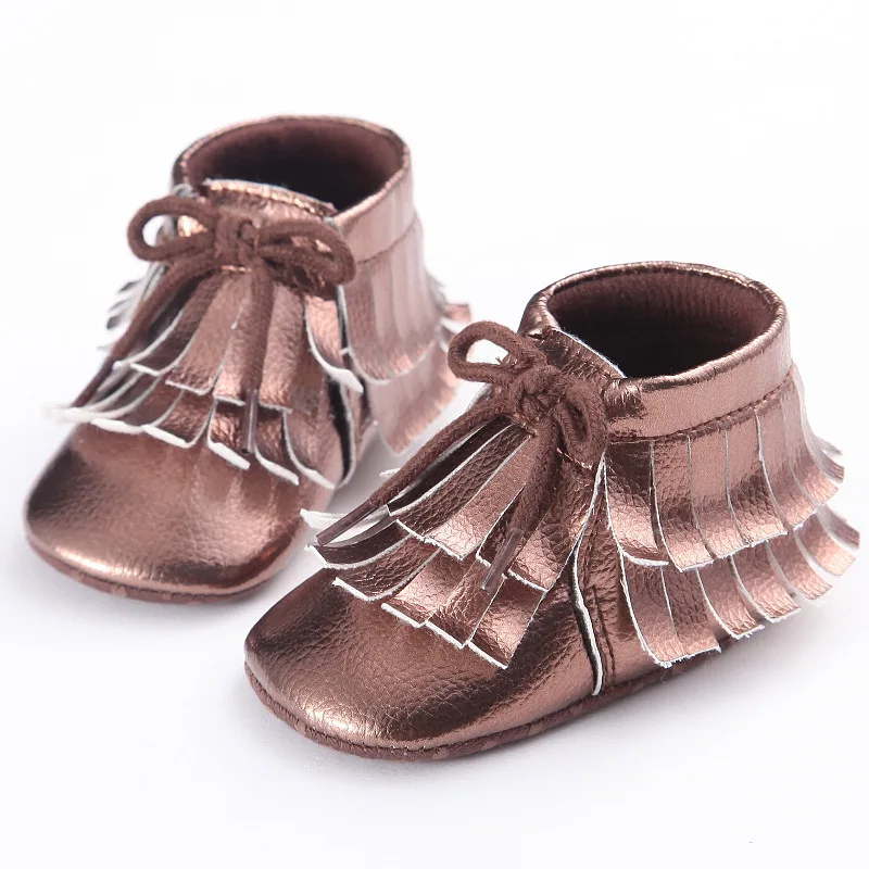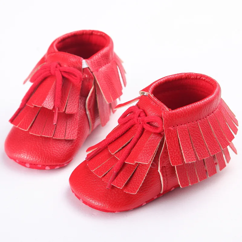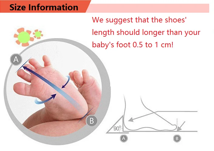 Material: PU Leather Style: Baby First Walkers Size: Fit for 0-18 months baby 1 inch= 2.54 cm please check the size reference: US 1.0= insole Length 11 CM/ 4.41” Suitable for 0-6 months baby US 2.0= insole Length 12 CM/ 4.92” Suitable for 6-12 months baby US 3.0= insole Length 13 CM/ 5.23” Suitable for 12-18 months baby We suggest that the shoes’ length should longer than your baby’s foot 0.5 to 1cm. Because of the different measurement methods, there may be 1-2cm of the allowable range error.