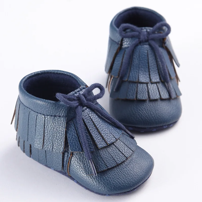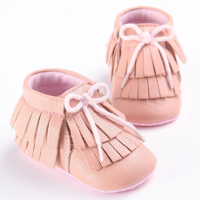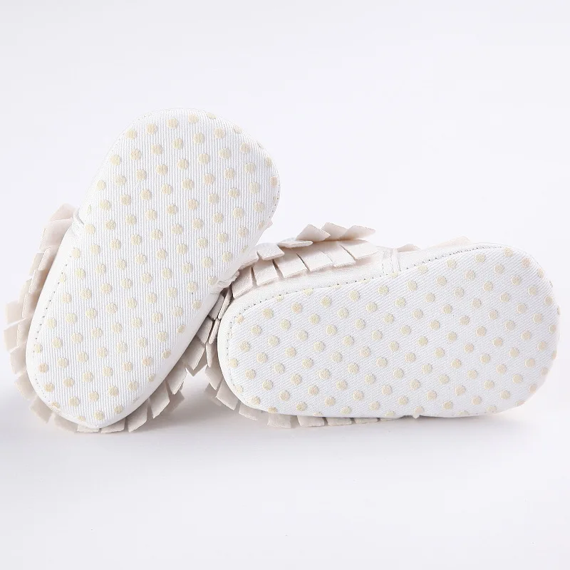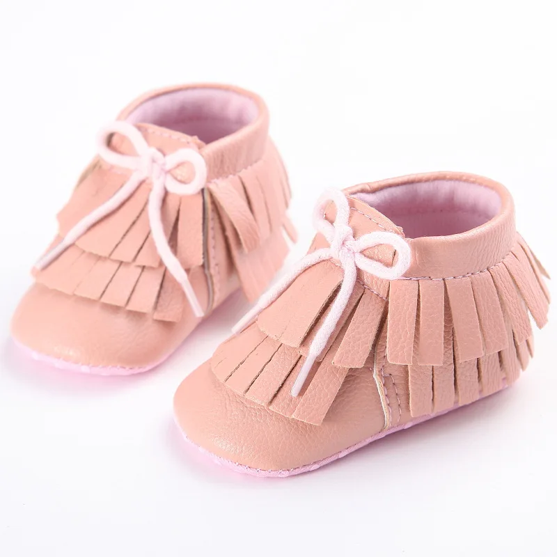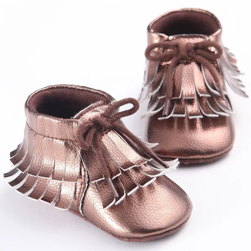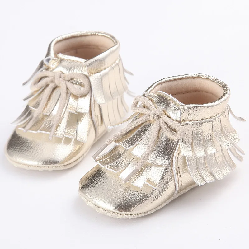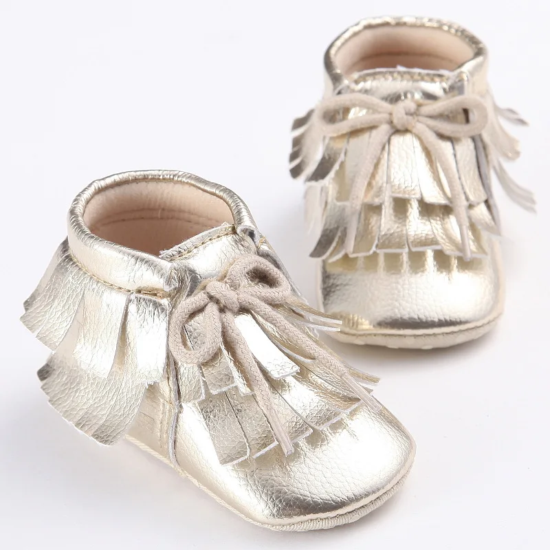 Material: PU Leather Style: Baby First Walkers Size: Fit for 0-18 months baby 1 inch= 2.54 cm please check the size reference: US 1.0= insole Length 11 CM/ 4.41” Suitable for 0-6 months baby US 2.0= insole Length 12 CM/ 4.92” Suitable for 6-12 months baby US 3.0= insole Length 13 CM/ 5.23” Suitable for 12-18 months baby We suggest that the shoes’ length should longer than your baby’s foot 0.5 to 1cm. Because of the different measurement methods, there may be 1-2cm of the allowable range error.