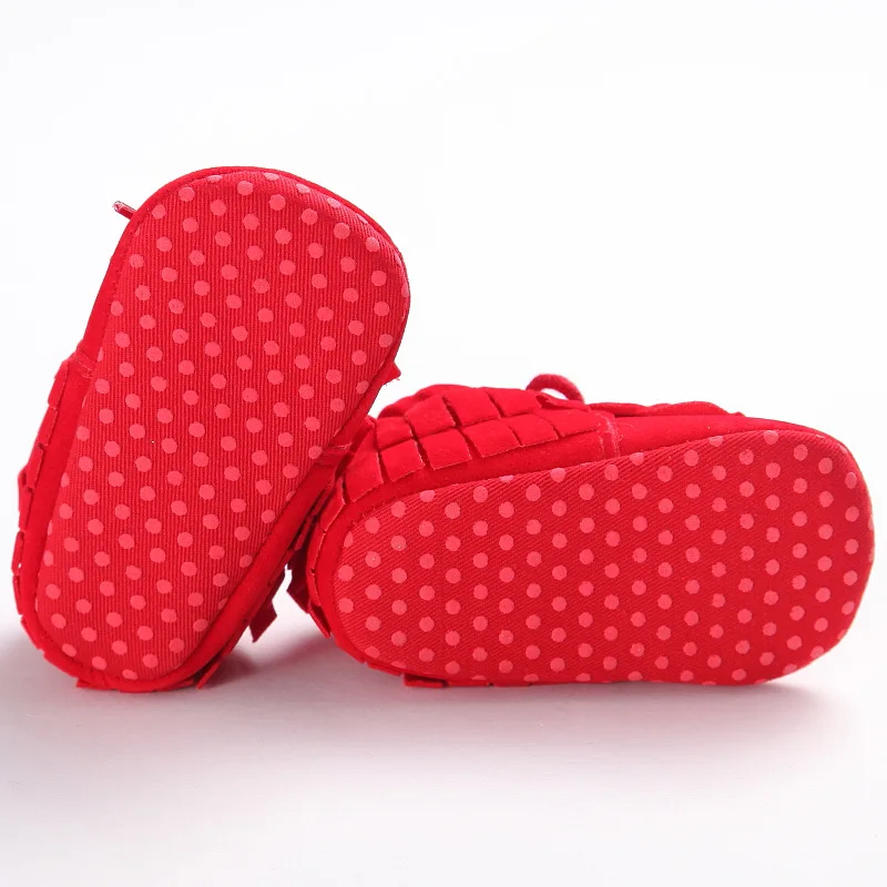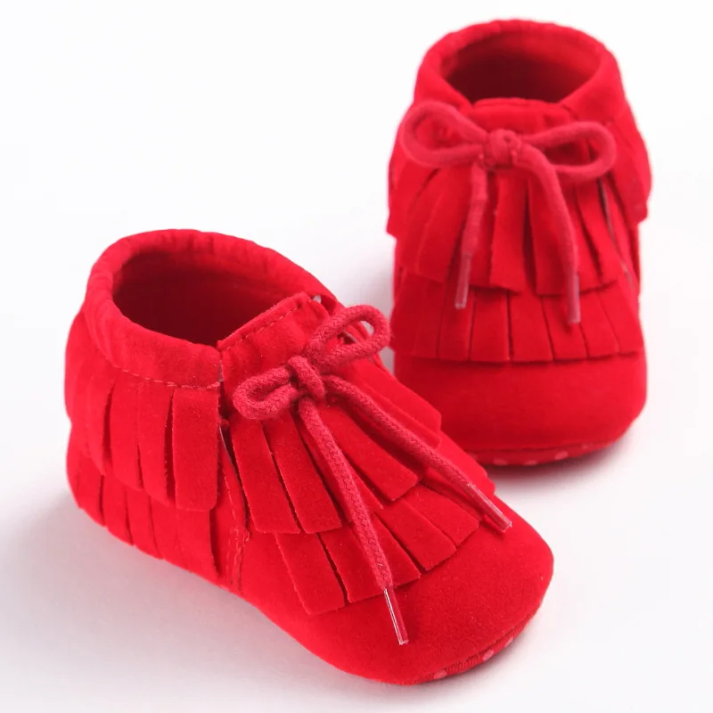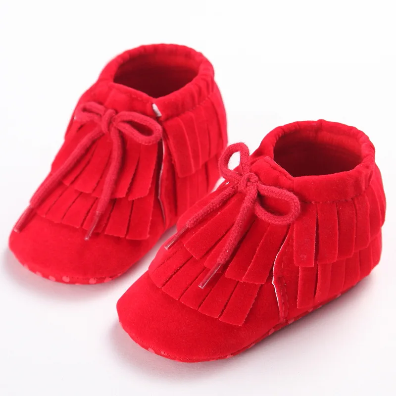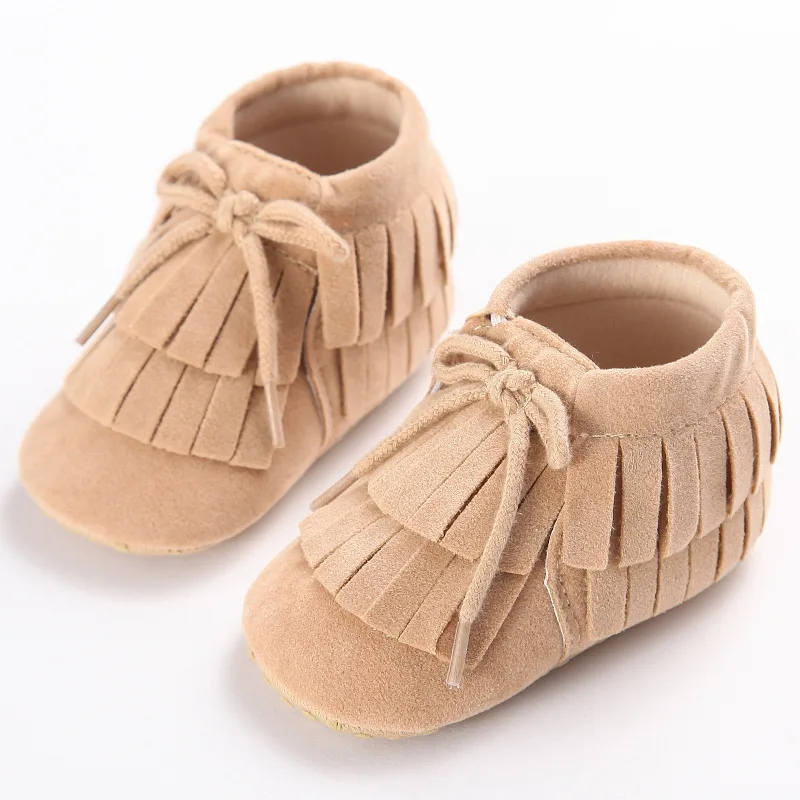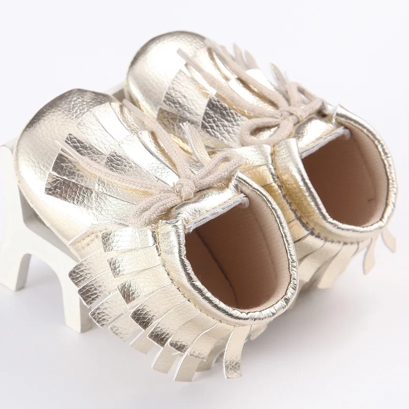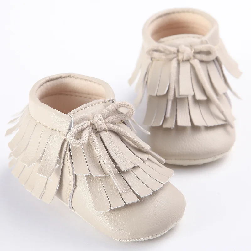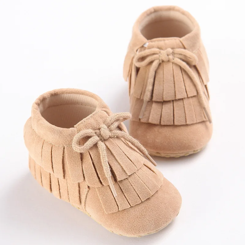 Material: PU Leather Style: Baby First Walkers Size: Fit for 0-18 months baby 1 inch= 2.54 cm please check the size reference: US 1.0= insole Length 11 CM/ 4.41” Suitable for 0-6 months baby US 2.0= insole Length 12 CM/ 4.92” Suitable for 6-12 months baby US 3.0= insole Length 13 CM/ 5.23” Suitable for 12-18 months baby We suggest that the shoes’ length should longer than your baby’s foot 0.5 to 1cm. Because of the different measurement methods, there may be 1-2cm of the allowable range error.
