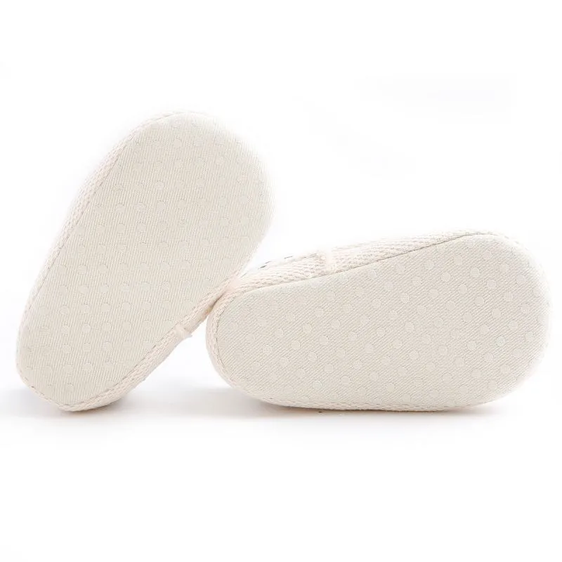 Size Recommend for Kid Sole Length Sole Width 1 0-6 Months 11cm/4.33″ 5.6cm/2.20″ 2 6-12 Months 12cm/4.72″ 5.8cm/2.28″ 3 12-18Months 13cm/5.12″ 6cm/2.36″ The lovely shoes are very Soft & Anti-slip, which can Keep your baby comfortable & stable. Best Prewalker for your baby.