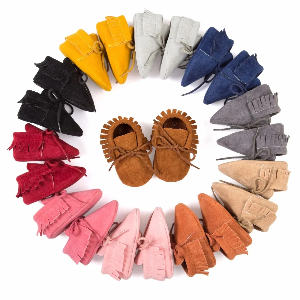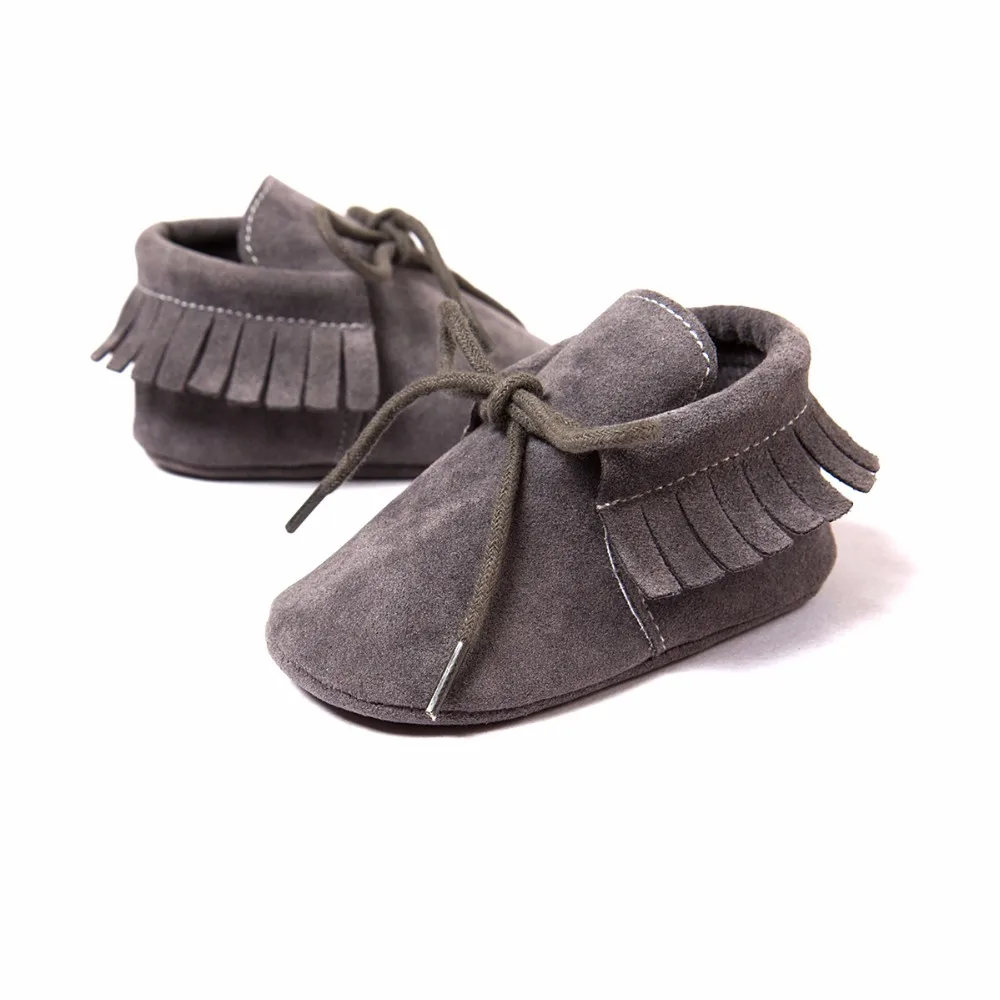PU Suede Leather Newborn Baby Boy Girl Moccasins Soft Moccs Shoes Bebe Fringe Soft Soled Non-slip Footwear Crib Lace-up Shoe