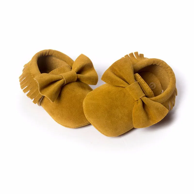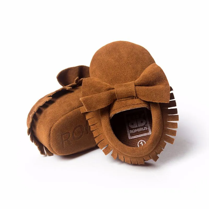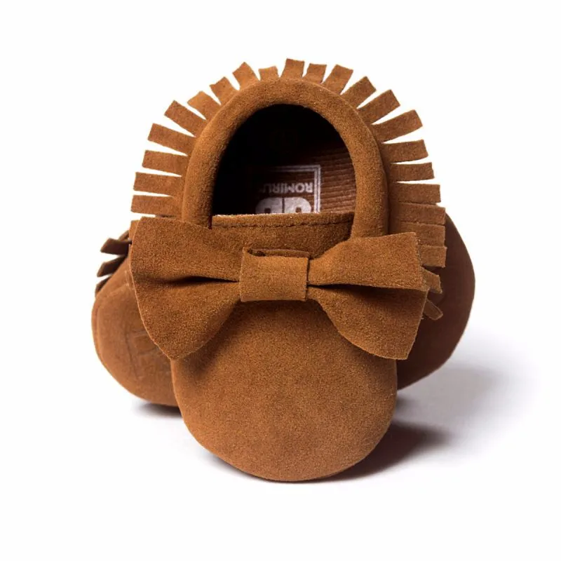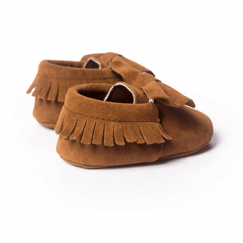 Fringe Baby Soft Sole PU Suede Leather Shoes Infant Toddler Cute Moccasin Prewalker  100% Brand New with High Quality  Very Beautiful Fashionable and Casual  Material: Suede Leather  Style: Crib Shoes  Color: Multi Colors As Picture Show  Pattern: Fringe Decor  Size: S/M/L (Fit For 0-18 Months Baby)  Weight: Approx. 72-80g  Item Includes: 1 Pair Baby Shoes  Size Reference: 1 inch=2.54cm  Below Age is for your reference ONLY, please choose the size by Sole Length, thank you.     Size    Sole Length   Sole Width      Recommend for Kid  1/11/S   11cm/4.33″   5.6cm/2.20″      0-6 Months  2/12/M  12cm/4.75″   5.8cm/2.28″     6-12 Months  3/13/L   13cm/5.12″   6.0cm/2.36″     12-18 Months     The lovely shoes are very Soft & Anti-slip, which can Keep your baby comfortable & stable. Best Prewalker for your baby.  Notes:  1. Please allow 1-3CM differs due to manual measurement.  2. Real color may slightly different from pictures due to computer screen’s resolution, brightness, contrast etc. Hope Understanding. Have a nice shopping day!