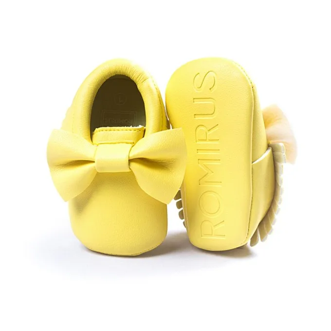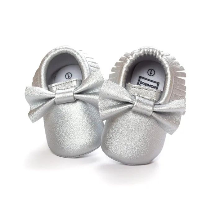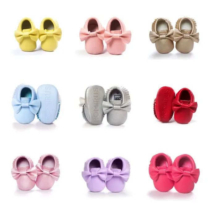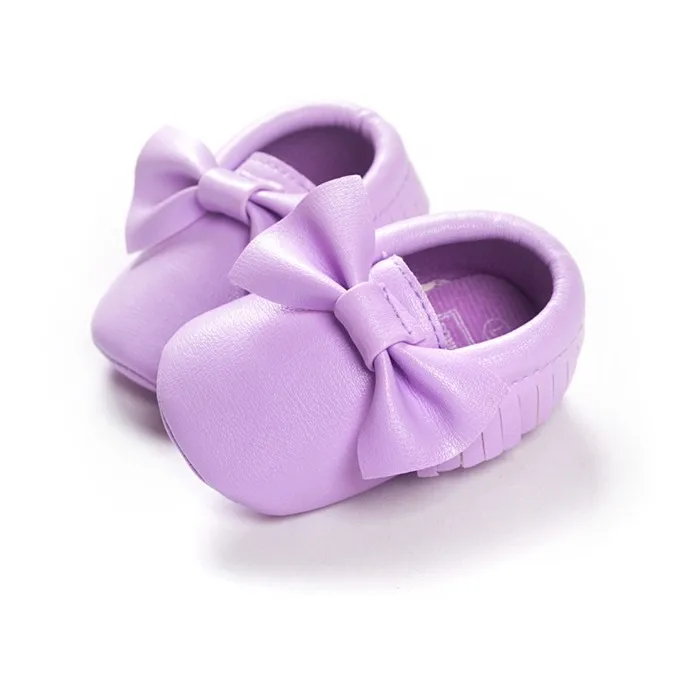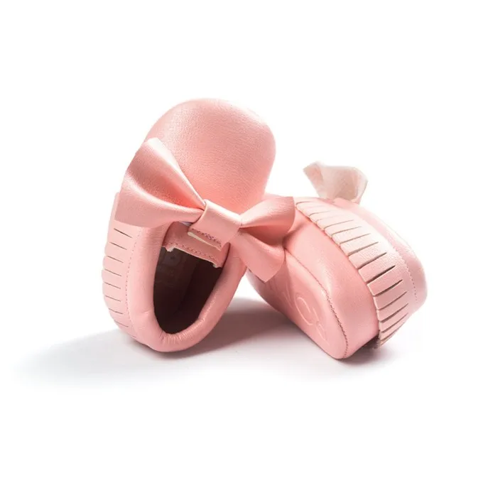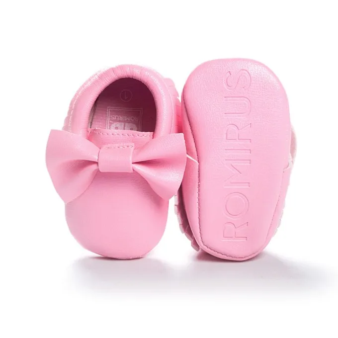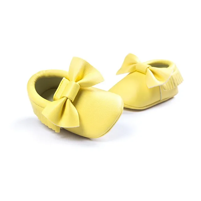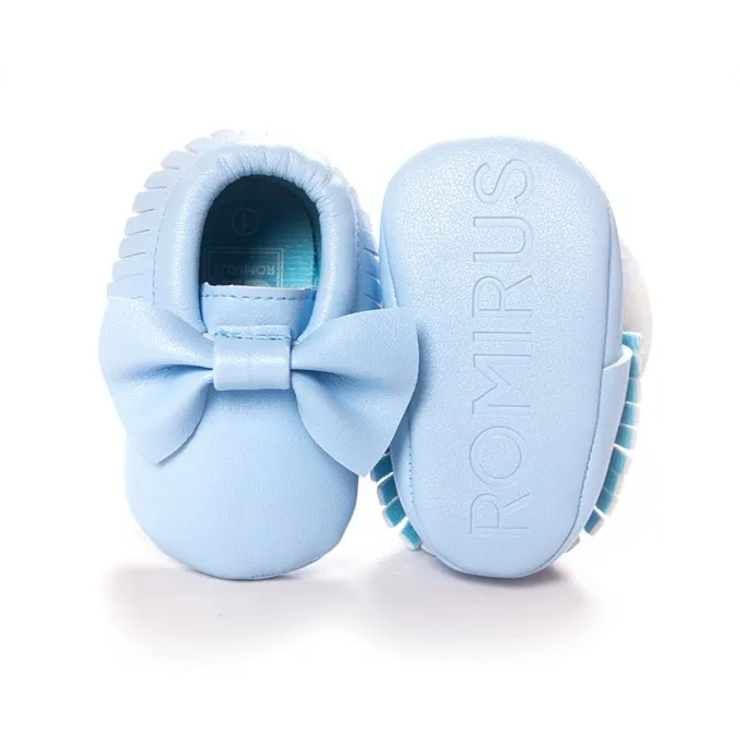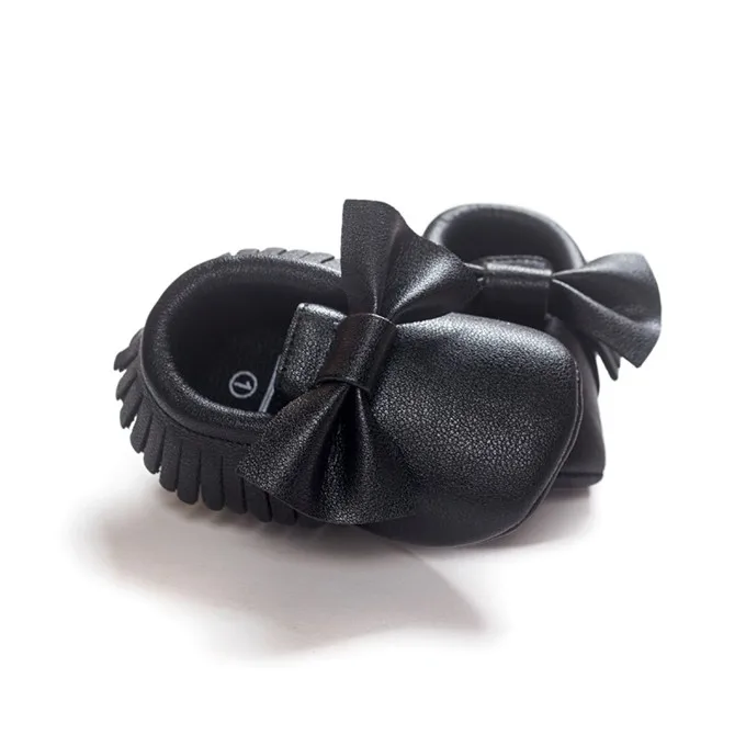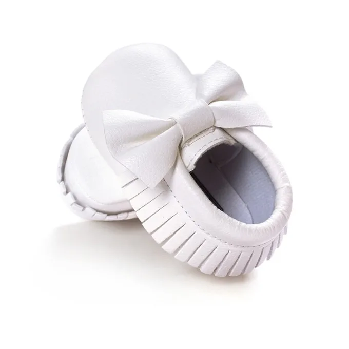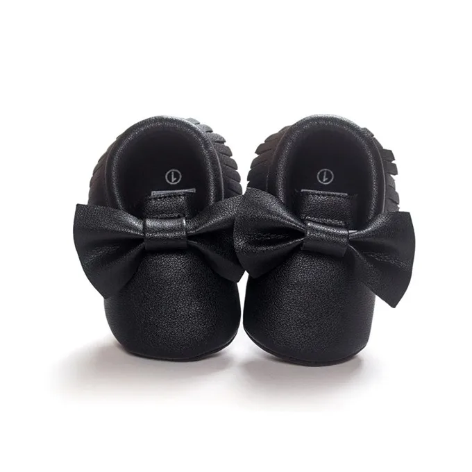 Newborn Infants Baby PU Leather Tassel Shoes Soft Soled Crib Shoes Bowknots Prewalker 0-18M