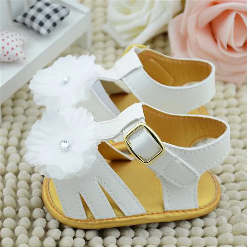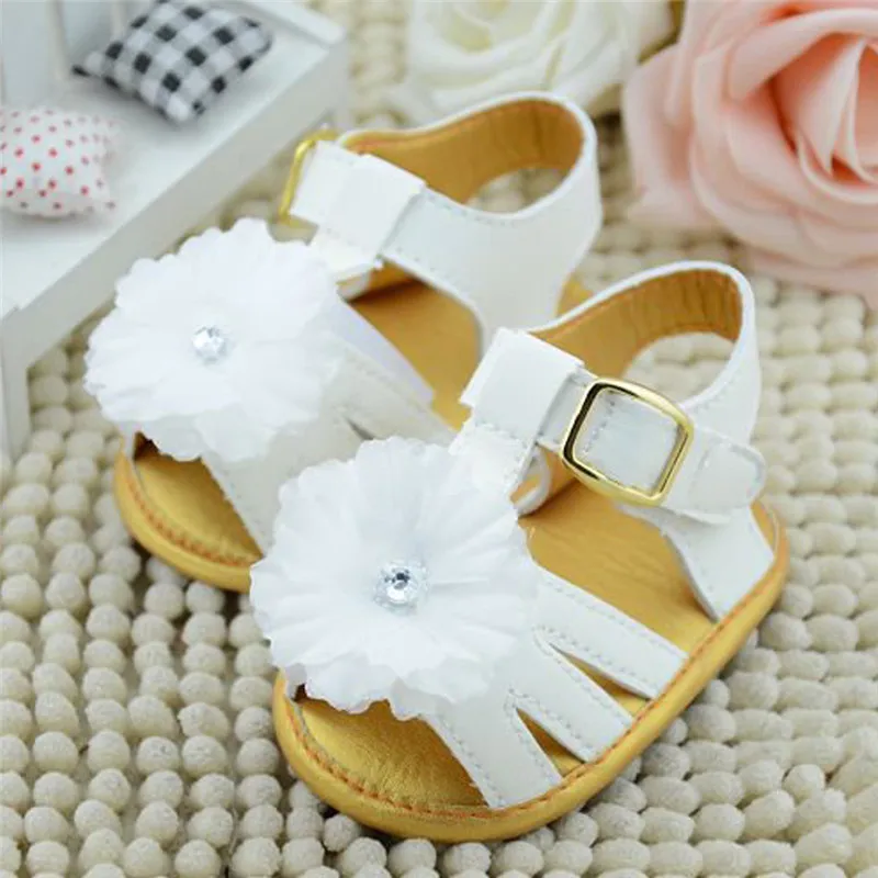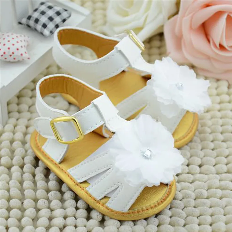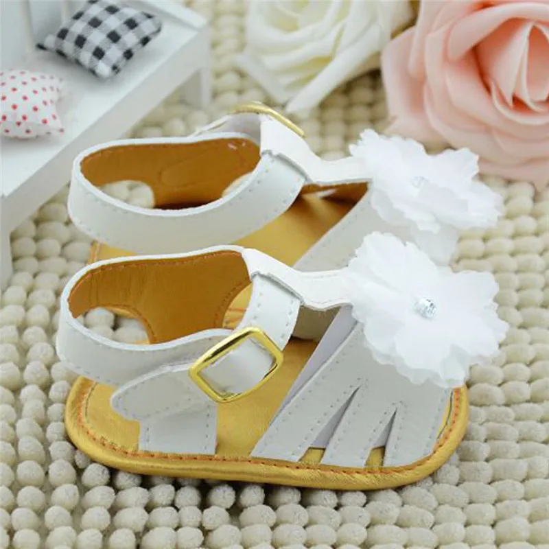 0-18M White Summer Infant Flower Cotton Flat Rain Shoes Soft Sole Cool Kid Girls Baby Sandals Clogs