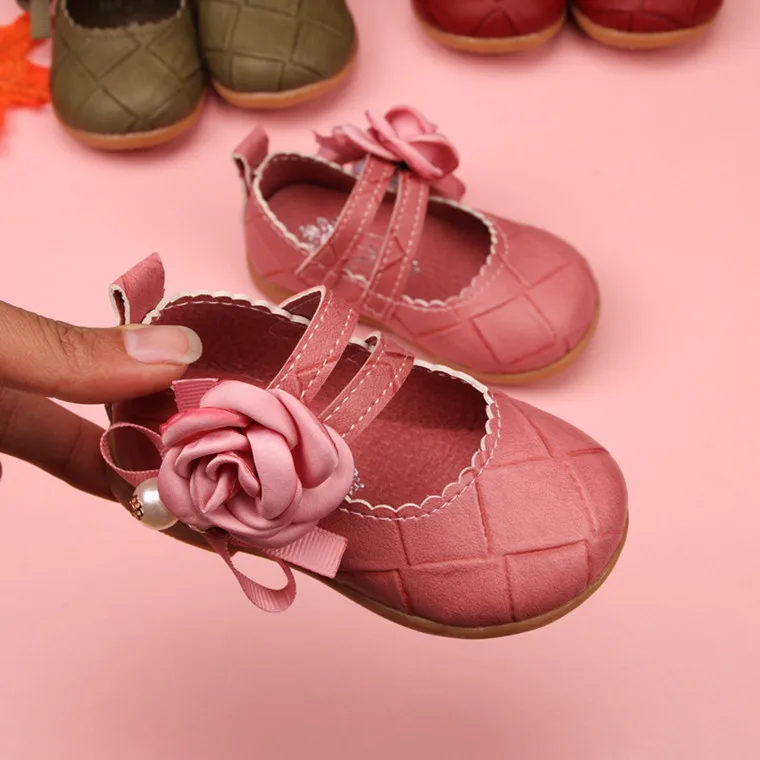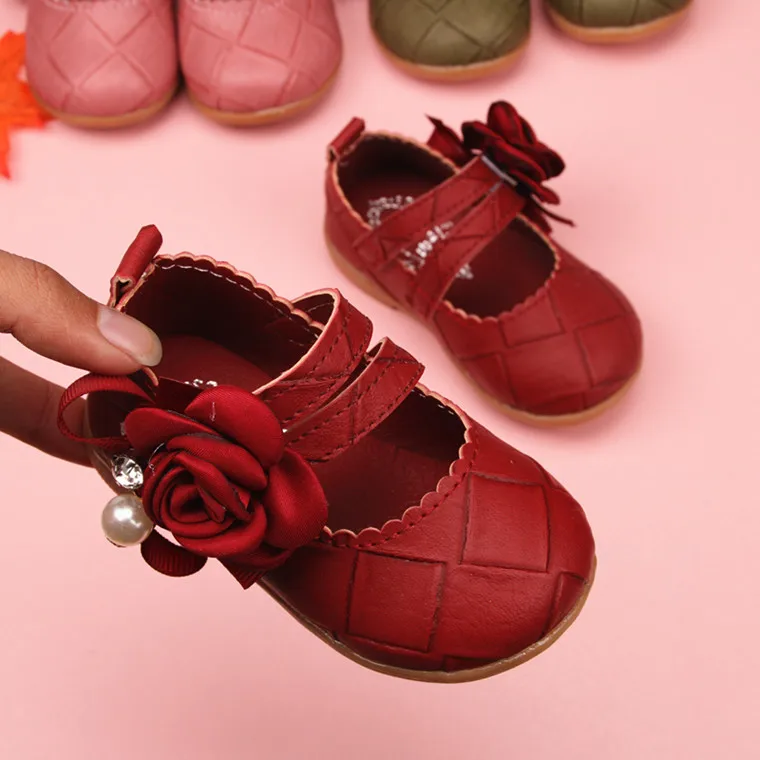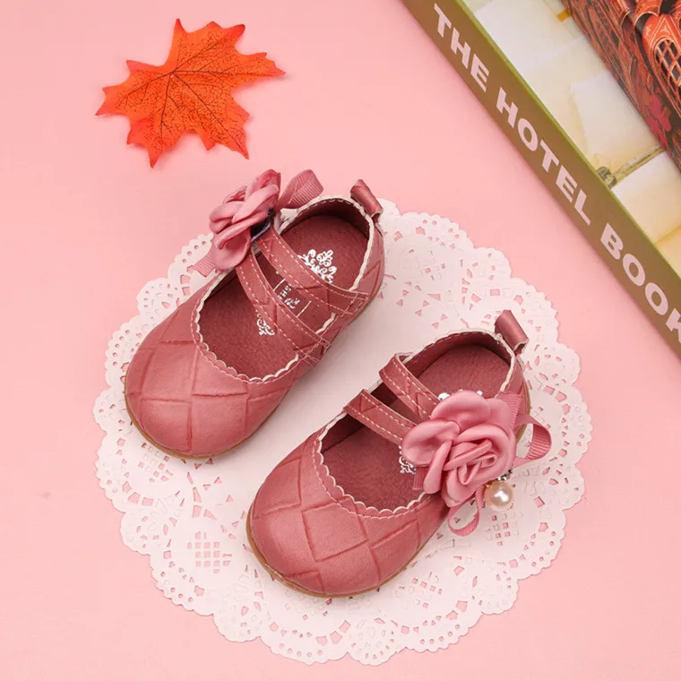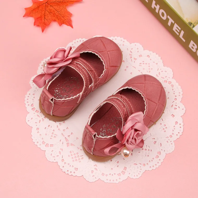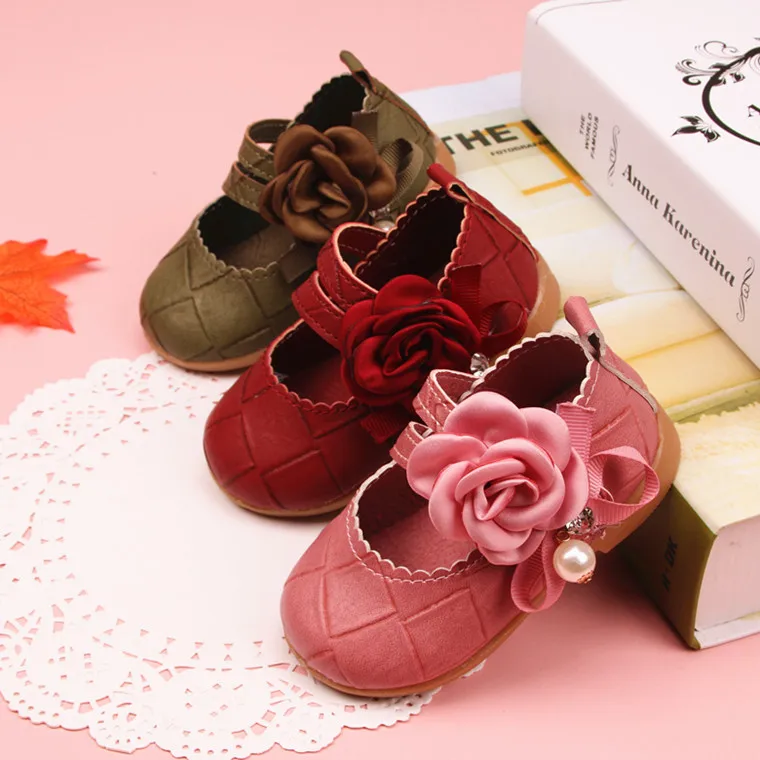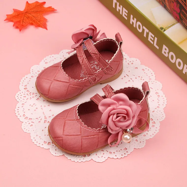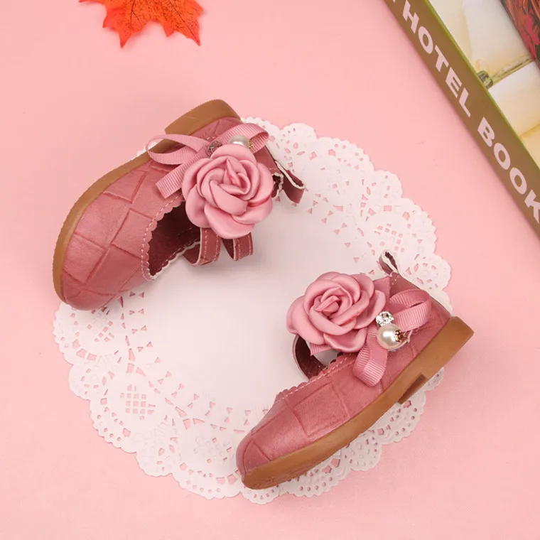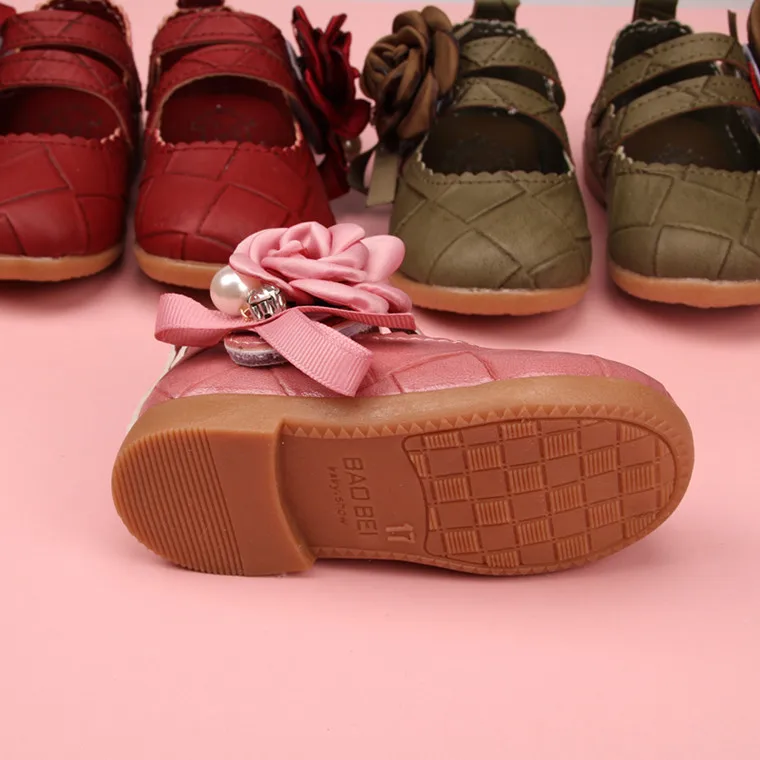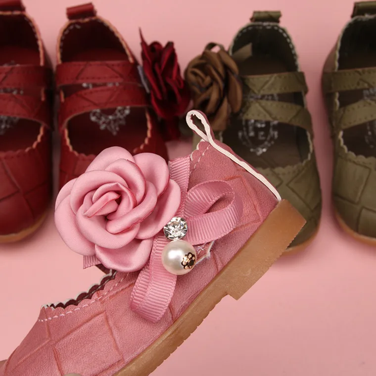 2017 Flower Sandals for toddlers girls EUR Size 15-26 Pearl Crystal Baby Girl Shoes Sandals Anti-skid Square heel Clogs A07162