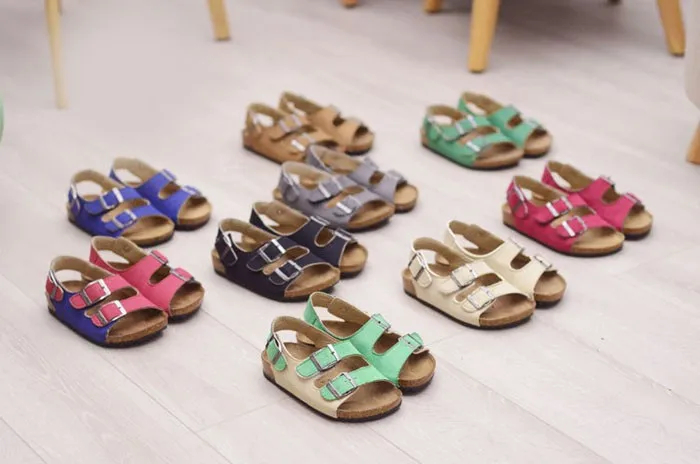 2017 Summer Fashion Toddler Girls Cork Sole Sandals European Style Baby Beach Clogs Buckle Straps Infant Sandals Summer