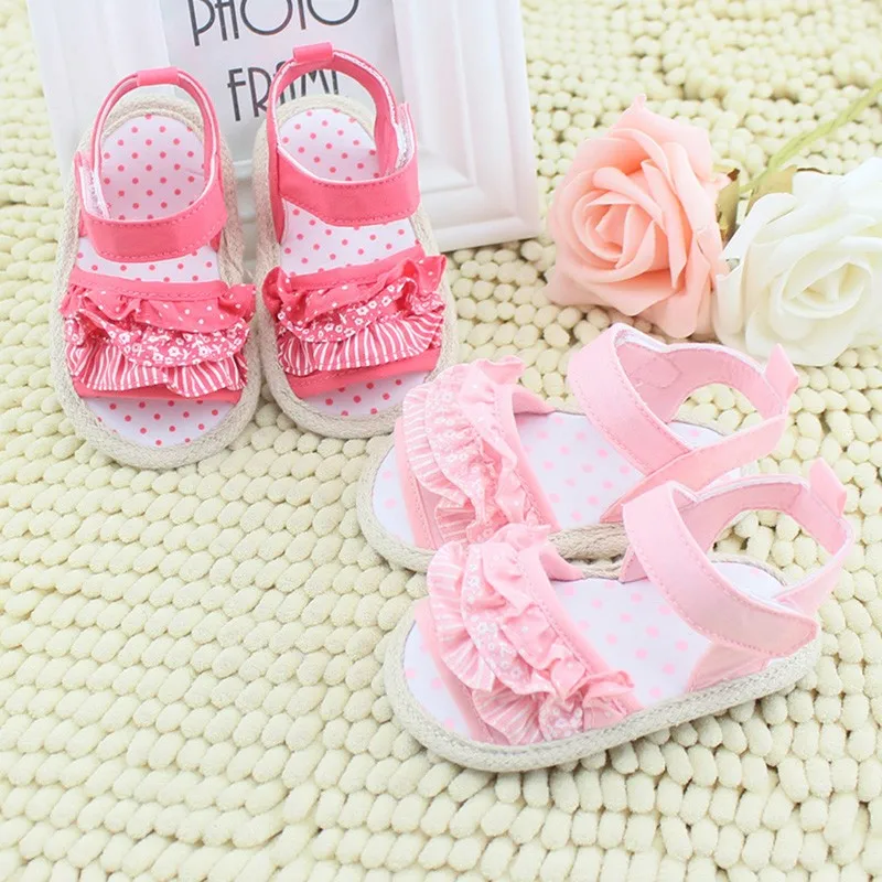 Princess Girl Summer Sandals Toddler Infant Baby Pleated Lace Soft Sole Non-slip Crib Shoes Prewalkers